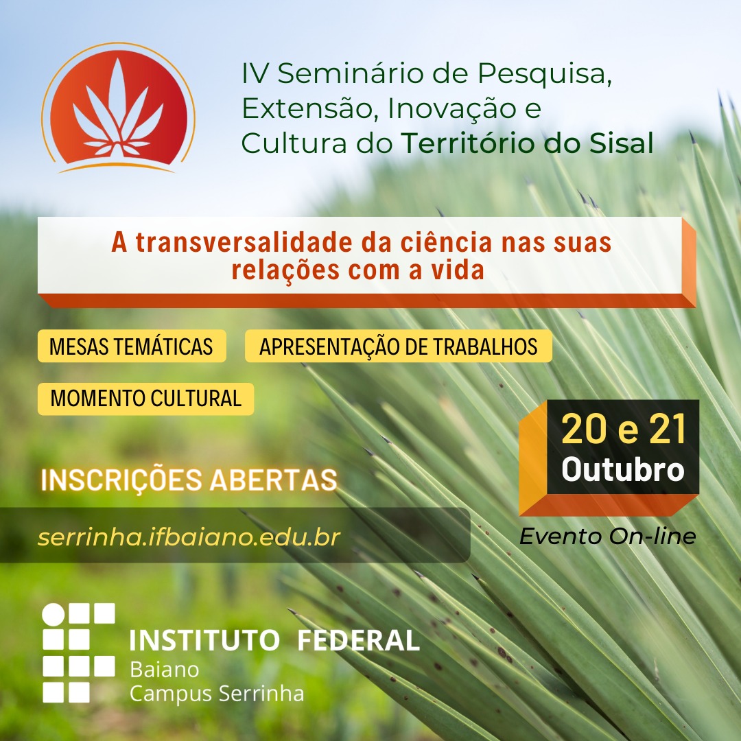 Clique na imagem ou acesse em: eventos.ifbaiano.edu.br/portal/4-seminario-sisal-serrinha/