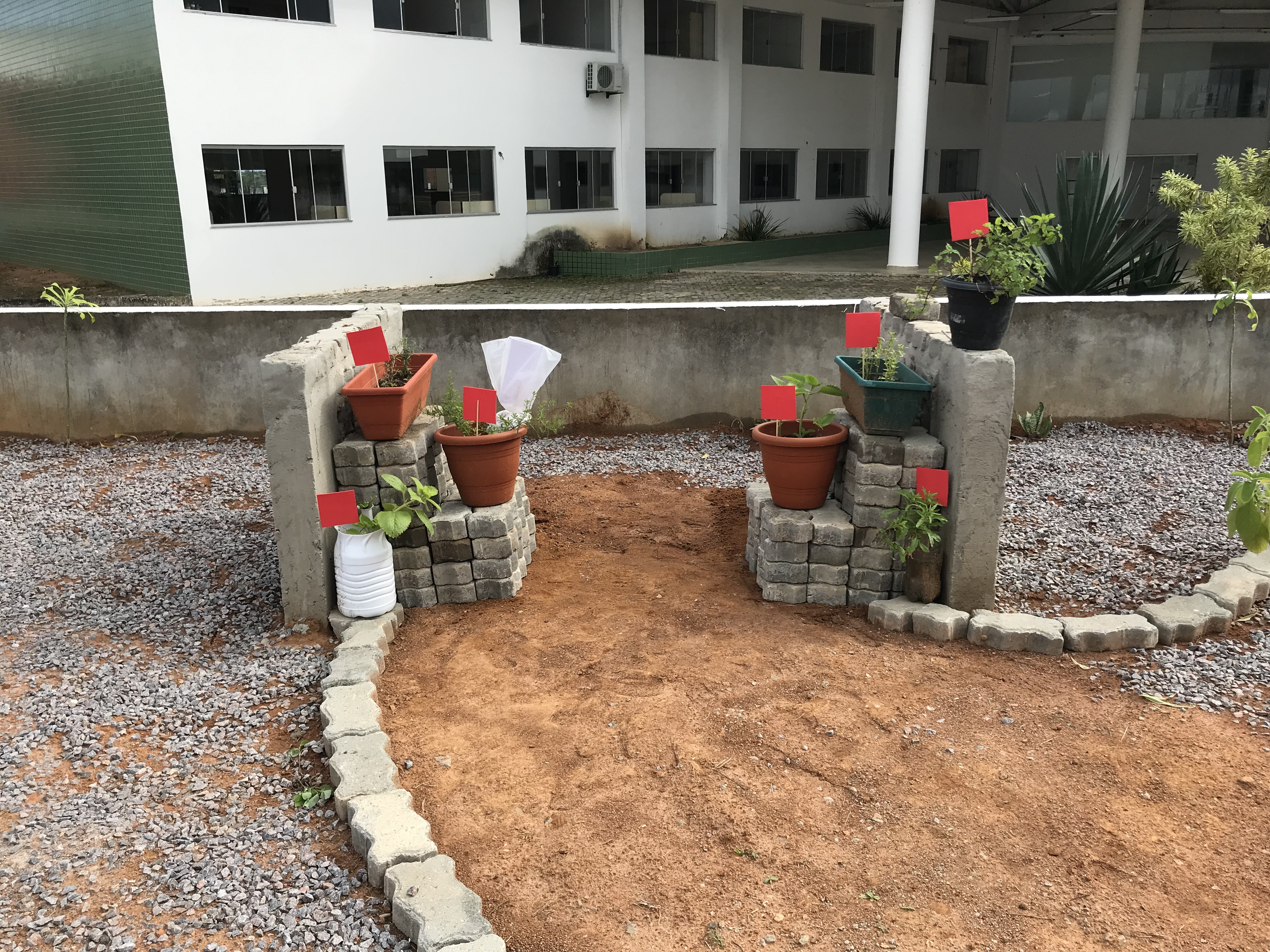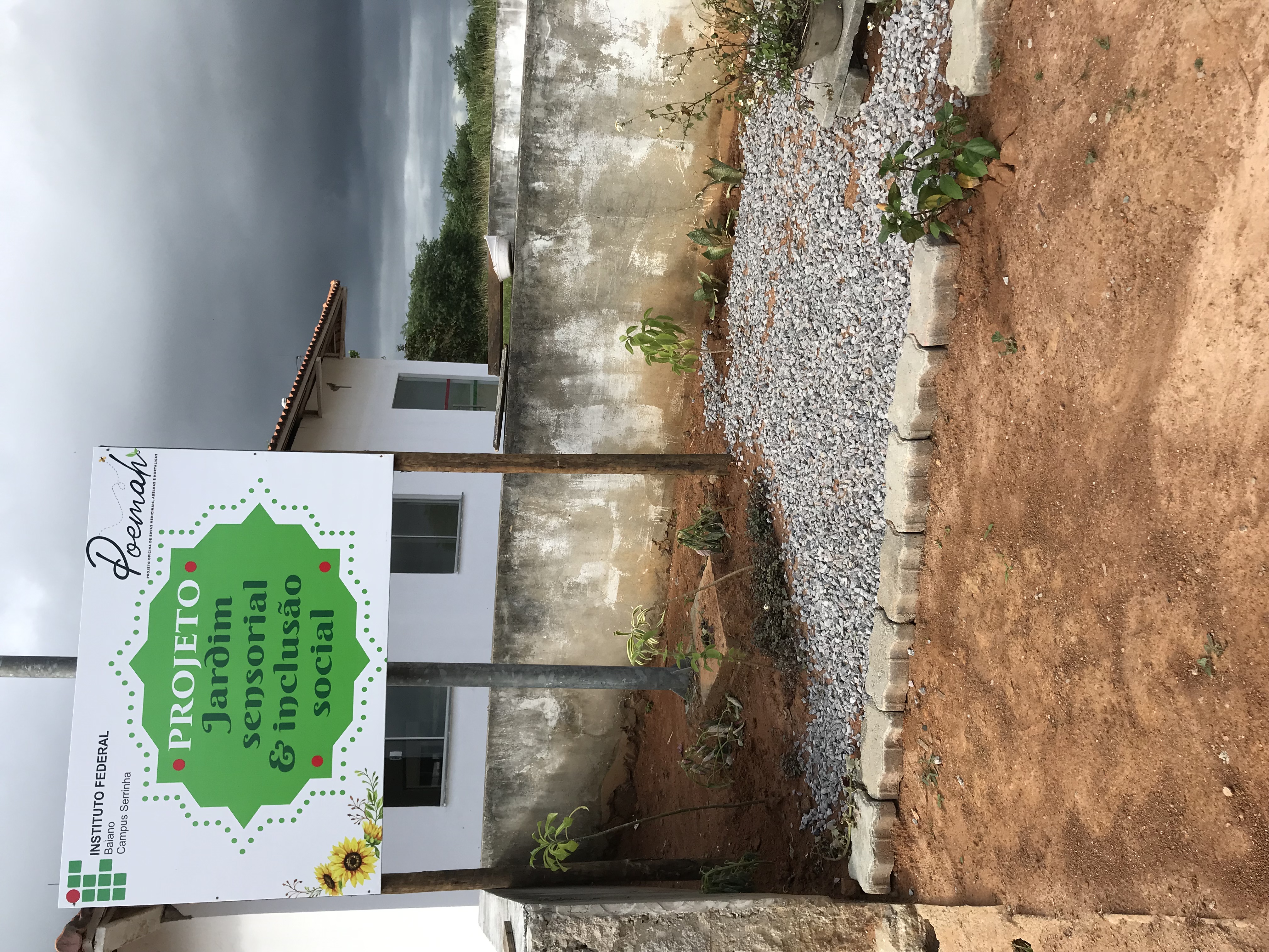 O jardim sensorial é um local que aproxima os indivíduos da natureza, com plantas que estimulam sensações, por meio da textura, cheiro e sabor das folhas e flores, além do som de alguns insetos e do vento. Esses jardins são uma importante ferramenta de inclusão, educação e participação social de pessoas com diversos tipos de especificidades, além da possibilidade de simular diversos ambientes encontrados em ecossistemas naturais. O objetivo deste projeto foi construir um jardim sensorial numa área anteriormente inutilizada do campus, para receber a comunidade externa e também para que funcione com um ambiente não formal de educação, aberto também à comunidade interna. Os canteiros foram feitos de forma a facilitar o acesso aos usuários/as de cadeira de rodas. As plantas foram separadas pelo tipo de sentido estimulado. Alecrim, erva cidreira, hortelã miúda, hortelã variegata, manjericão e menta ligadas ao olfato; chuva de prata, dracena, hortelã variegata, hibisco e véu de noiva ligadas a visão e alecrim, hortelã miúda, hortelã variegata, manjericão, matruz e menta ligadas ao paladar. Em relação ao tato, estão presentes: sete dores, hortelã grosso, alecrim e também hortelã variegata. A audição está presente na própria natureza, com os sons dos insetos e pequenos animais e do vento. Também foi construída uma trilha sensorial, para que se tenha uma experiência tátil também pelos pés. Cada planta recebeu uma placa com cores e símbolos diferentes, para melhor identificação das plantas pelas crianças e pessoas com deficiência visual. Placas com círculo azul para plantas ligadas ao olfato; com triângulo amarelo para as plantas ligadas ao tato e placas com quadrado vermelho para as ligadas ao paladar. O jardim recebe visitas, nas quais o/a visitante é vendado/a e encaminhado aos canteiros para possa sentir os cheiros, sabores e tocar nas plantas com o intuito de identificá-las.