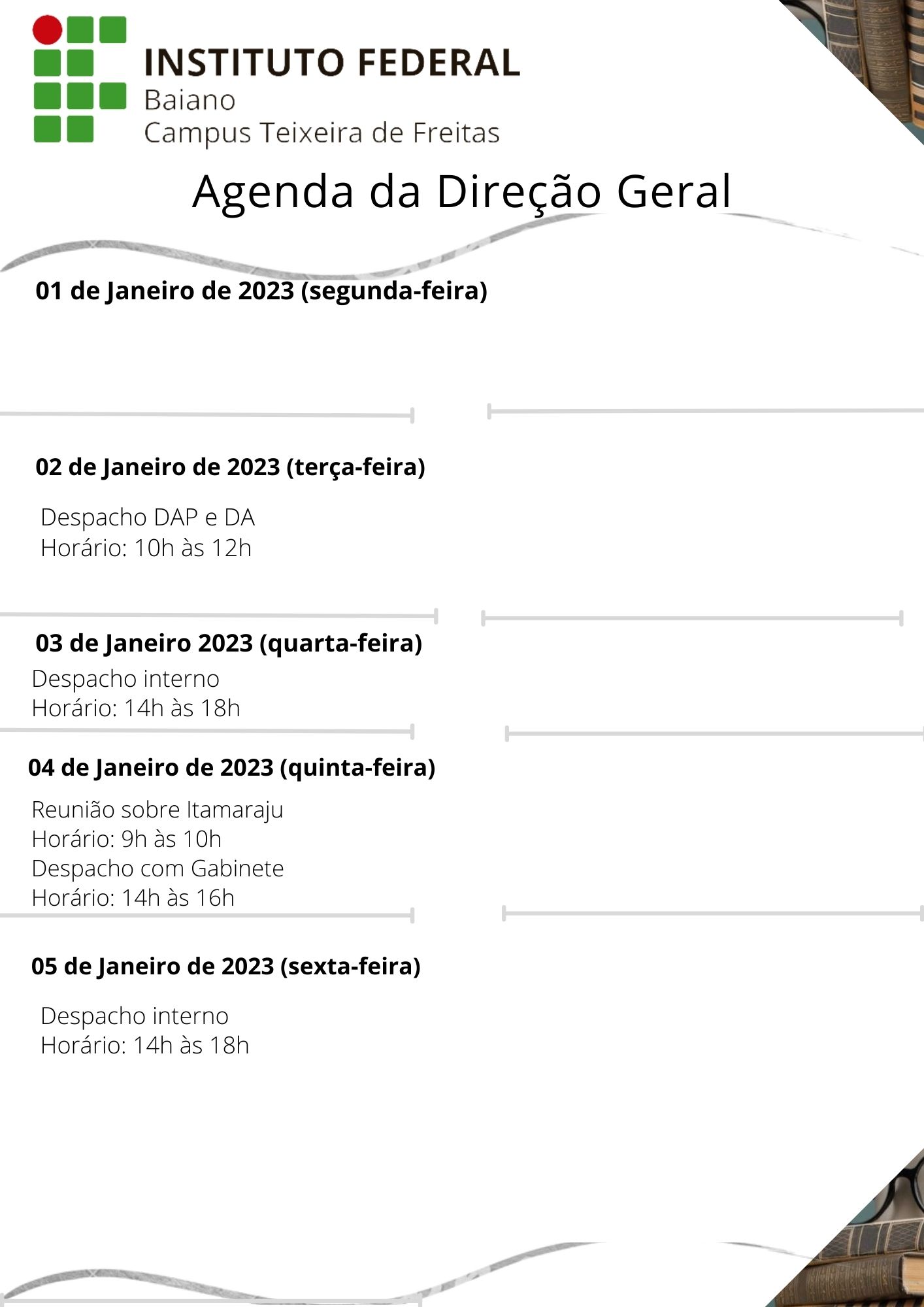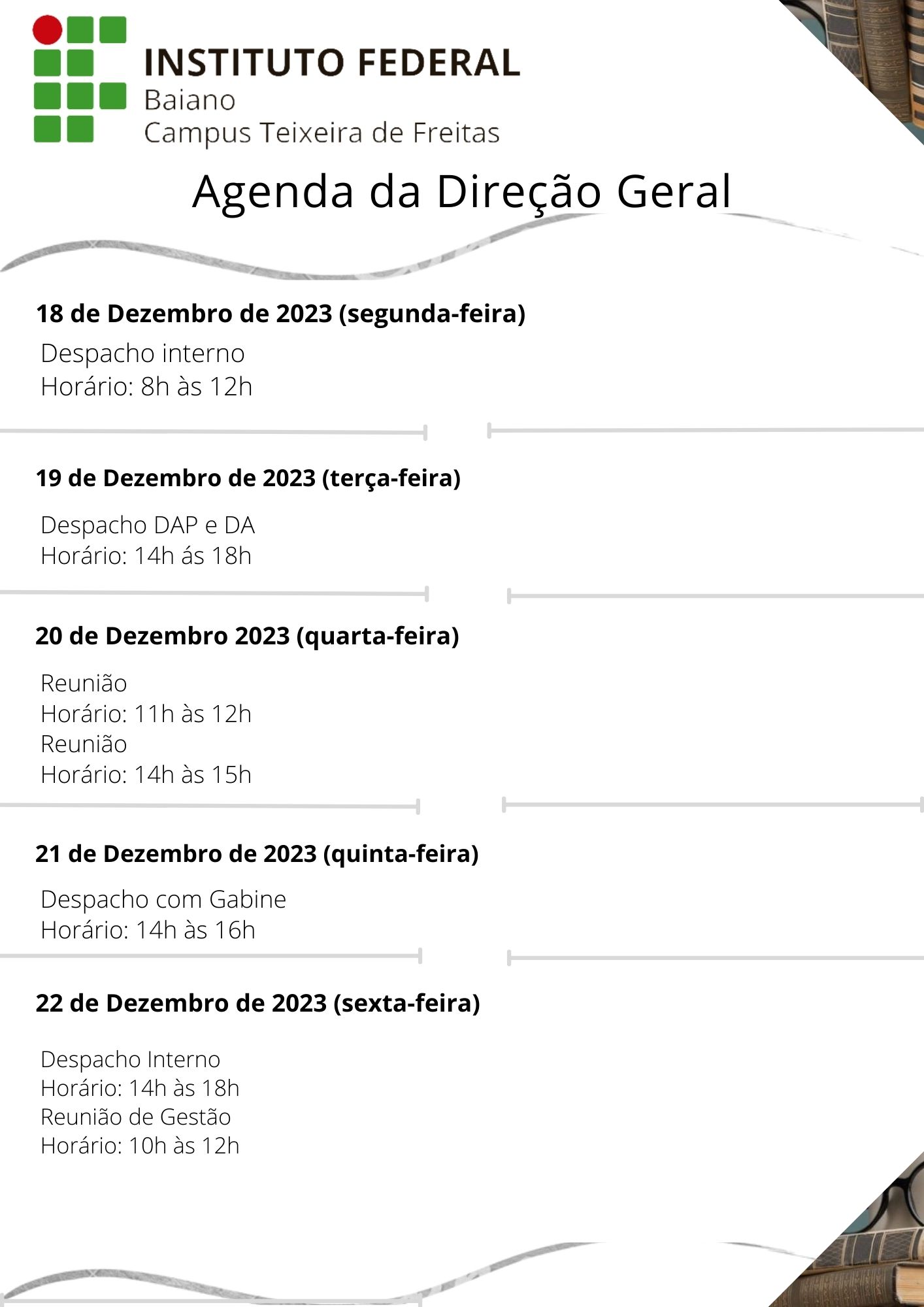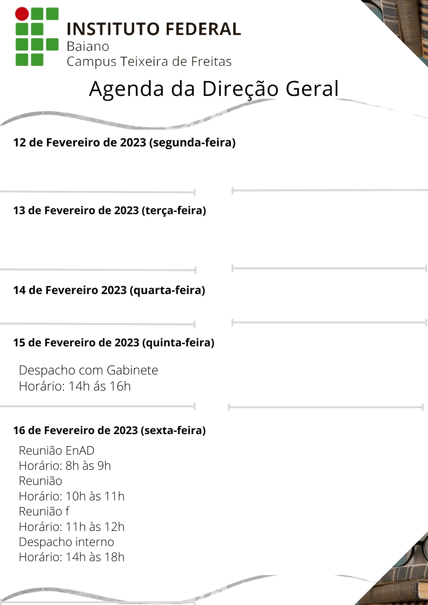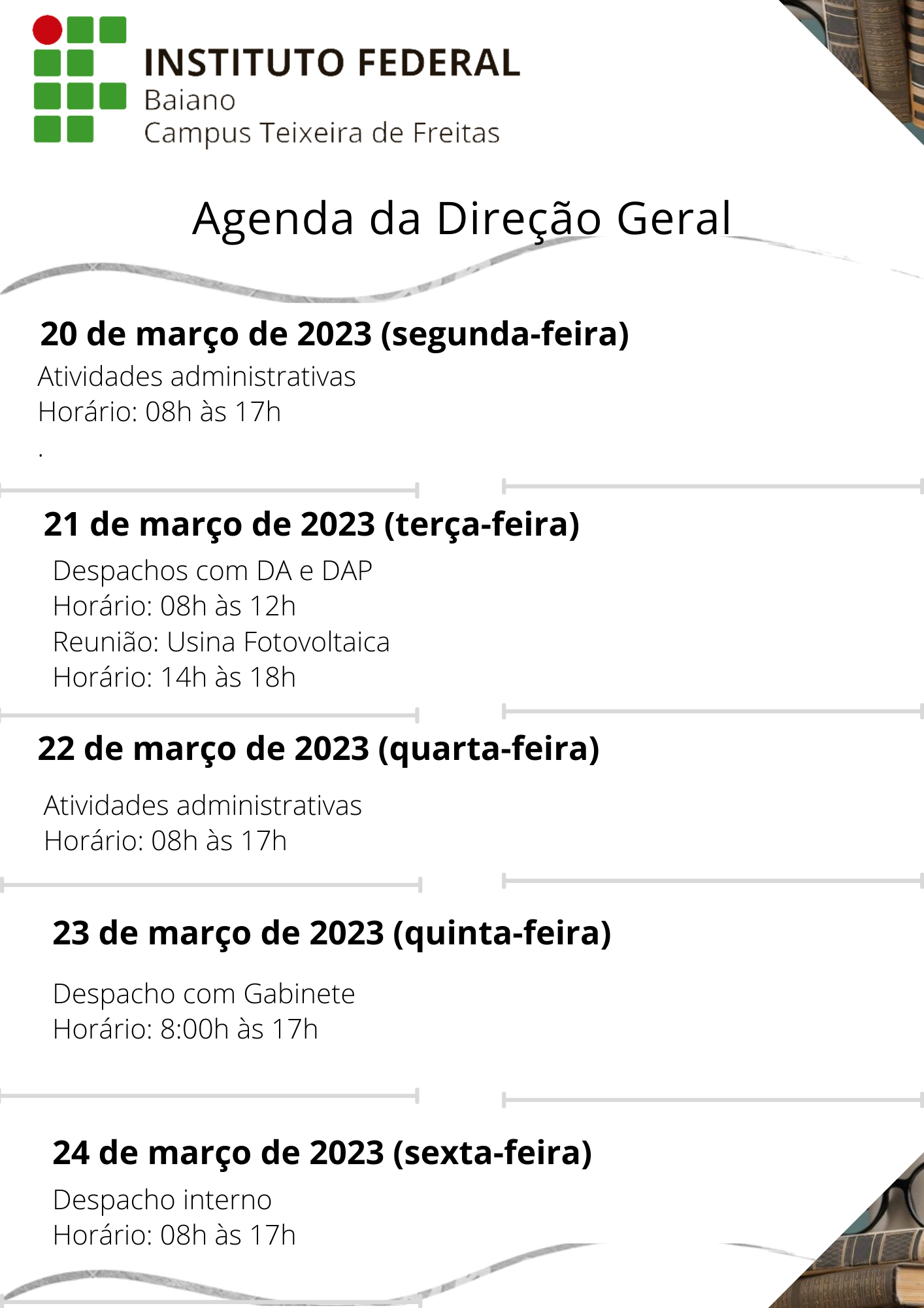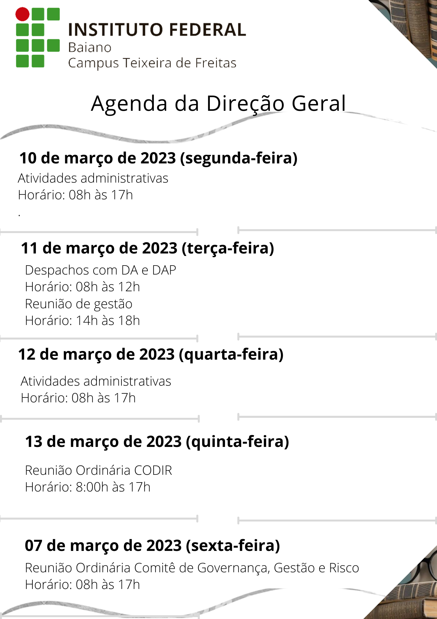 Visualize a Agenda da Direção do Campus Teixeira de Freitas abaixo ou acesse este link.