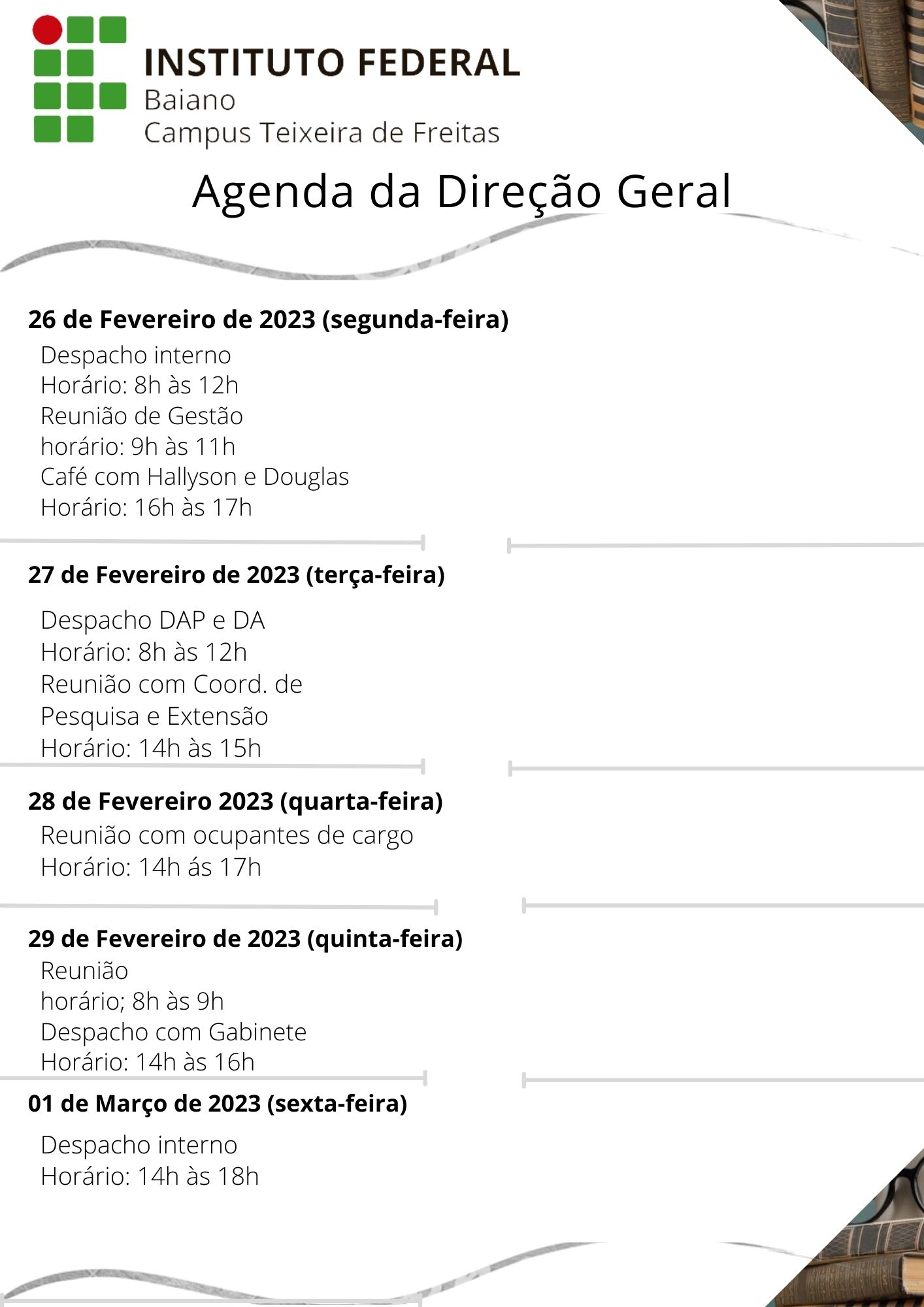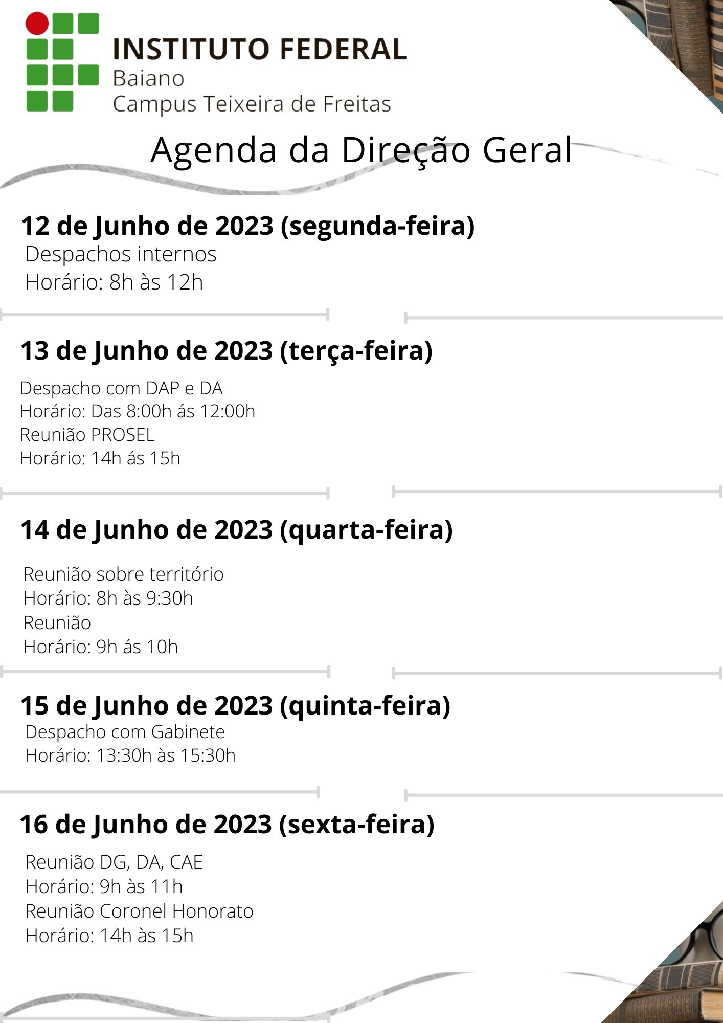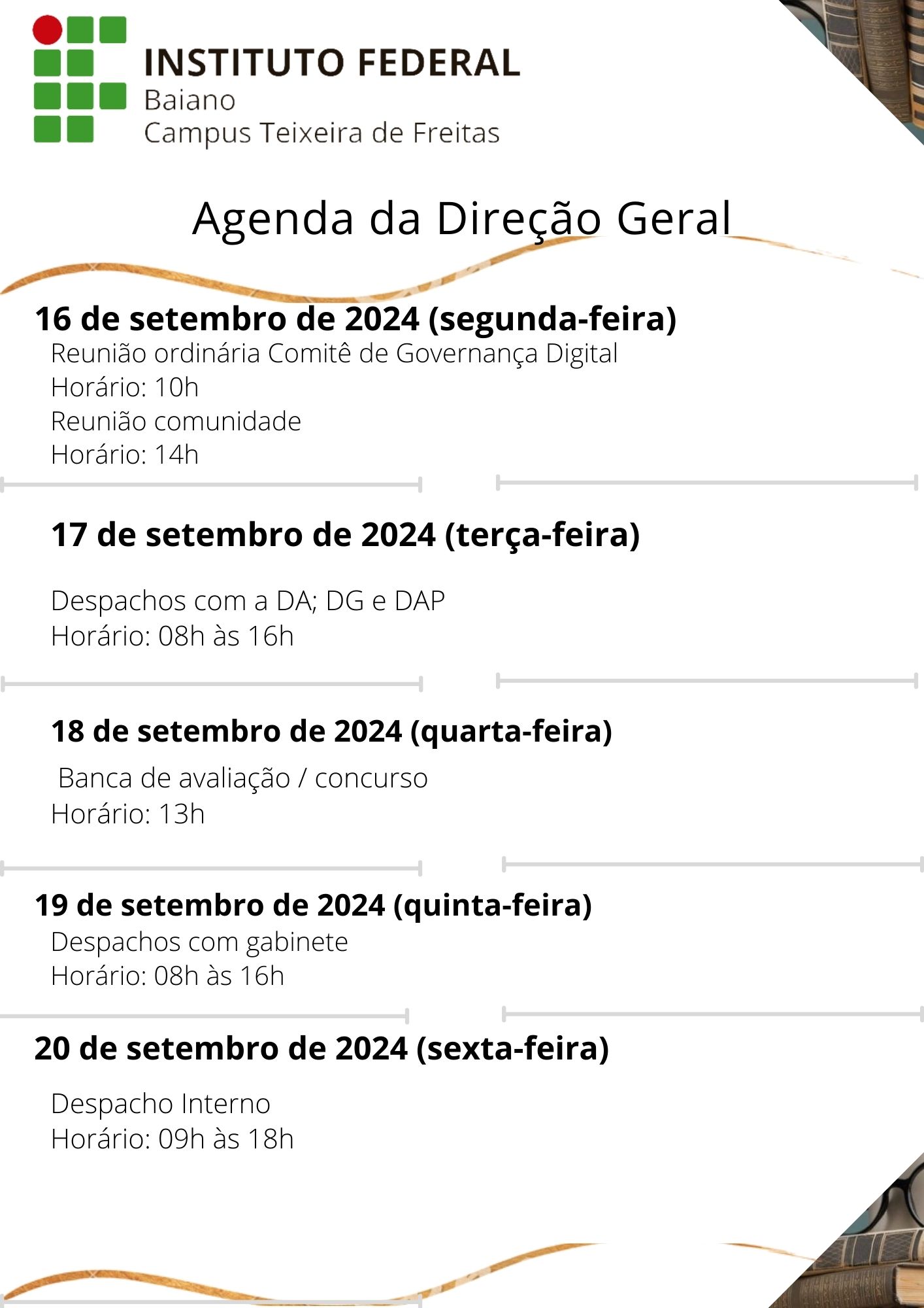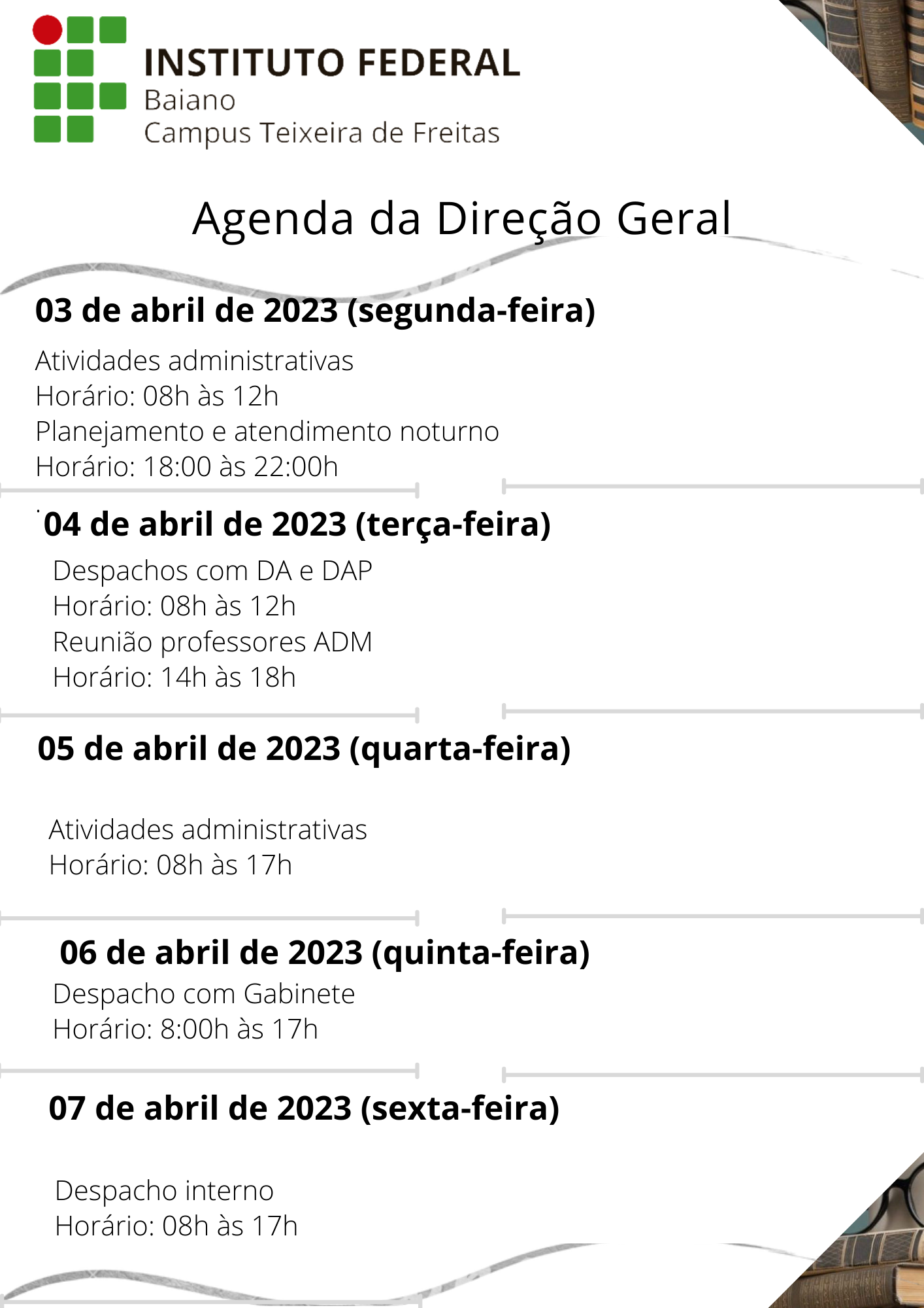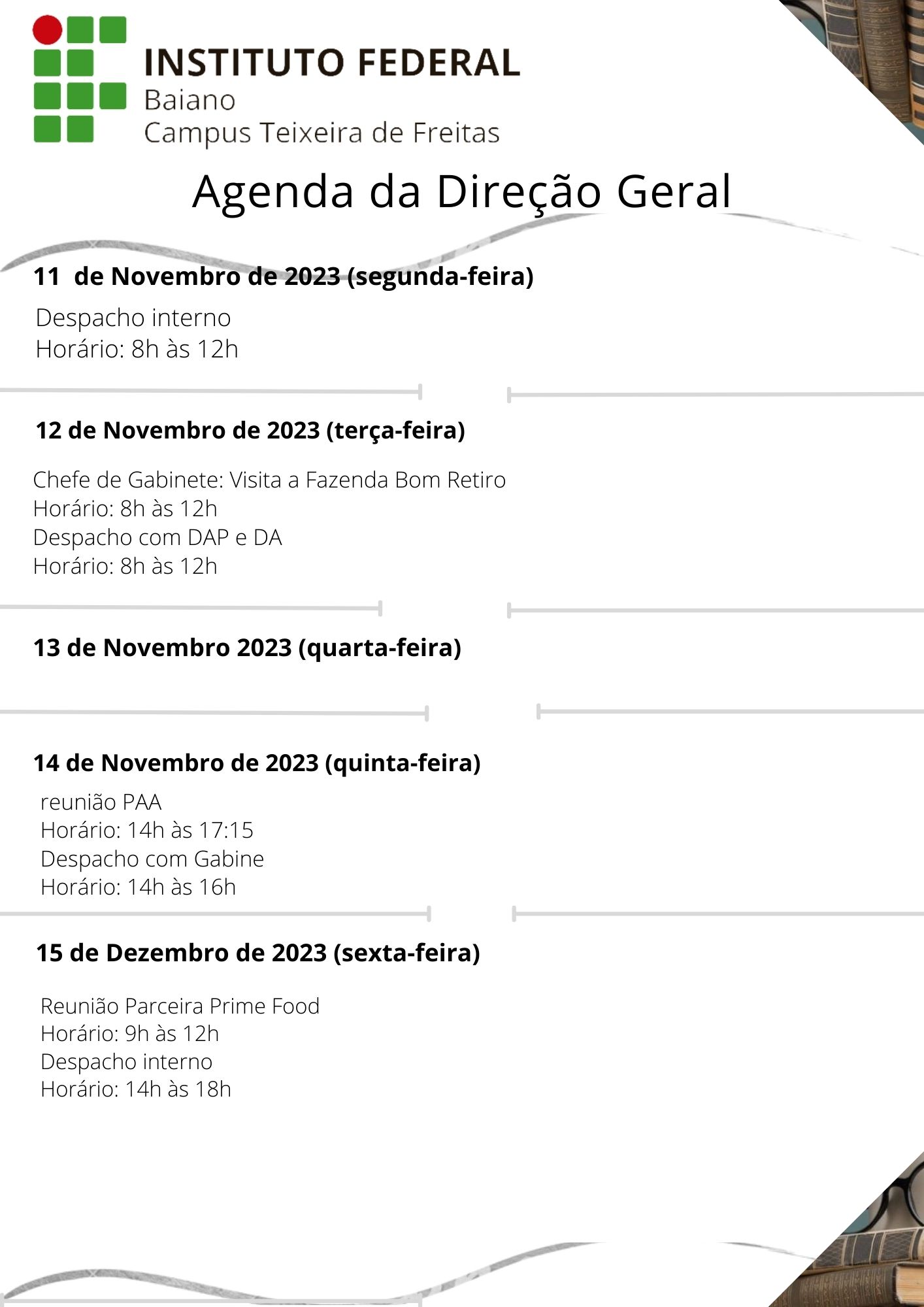 Visualize a Agenda da Direção do Campus Teixeira de Freitas abaixo ou acesse este link.