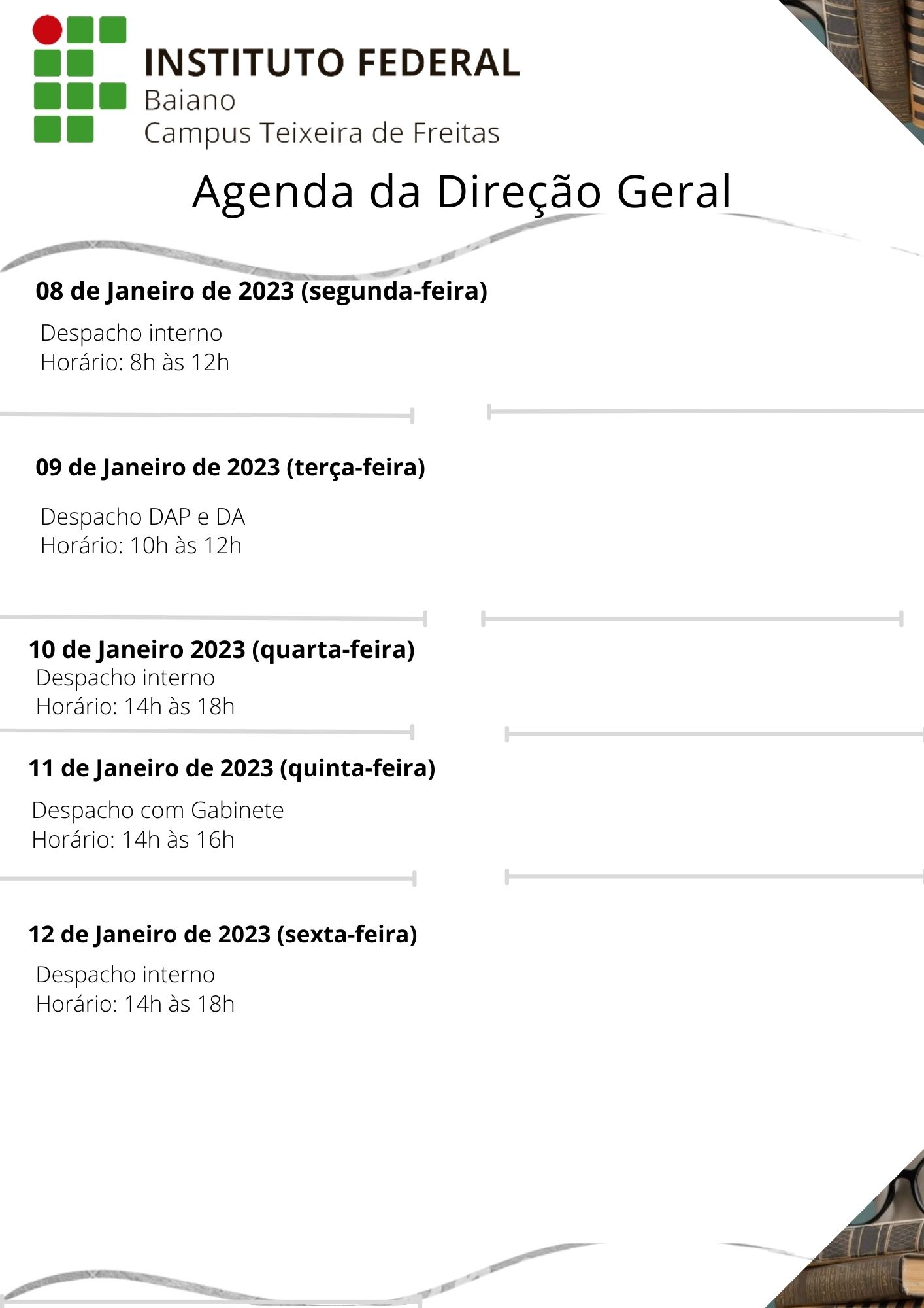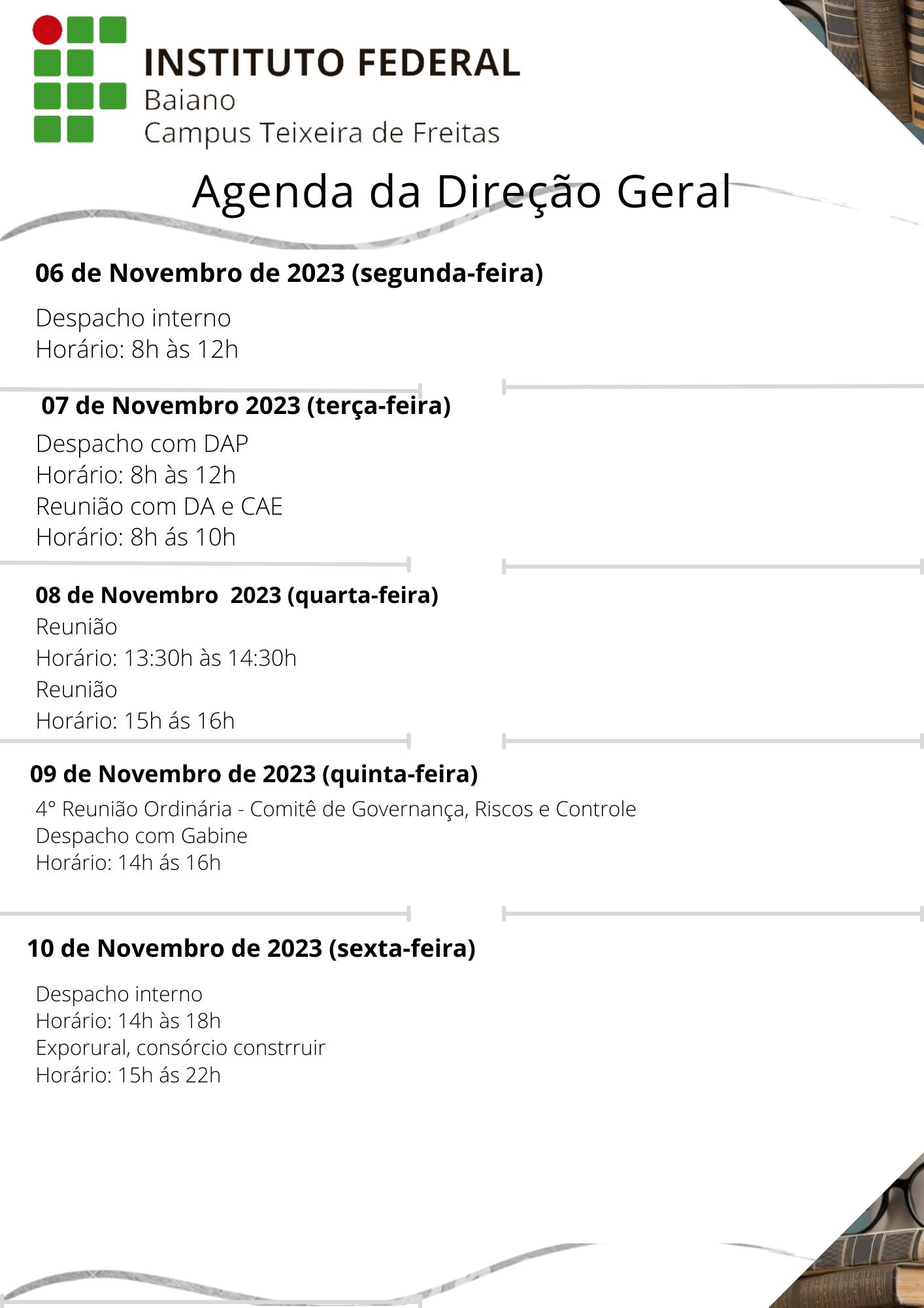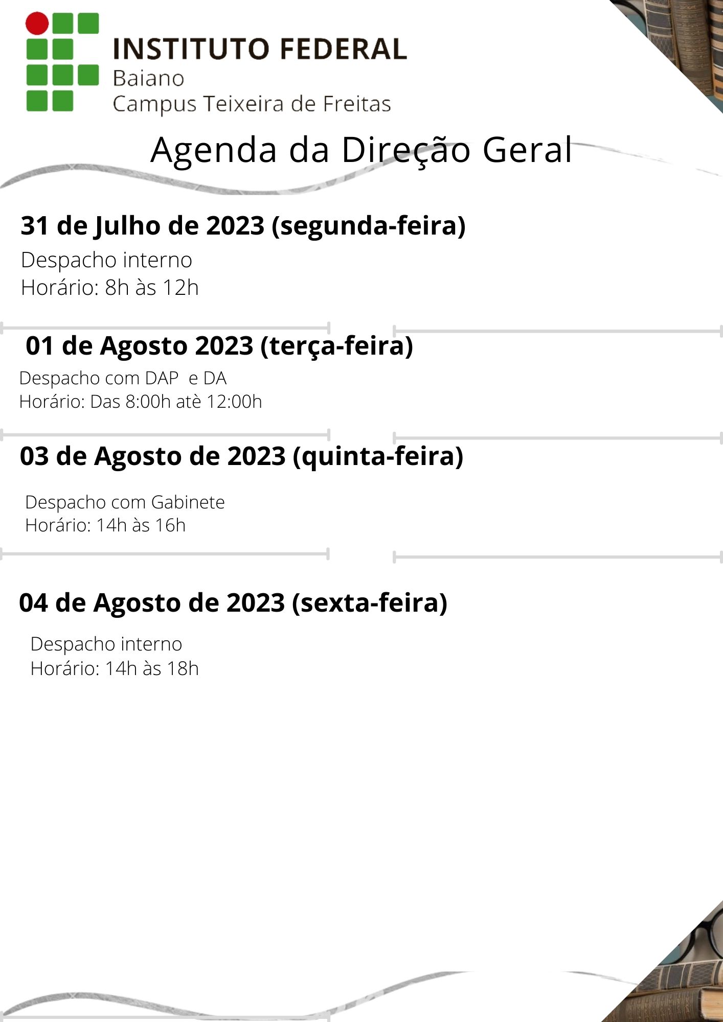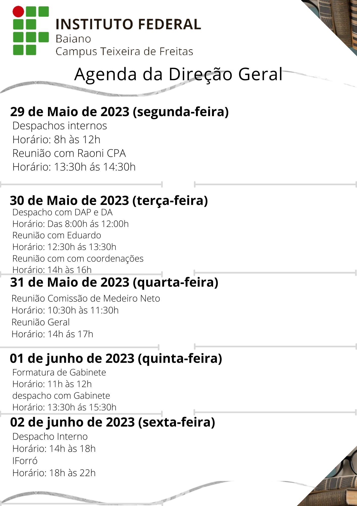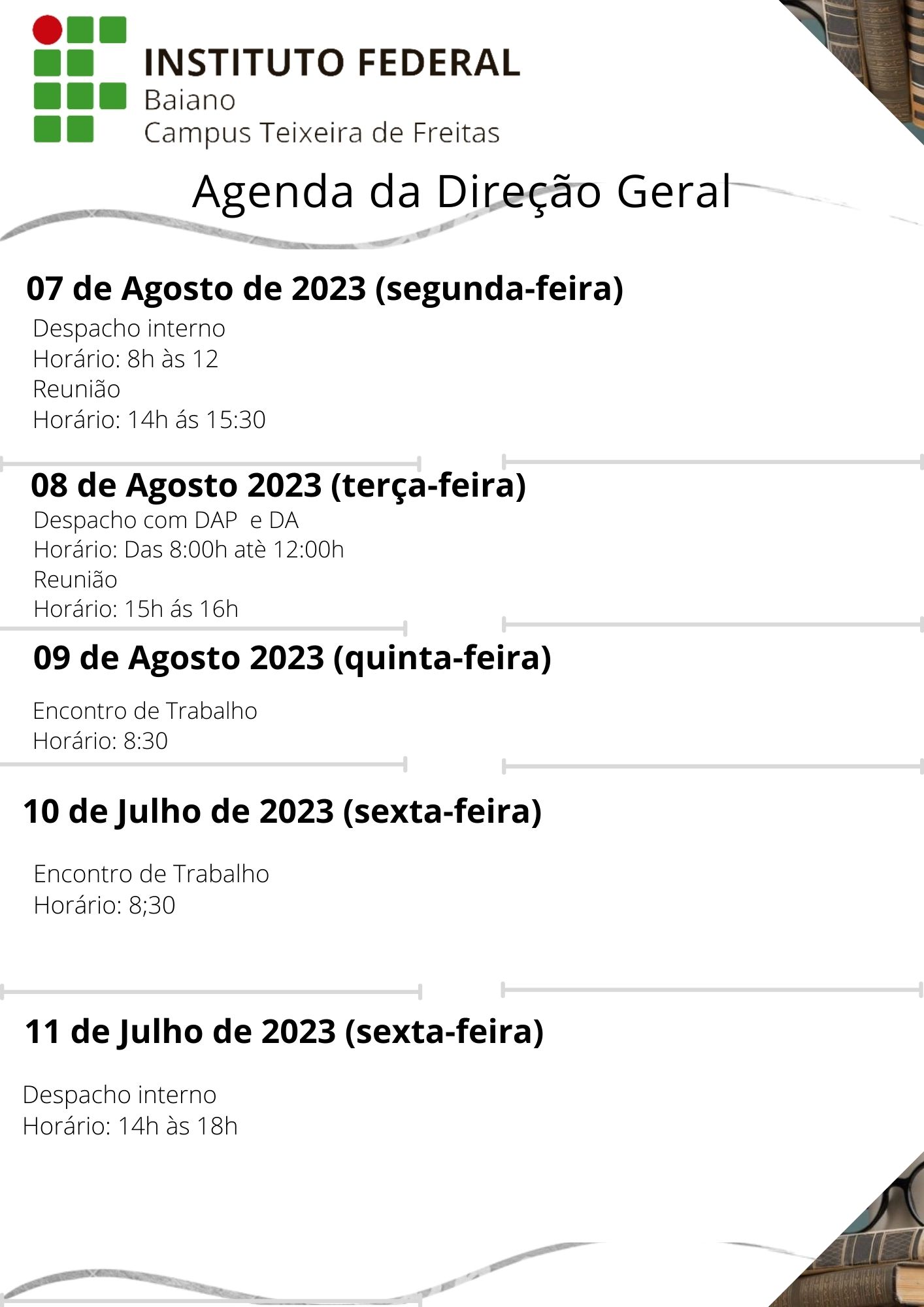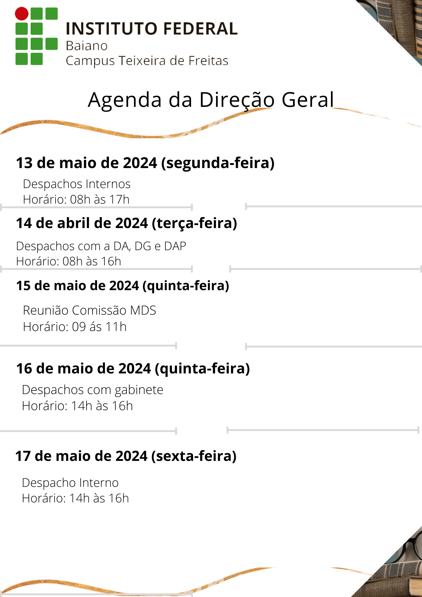 Visualize a Agenda da Direção do Campus Teixeira de Freitas abaixo ou acesse este link.