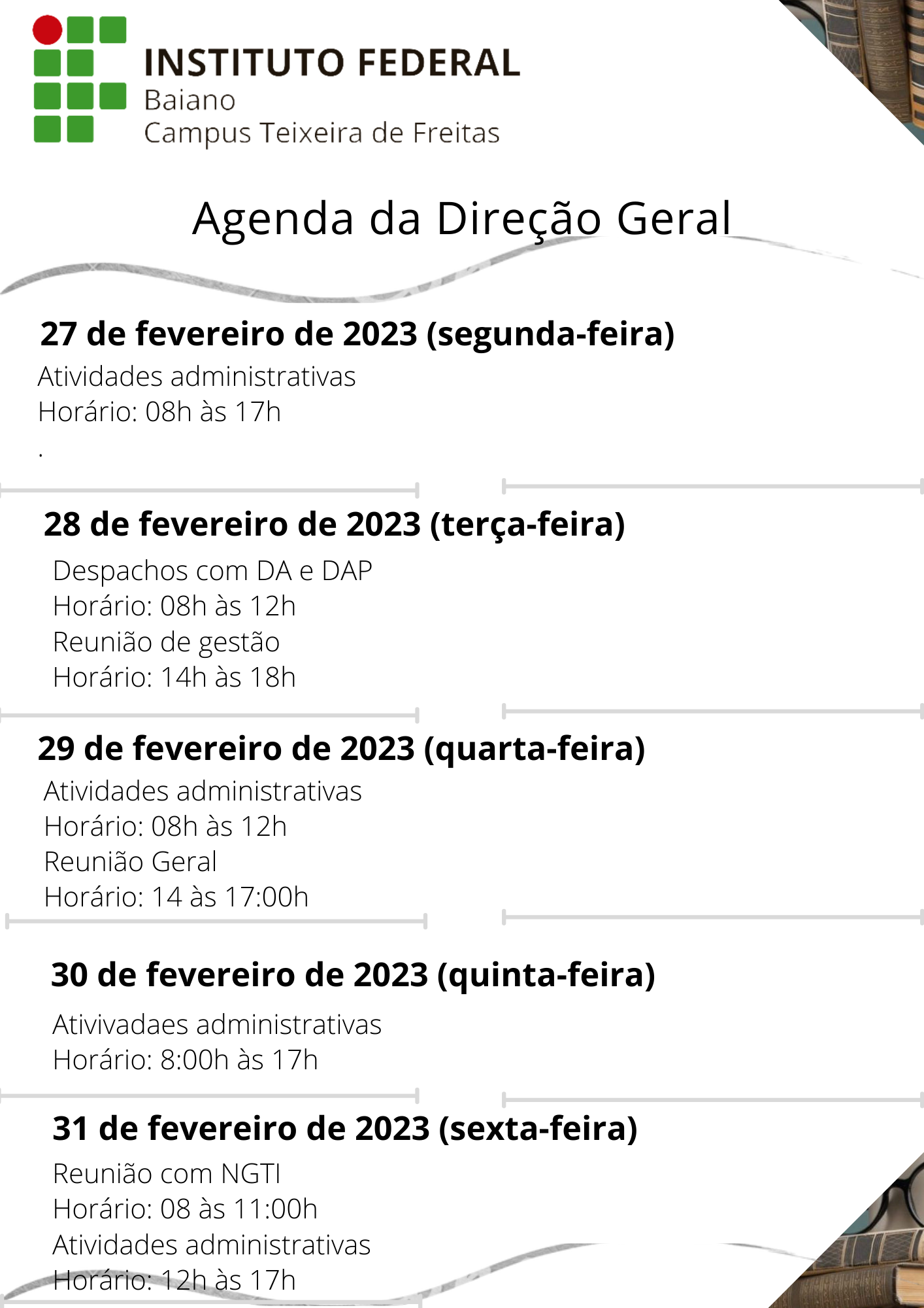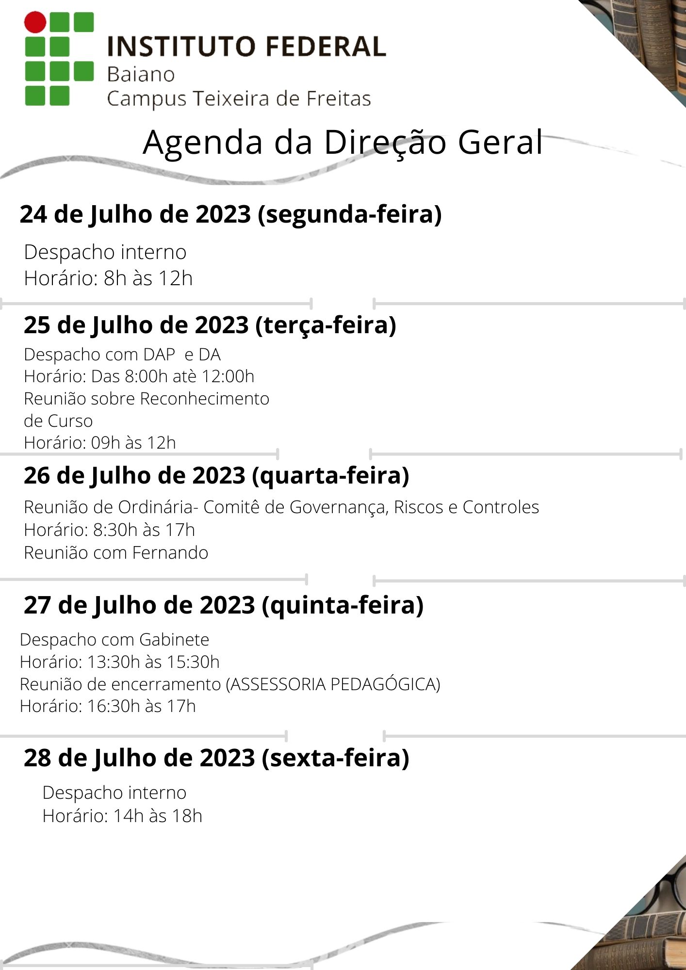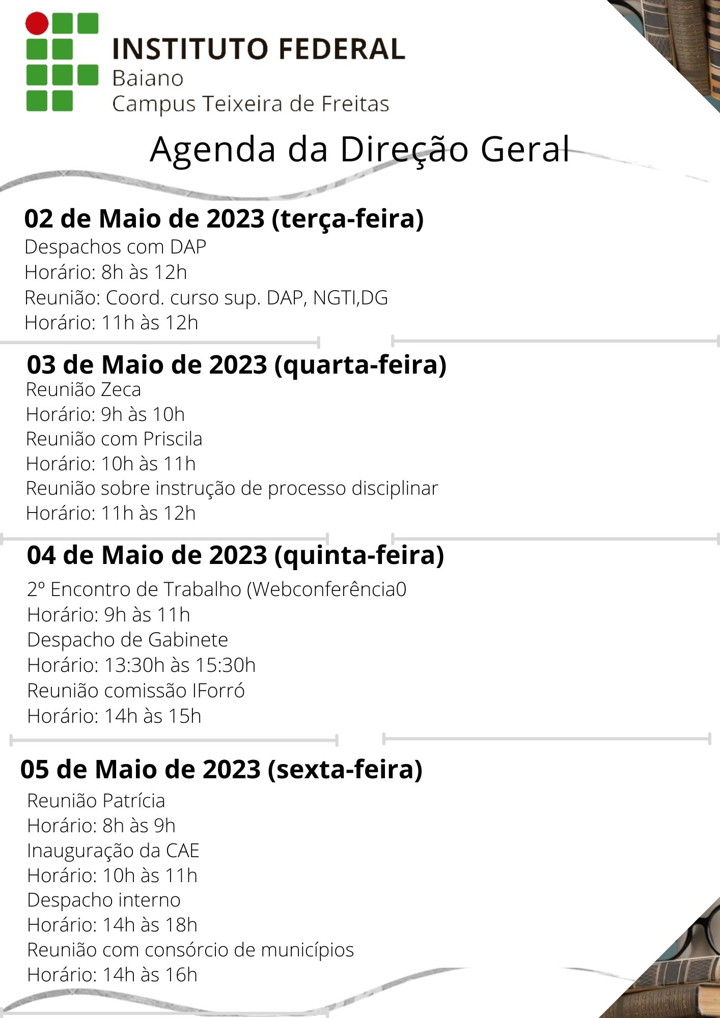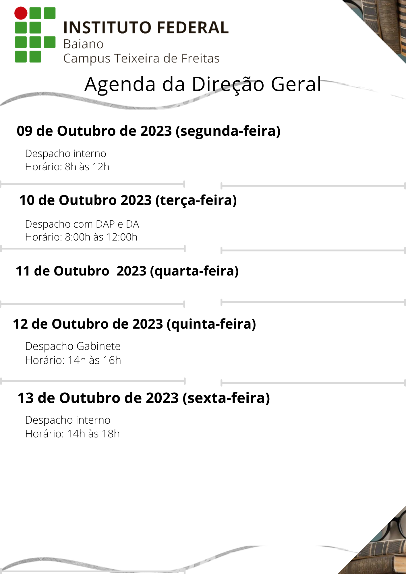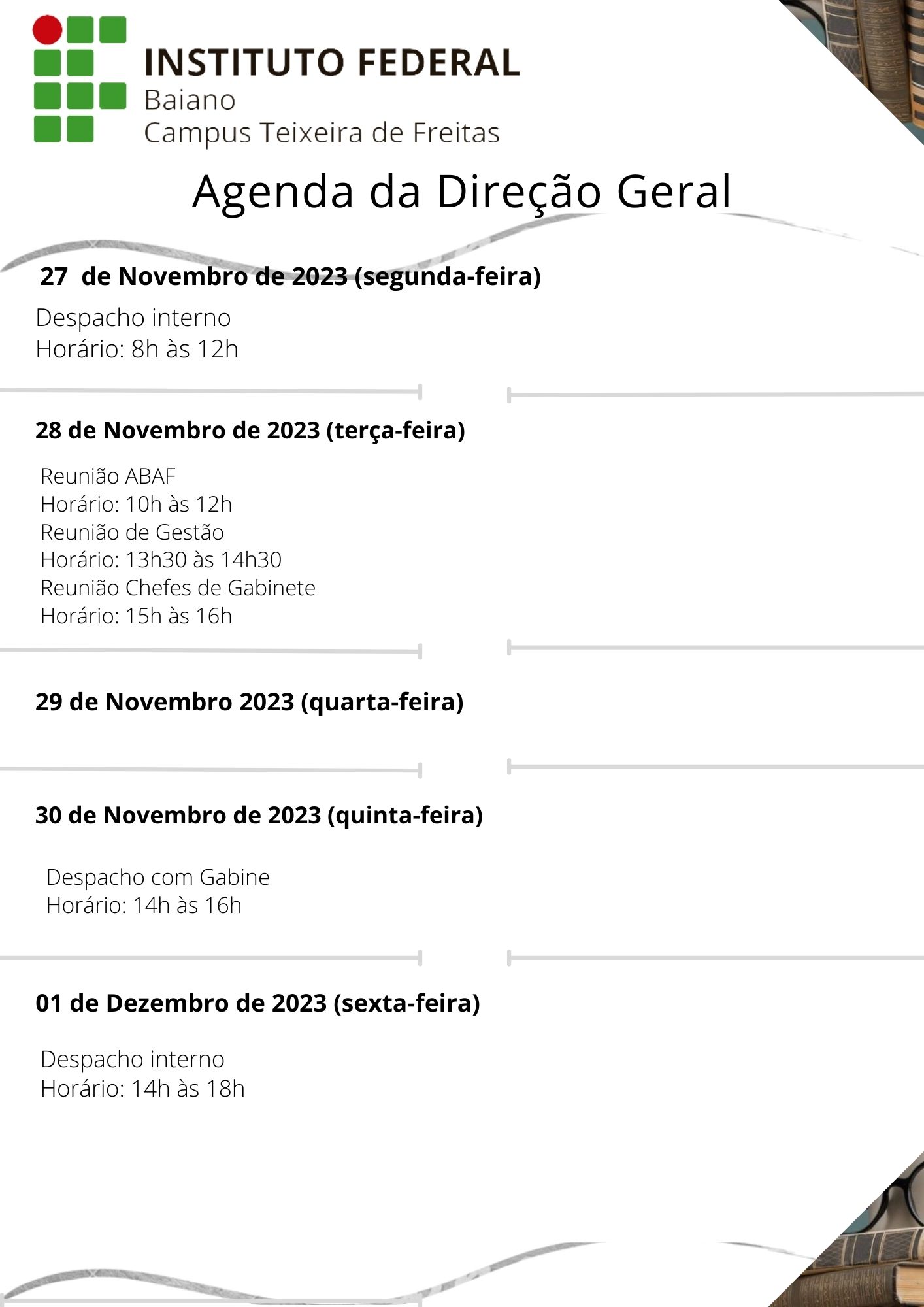 Visualize a Agenda da Direção do Campus Teixeira de Freitas abaixo ou acesse este link.