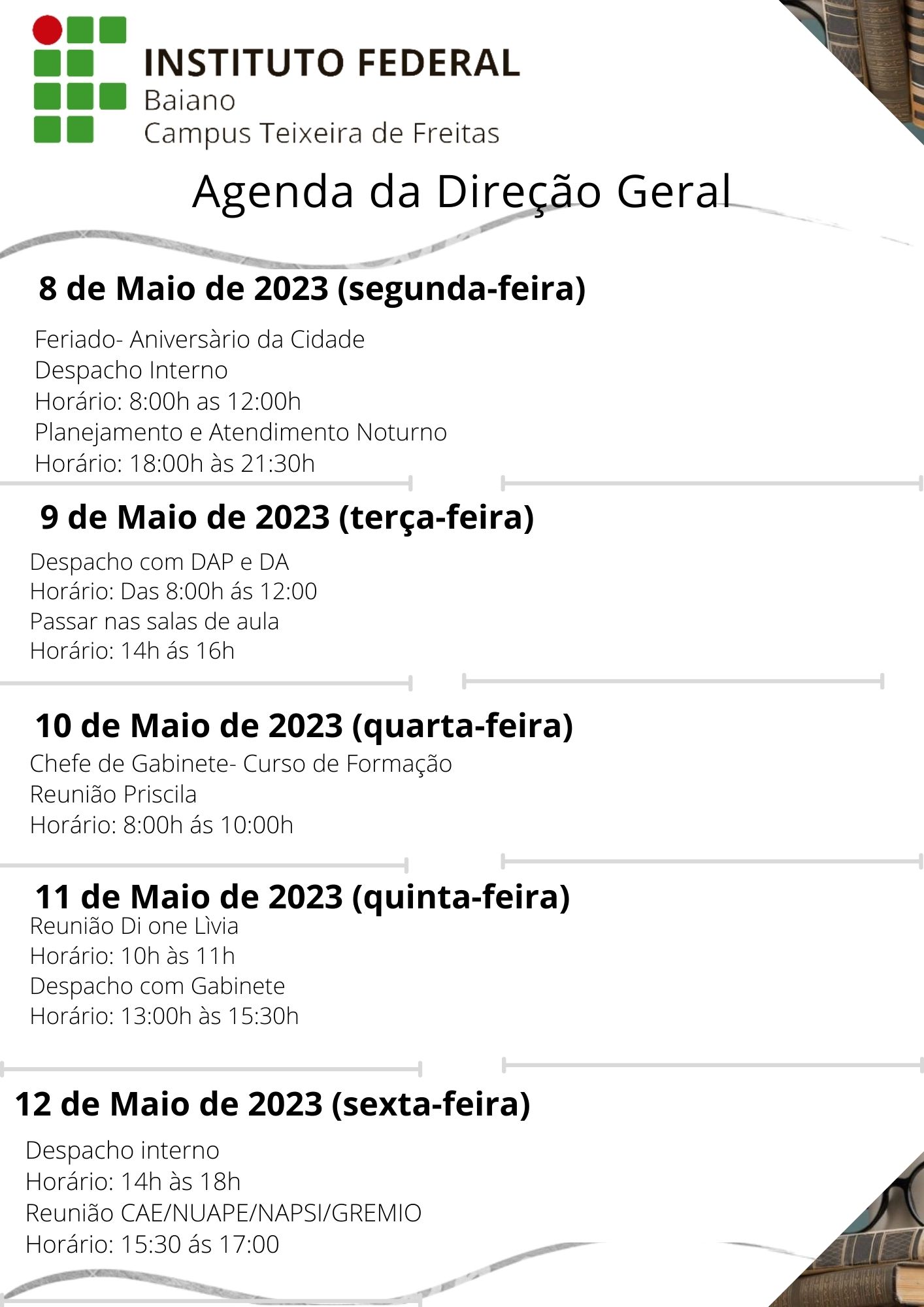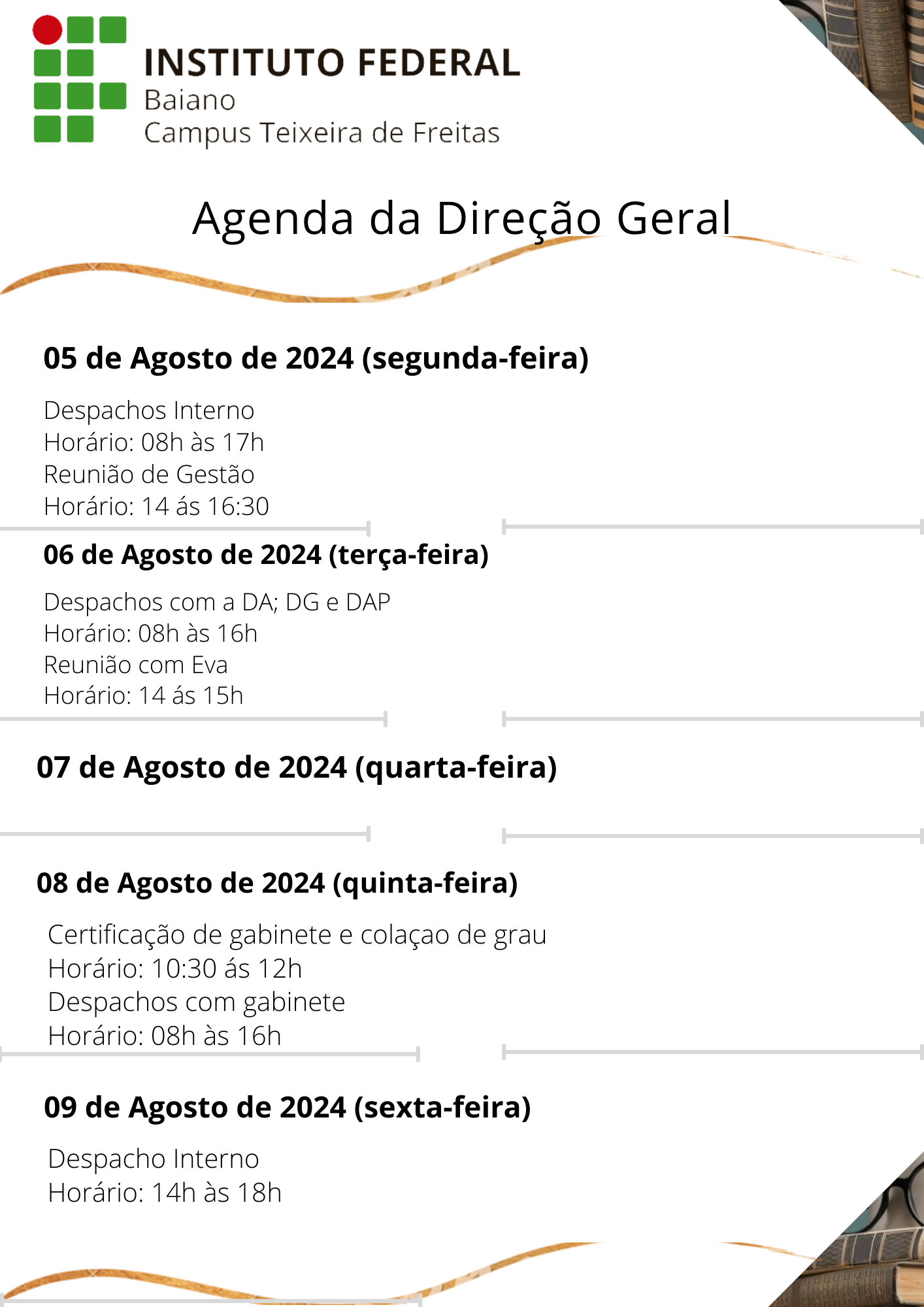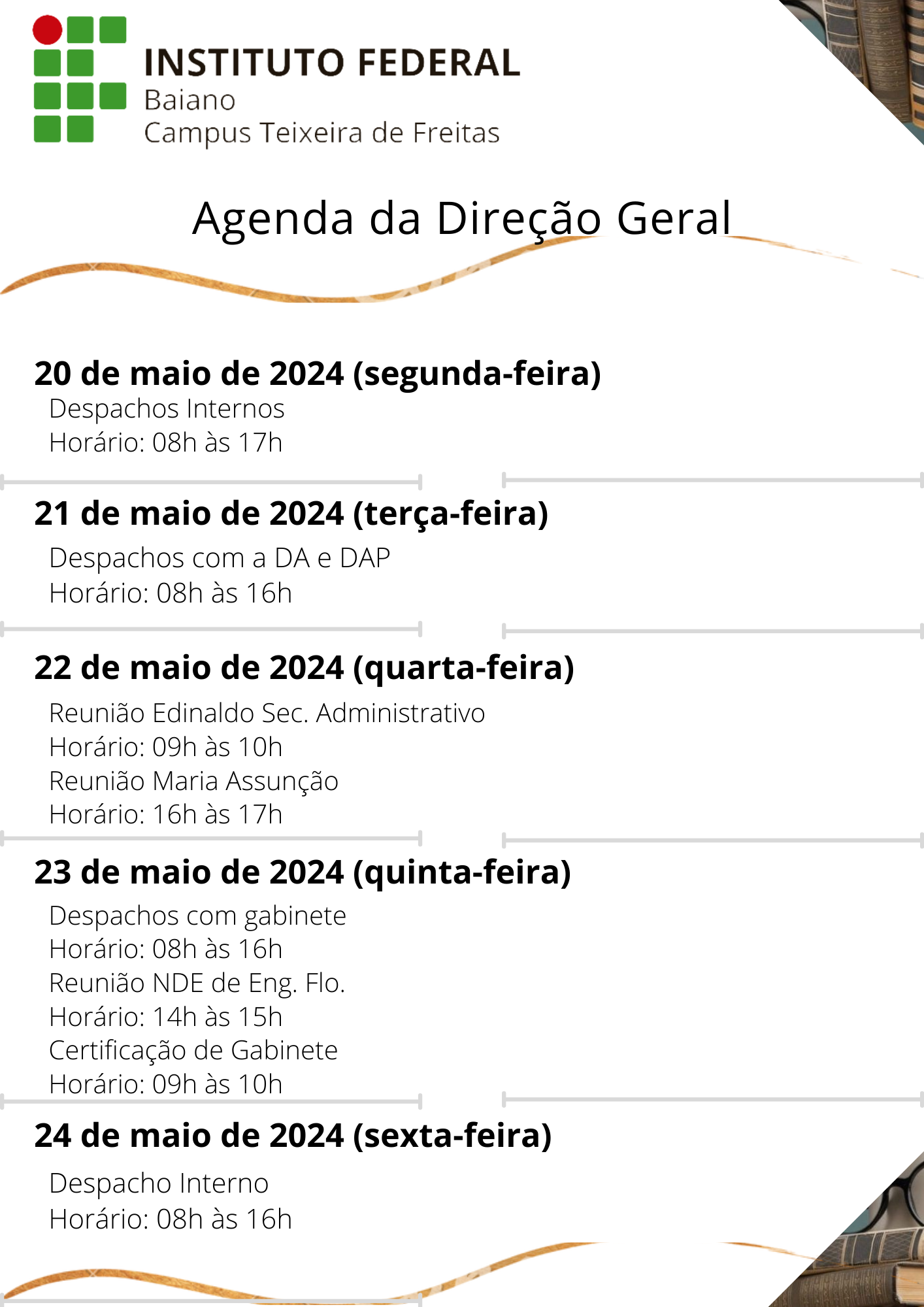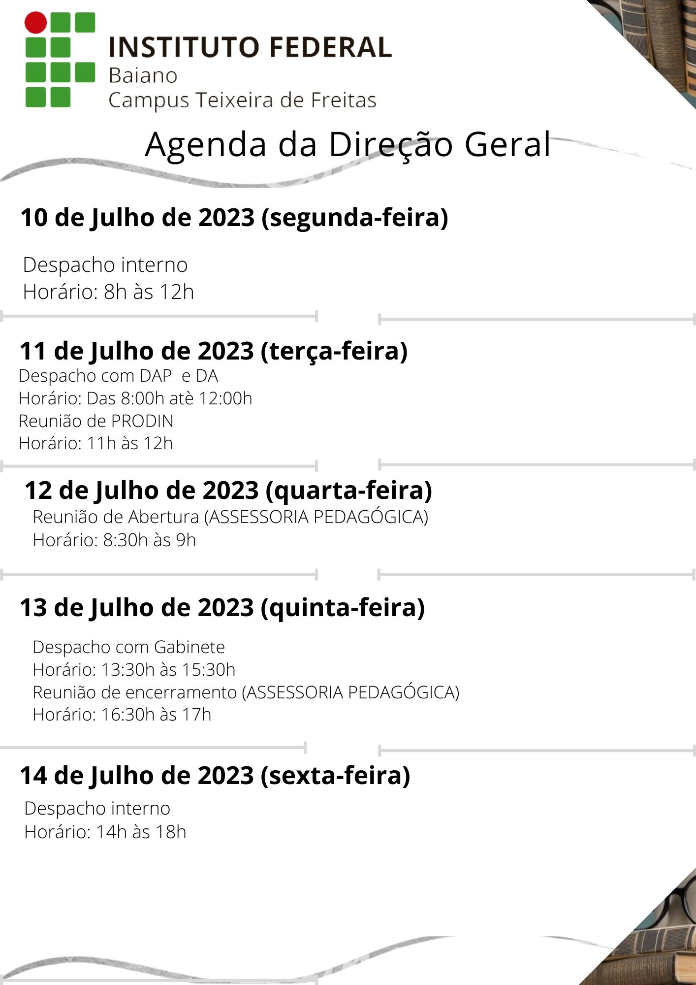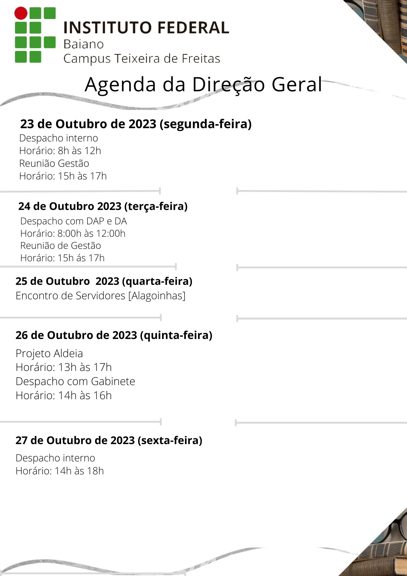Visualize a Agenda da Direção do Campus Teixeira de Freitas abaixo ou acesse este link.