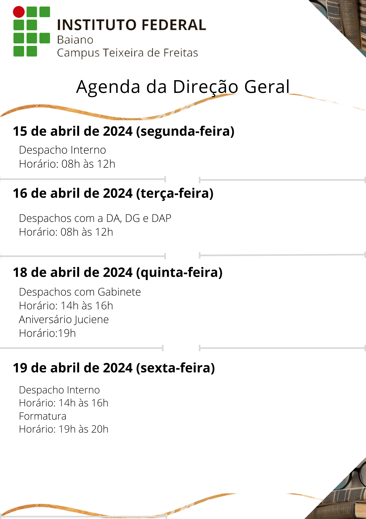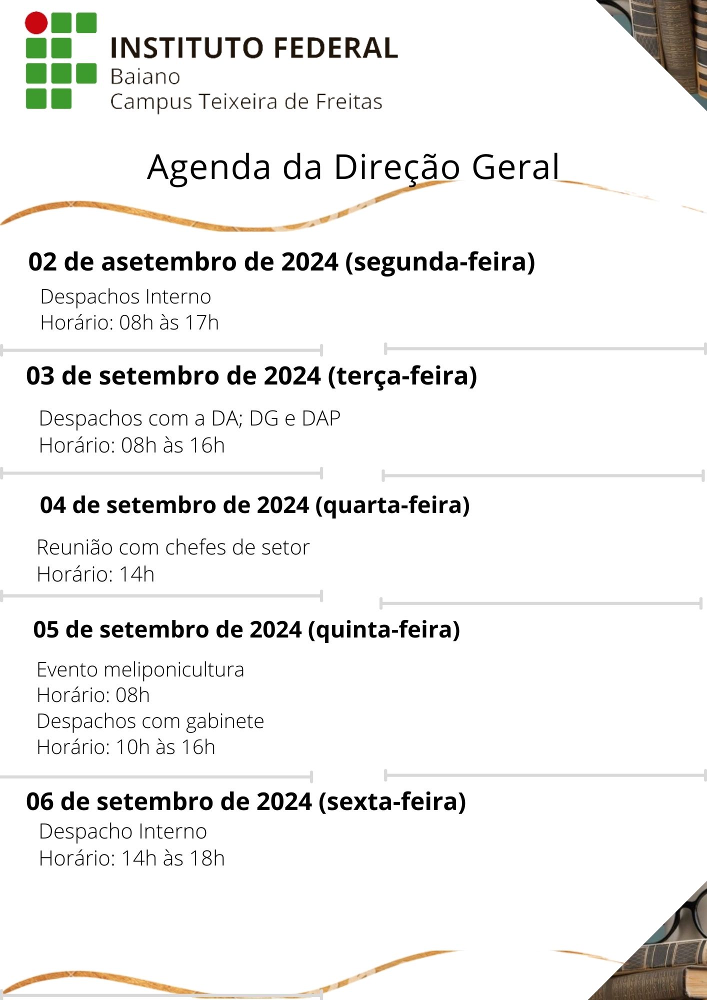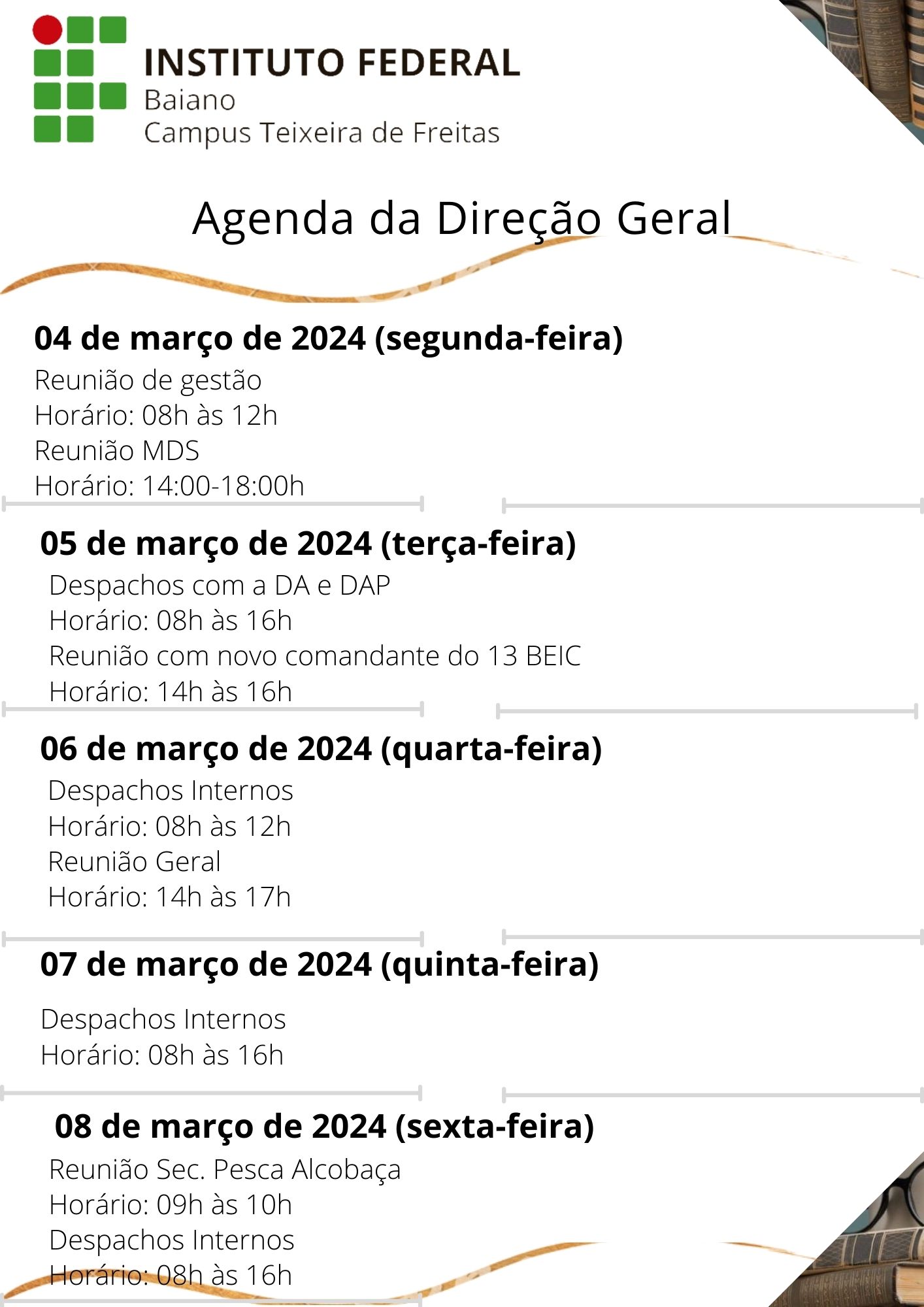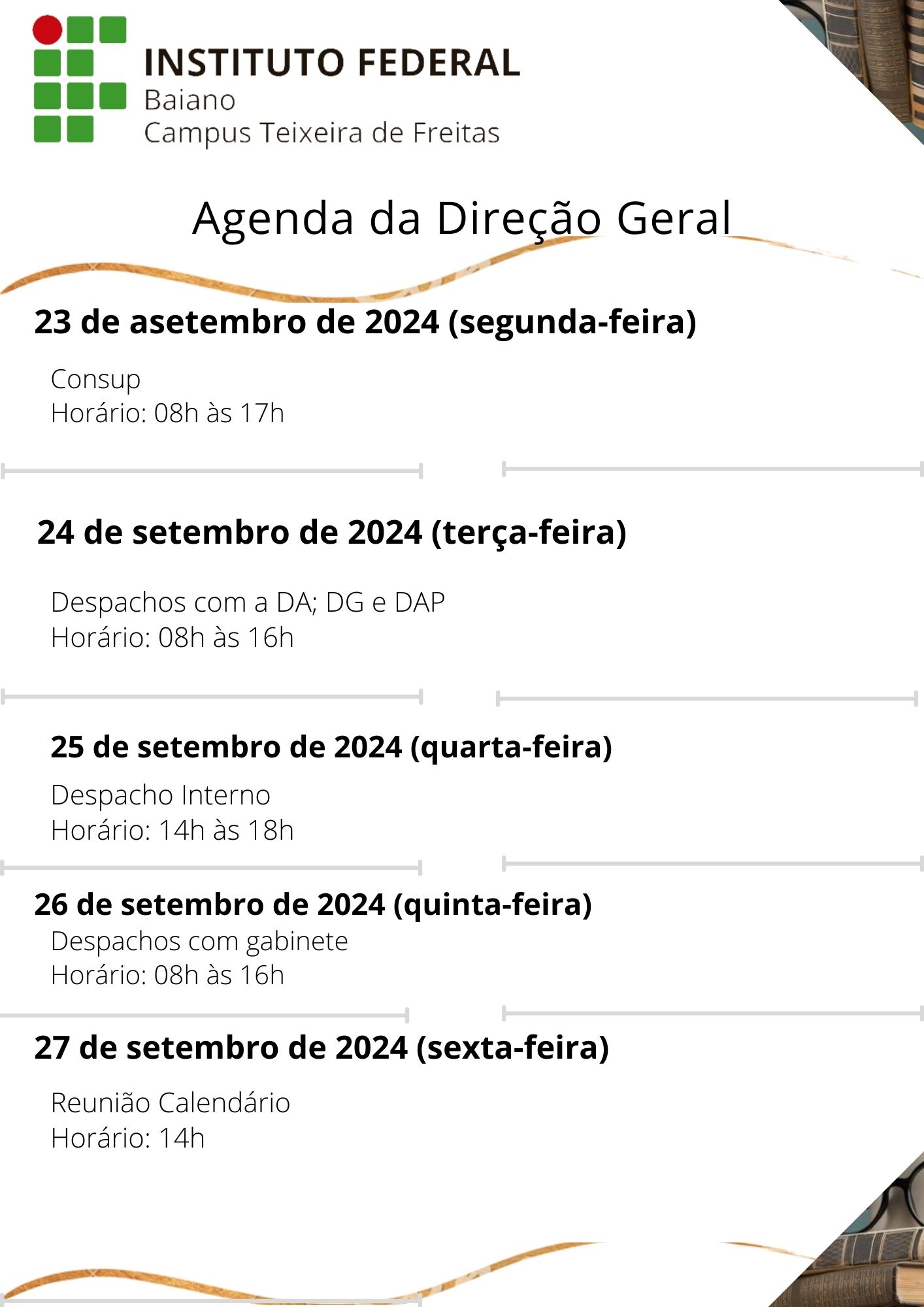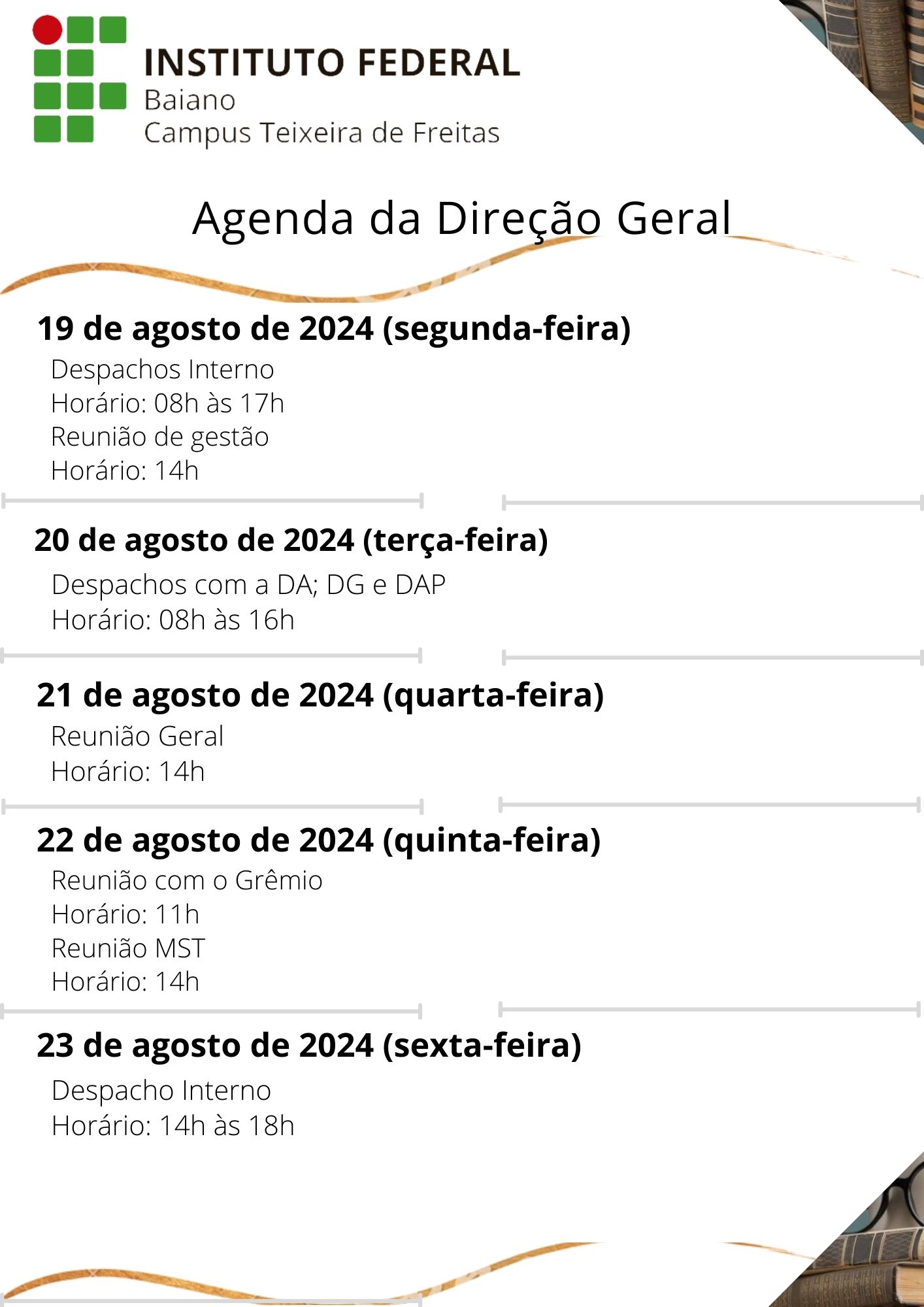 Visualize a Agenda da Direção do Campus Teixeira de Freitas abaixo ou acesse este link.