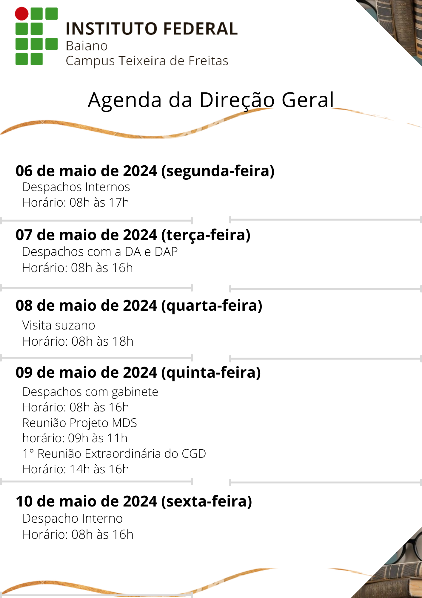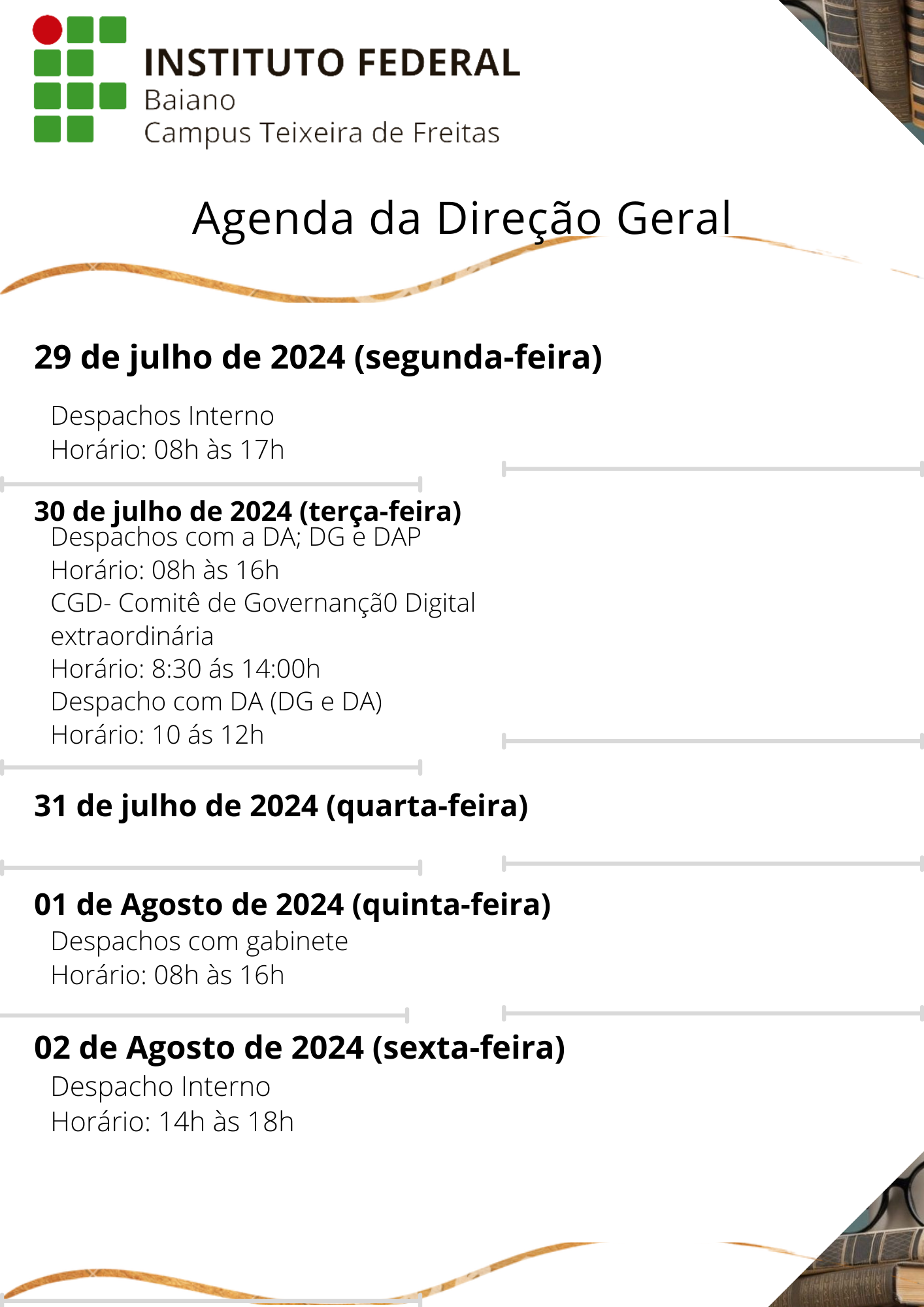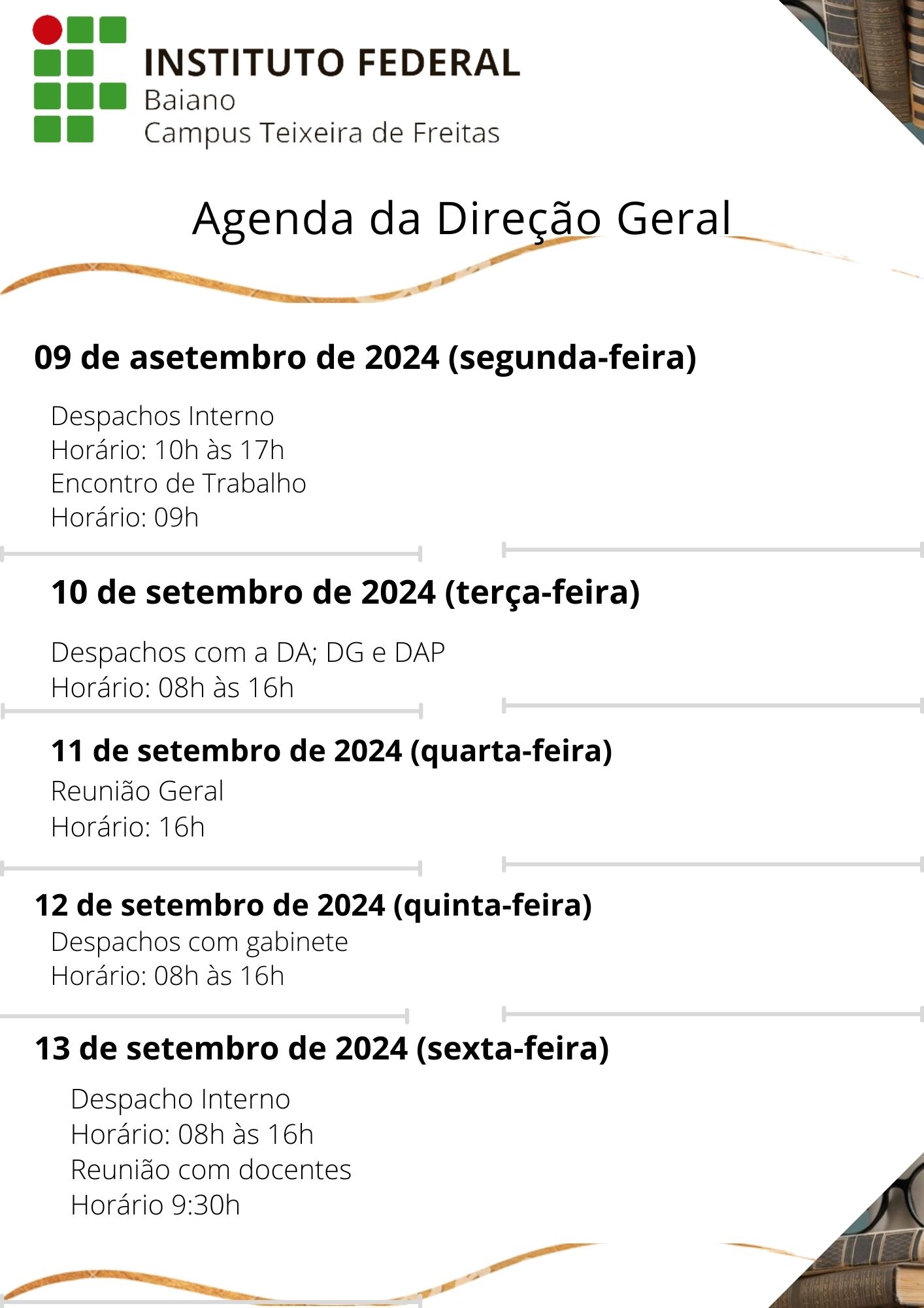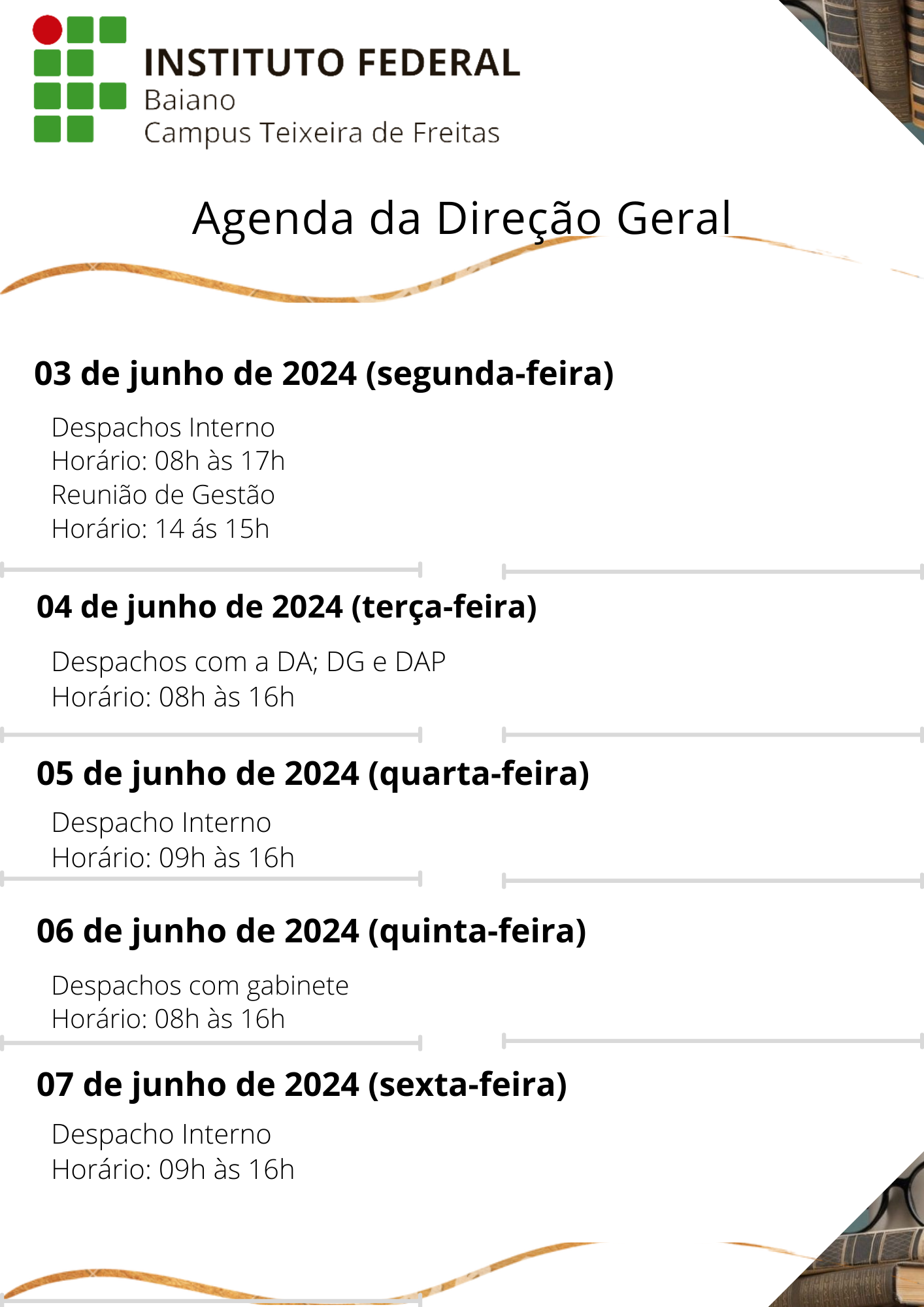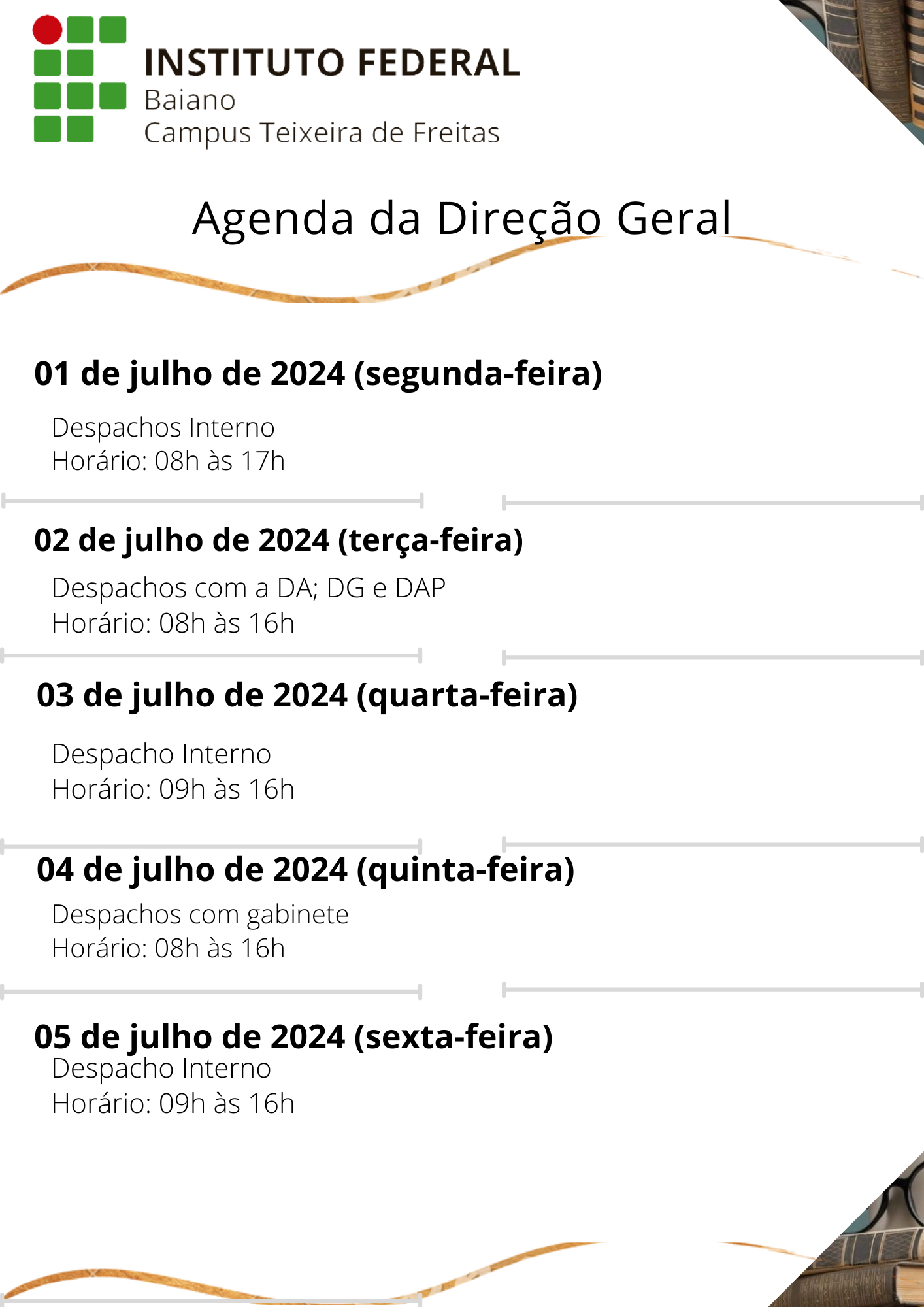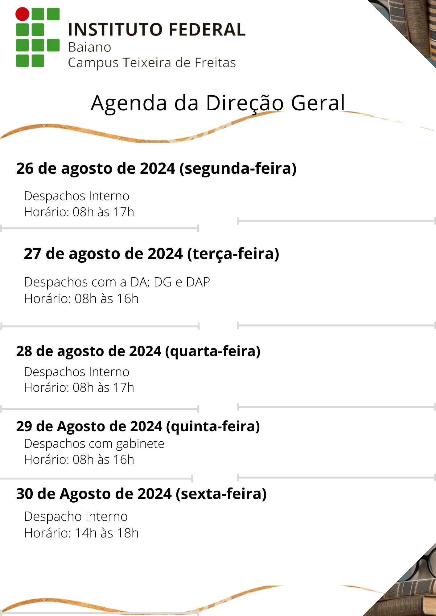 Visualize a Agenda da Direção do Campus Teixeira de Freitas abaixo ou acesse este link.