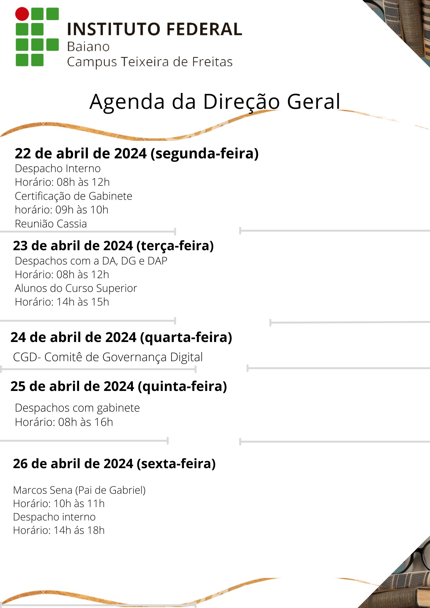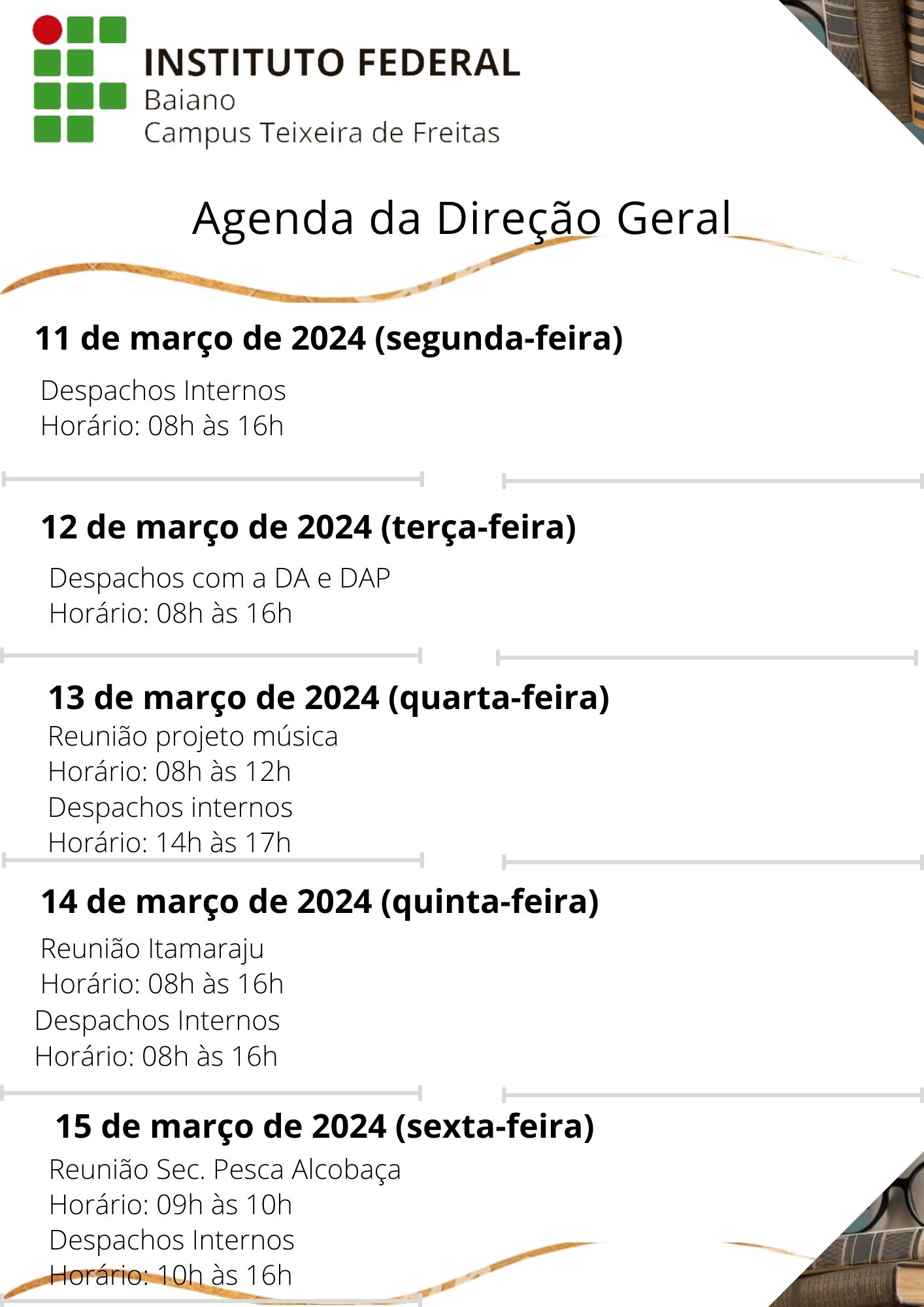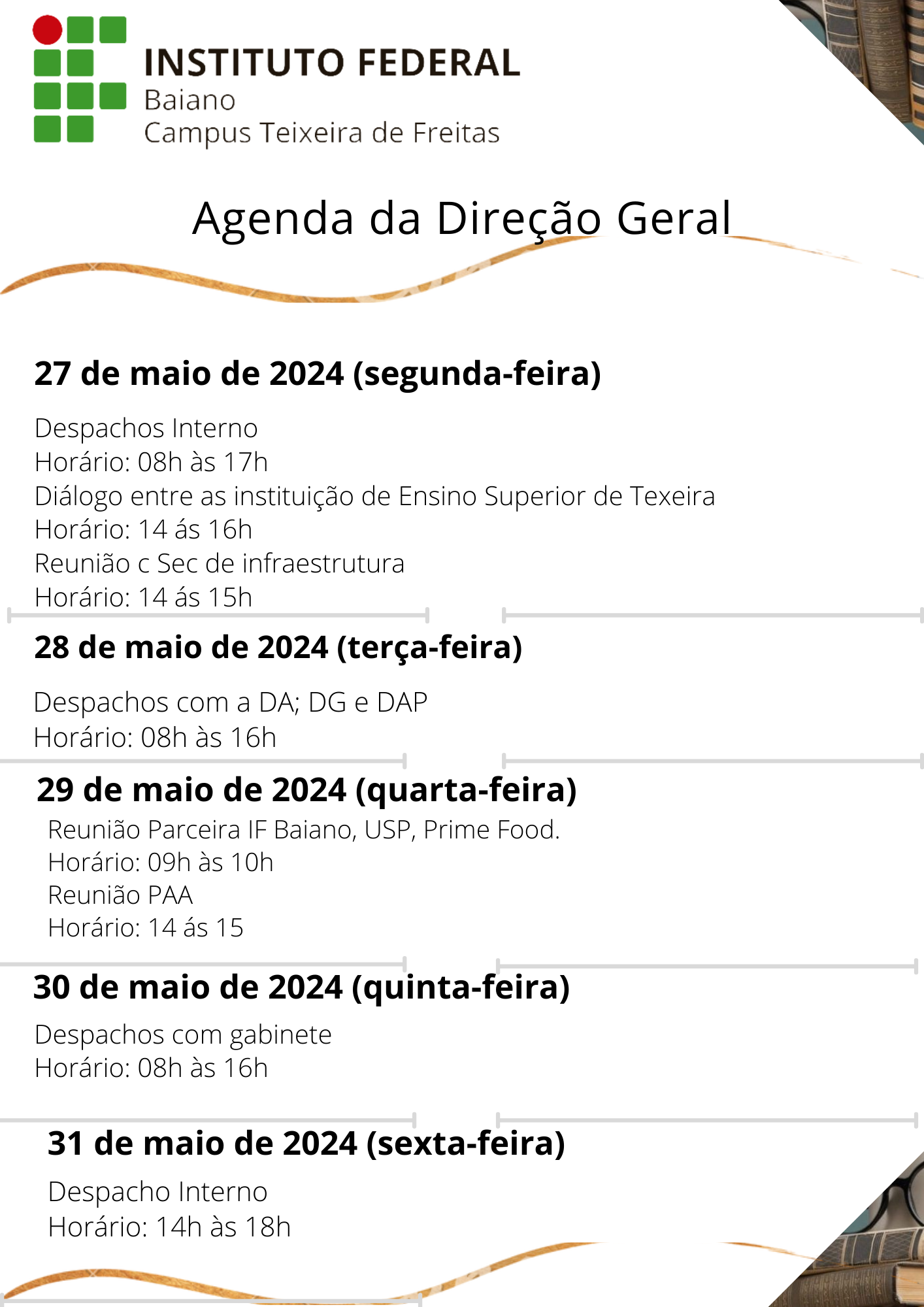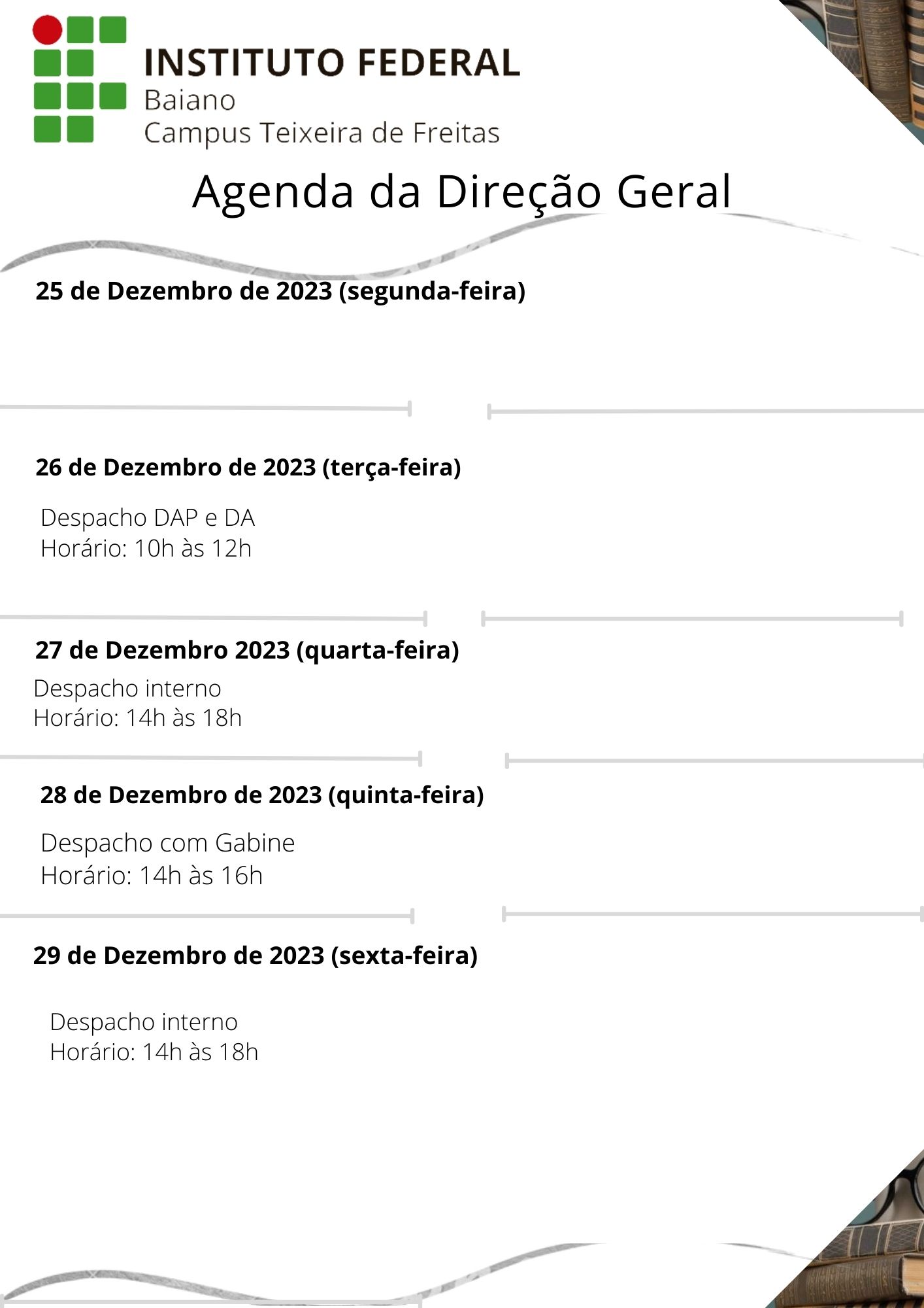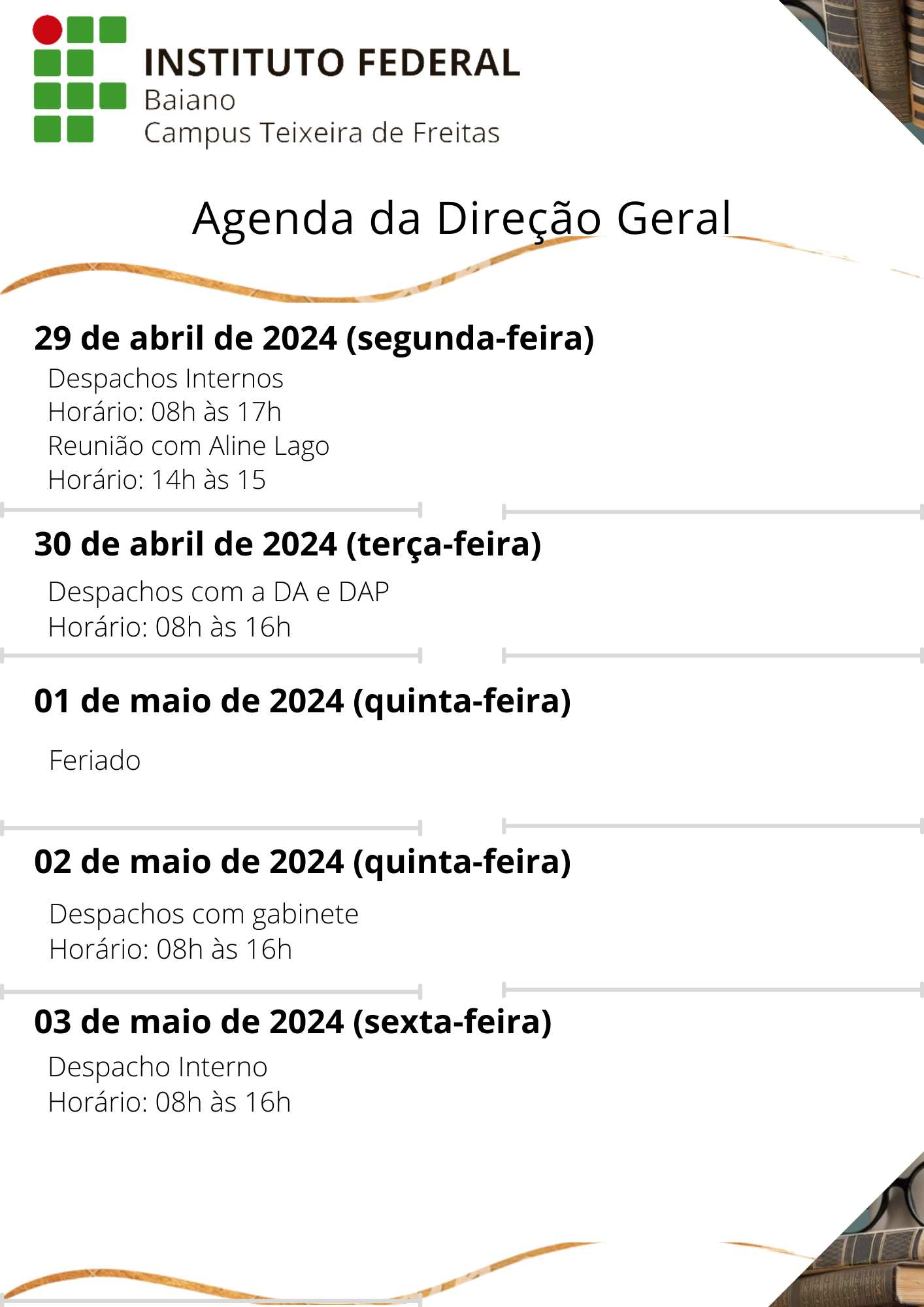Visualize a Agenda da Direção do Campus Teixeira de Freitas abaixo ou acesse este link.