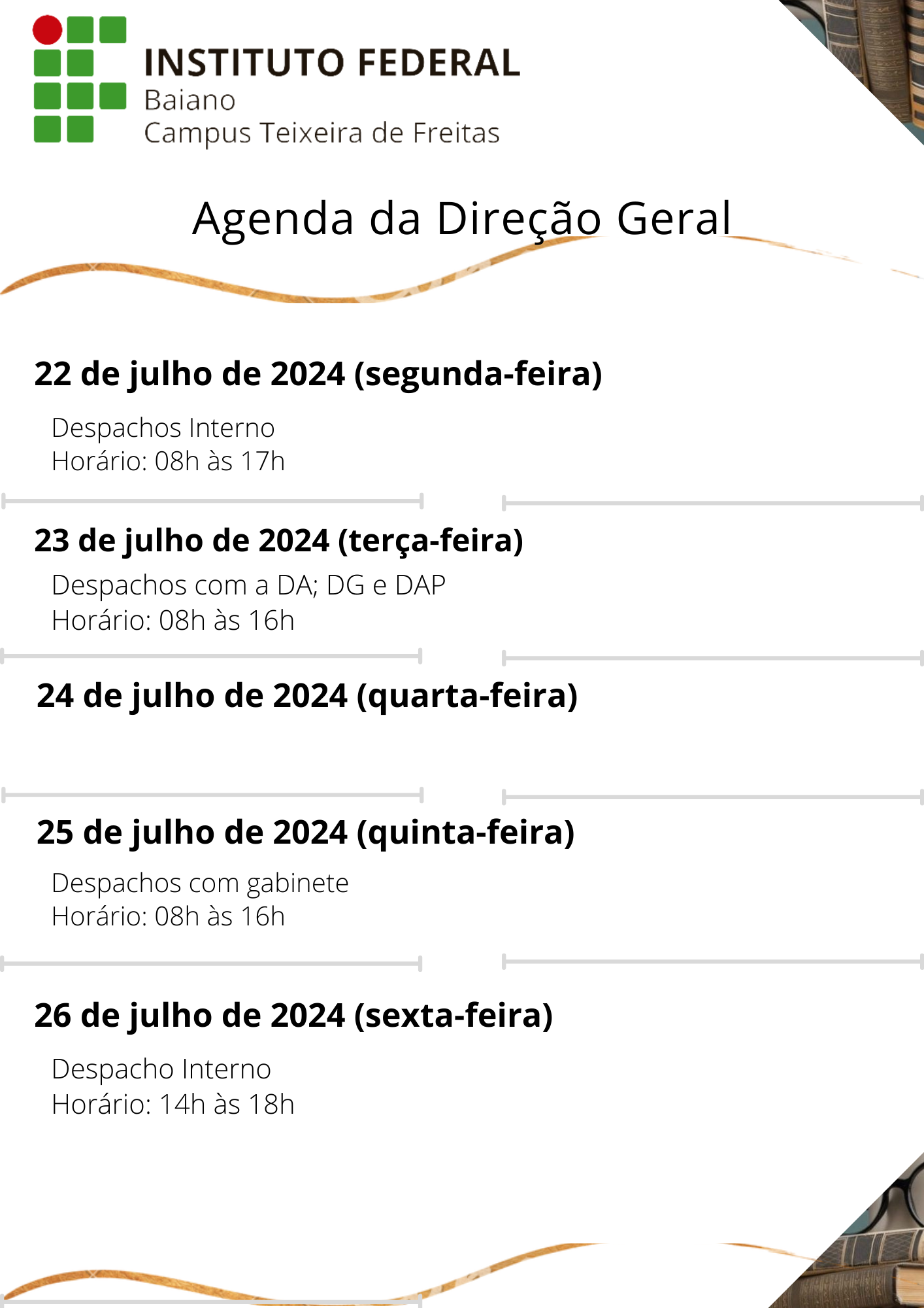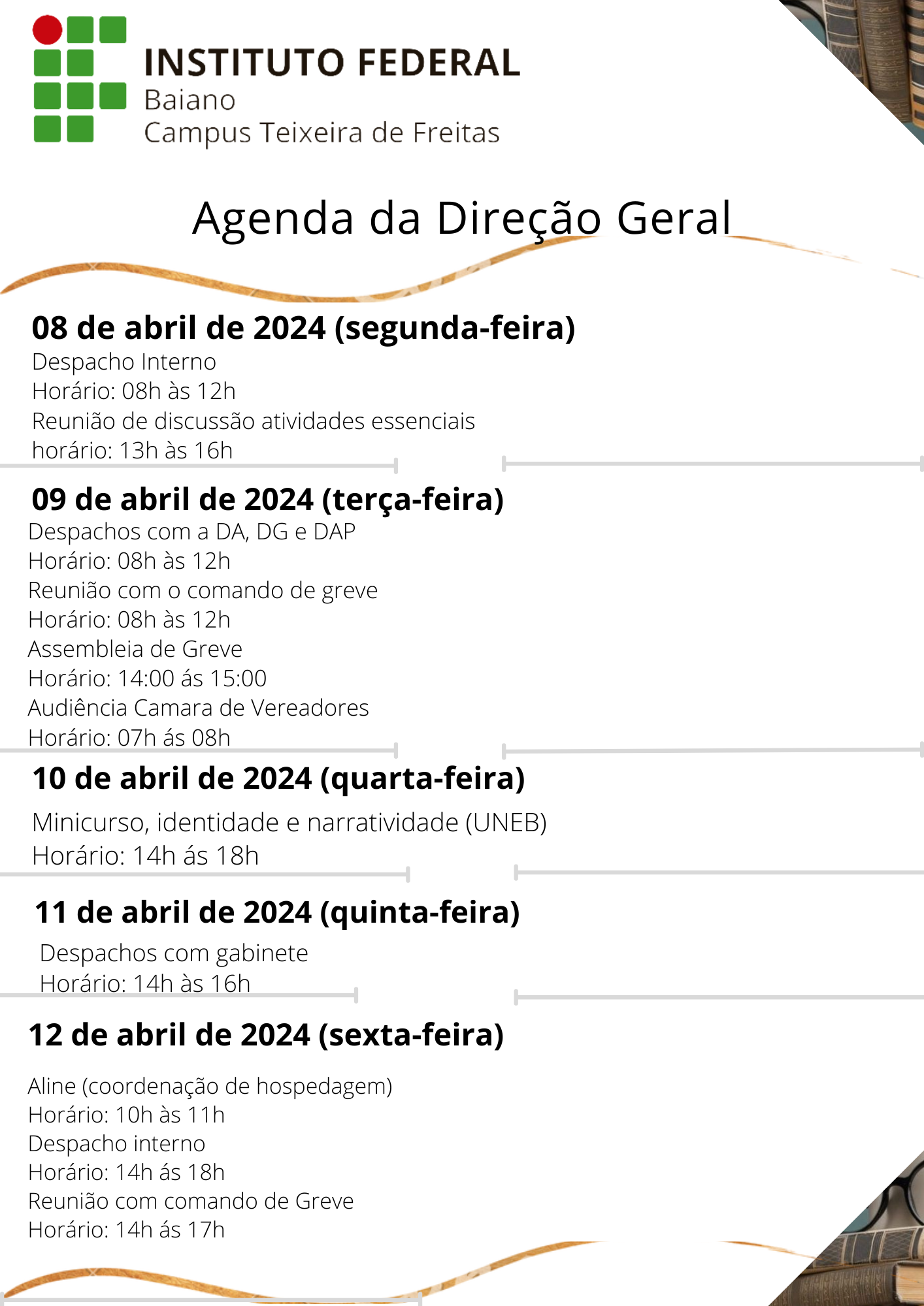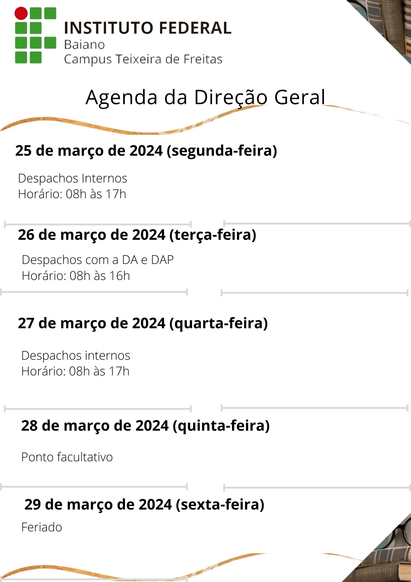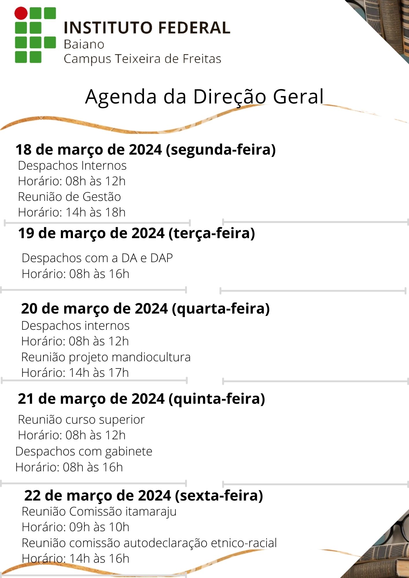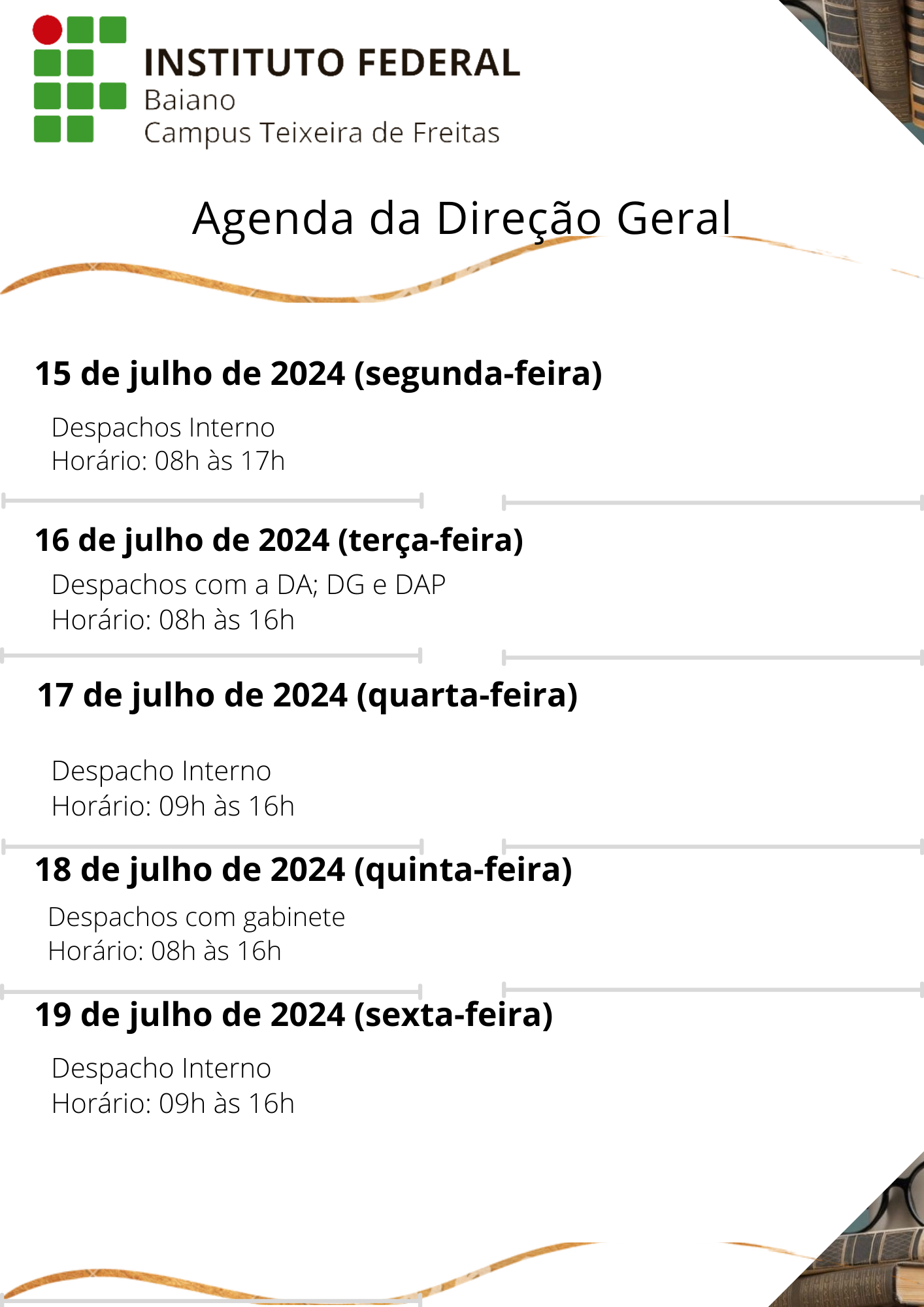 Visualize a Agenda da Direção do Campus Teixeira de Freitas abaixo ou acesse este link.