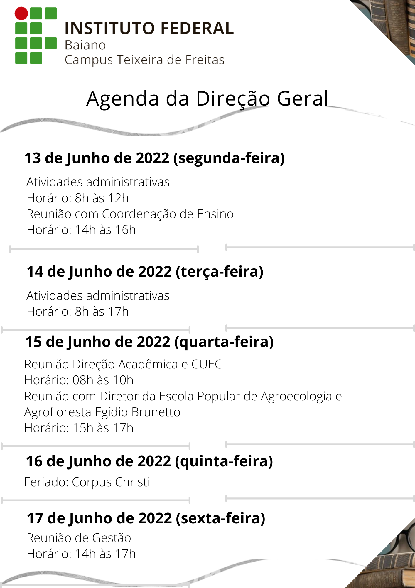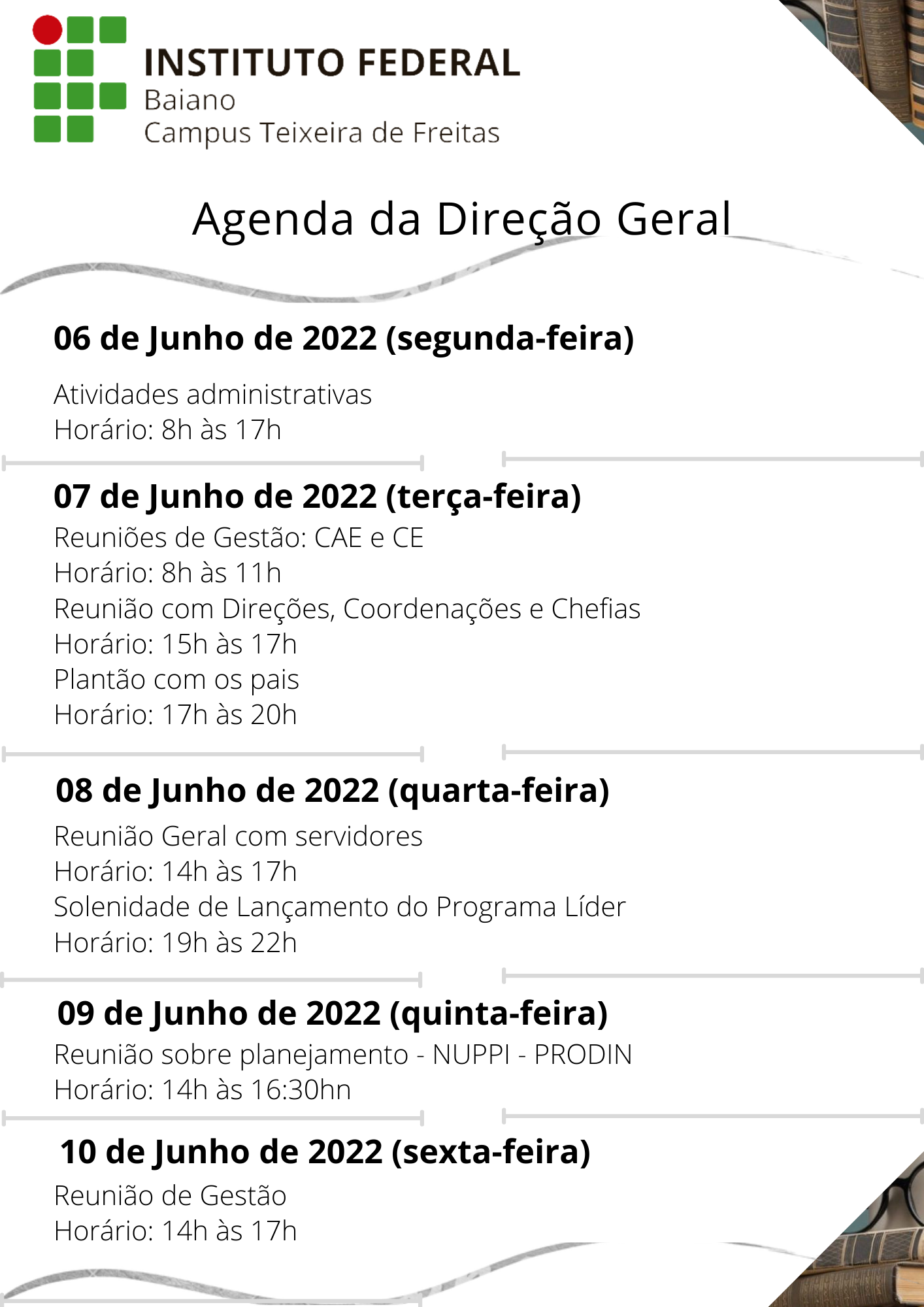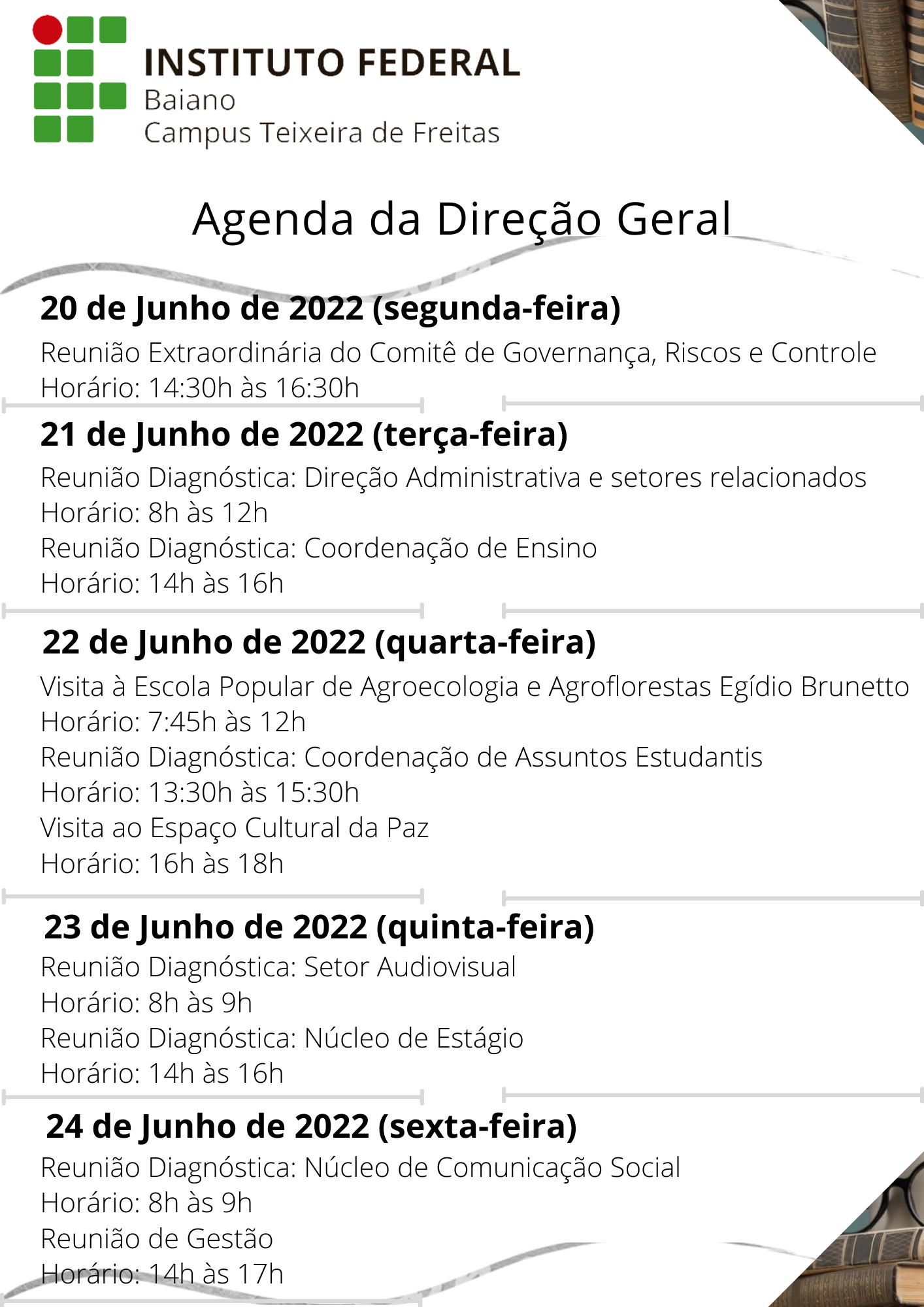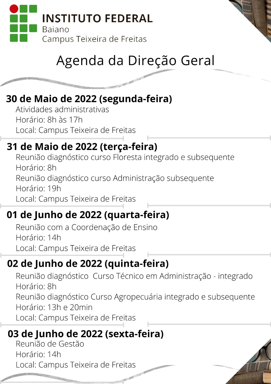 Agenda da Direção Geral – 06 a 10 de junho de 2022