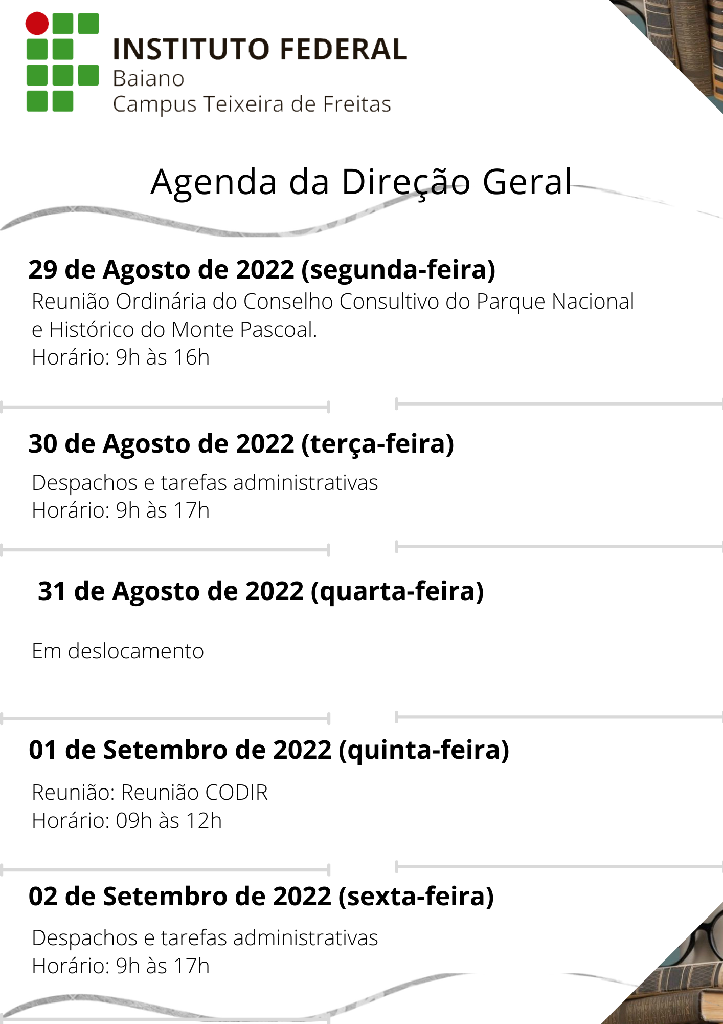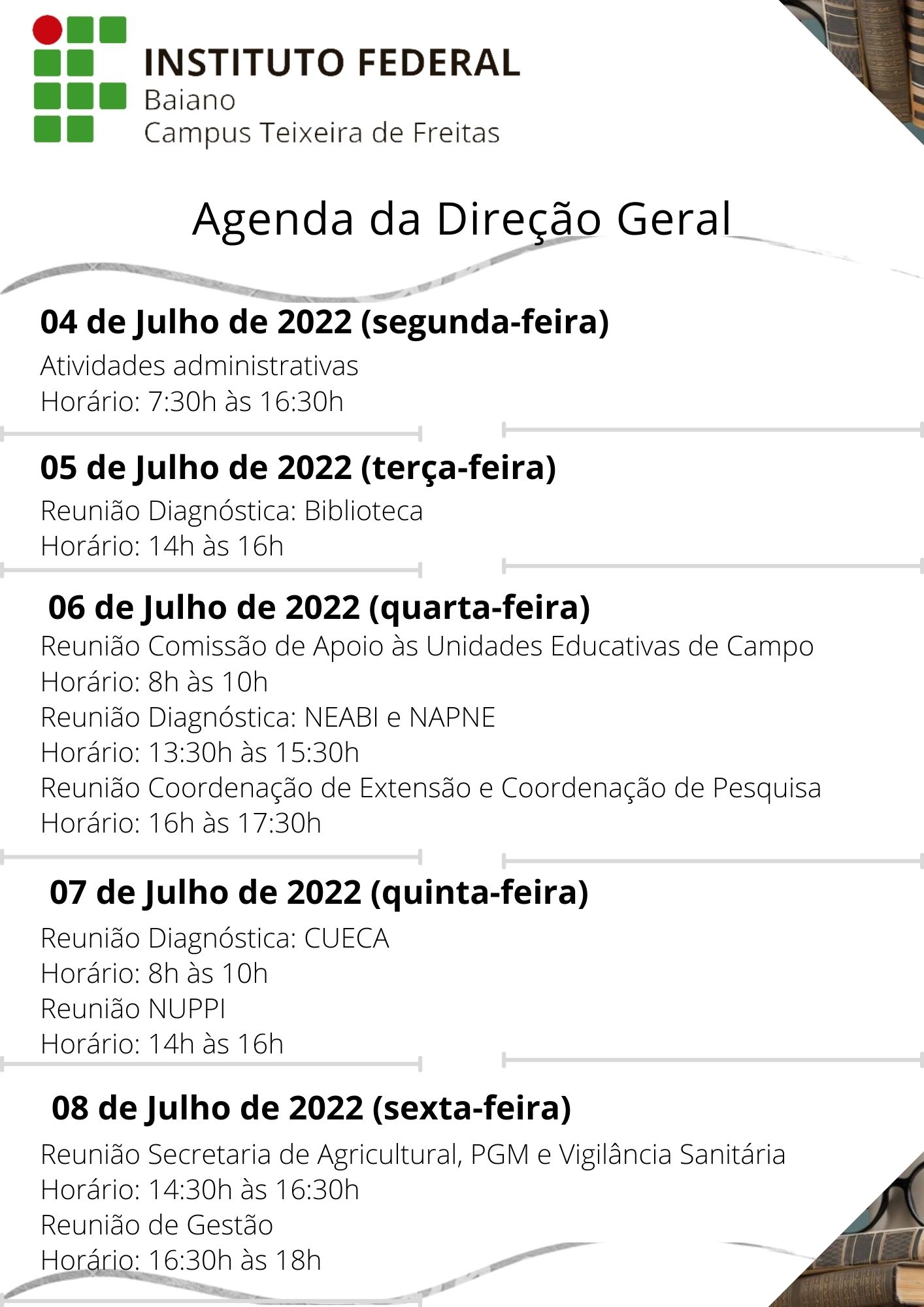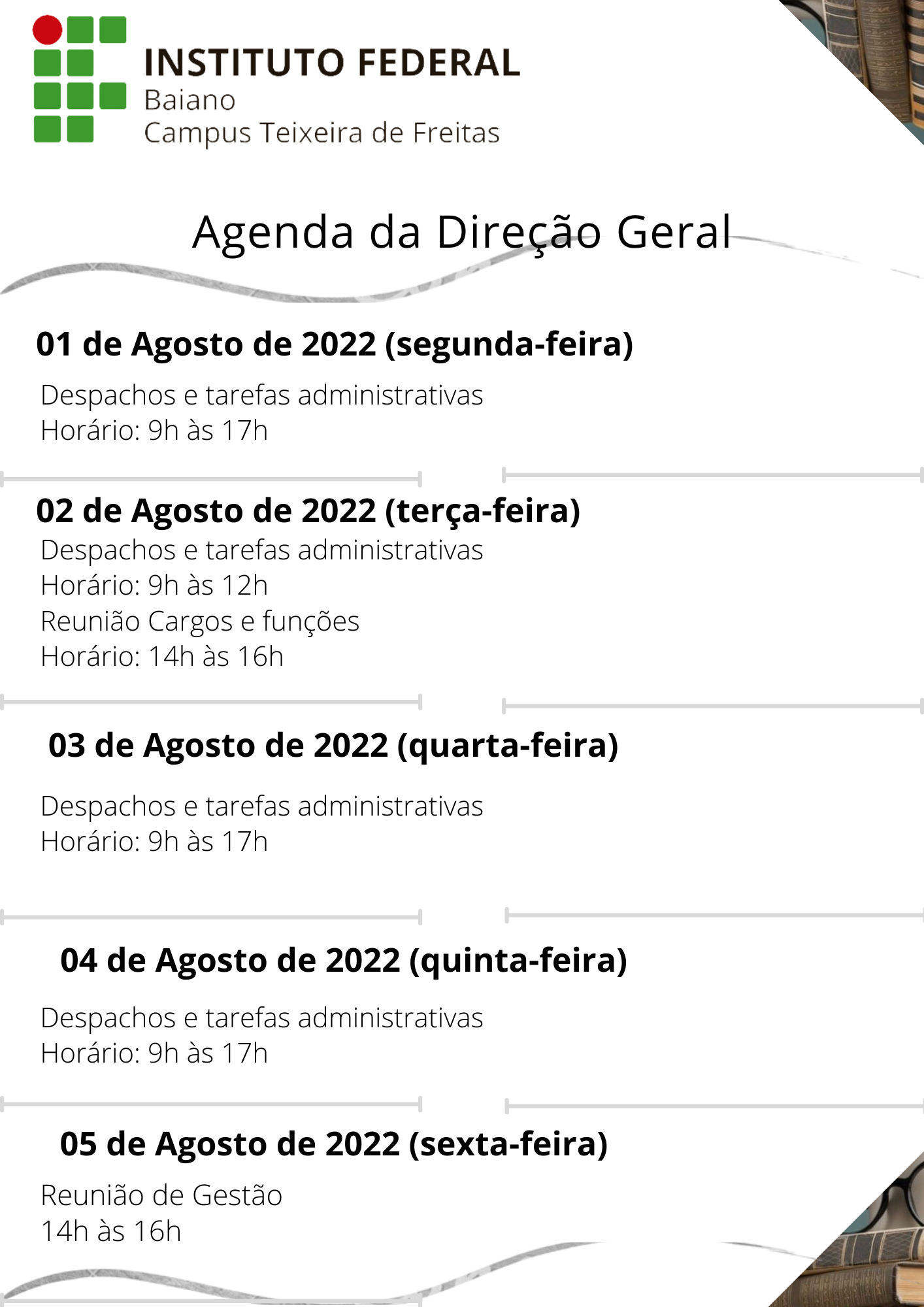 Agenda da Direção Geral – 01 a 05 de Agosto de 2022