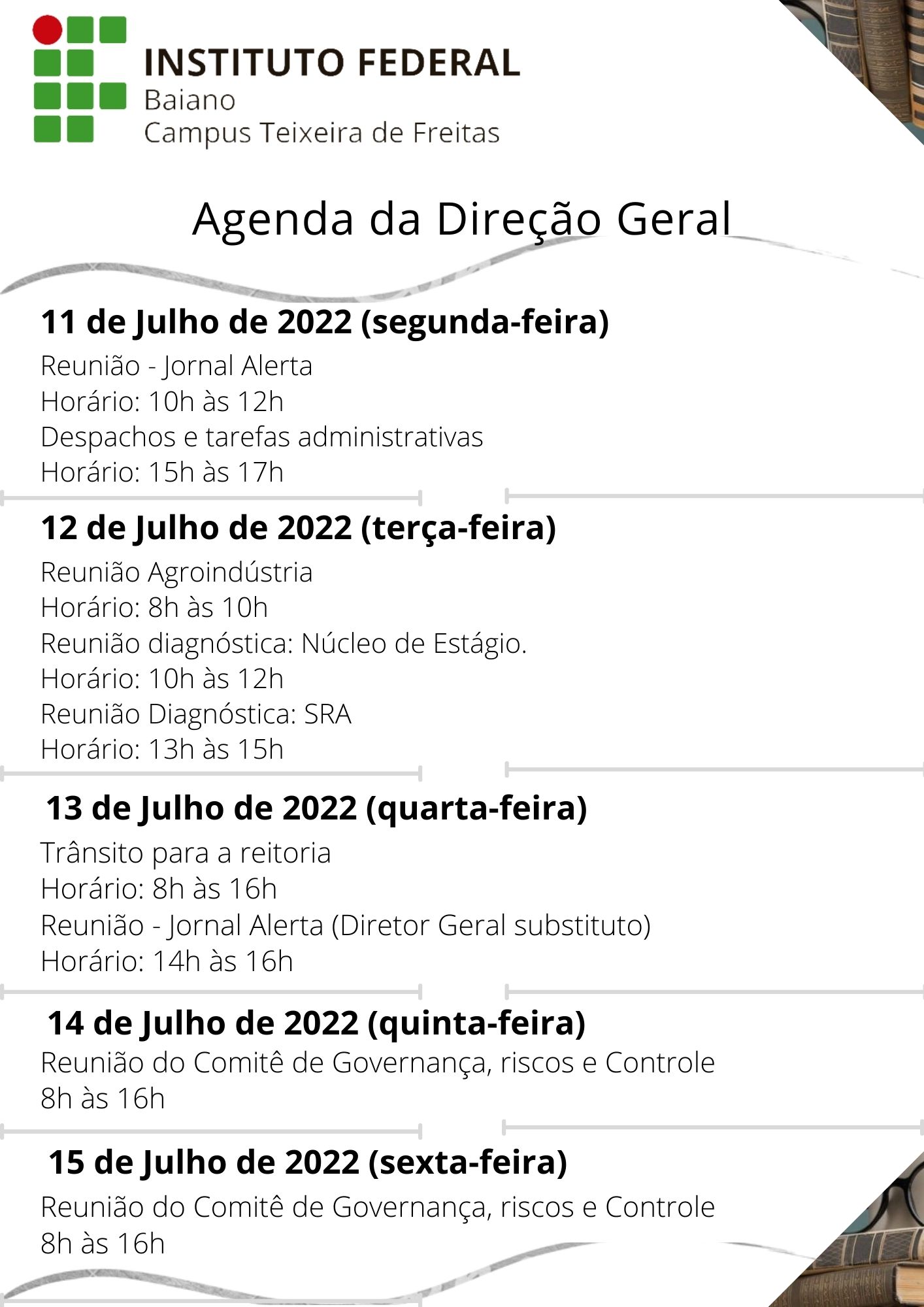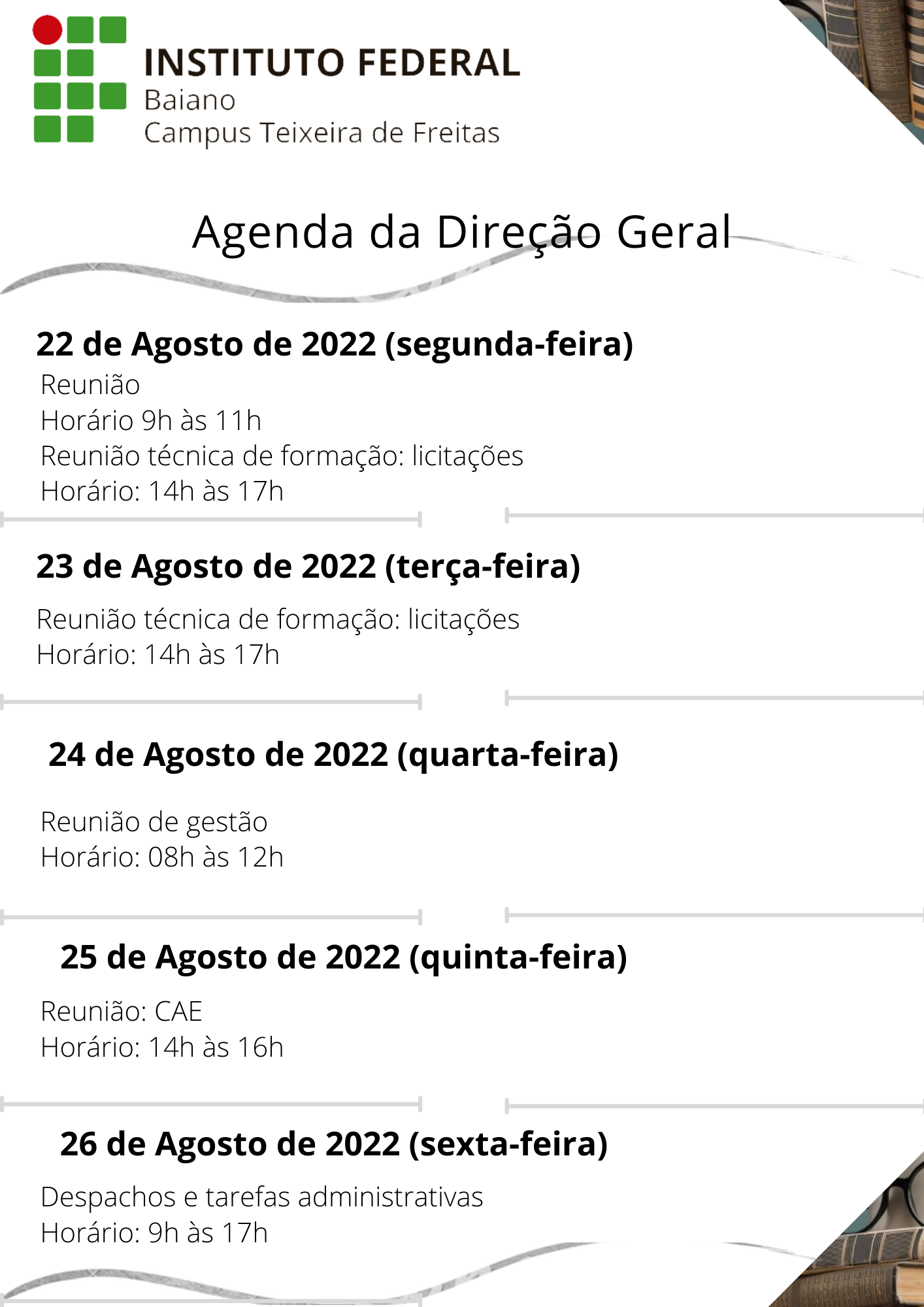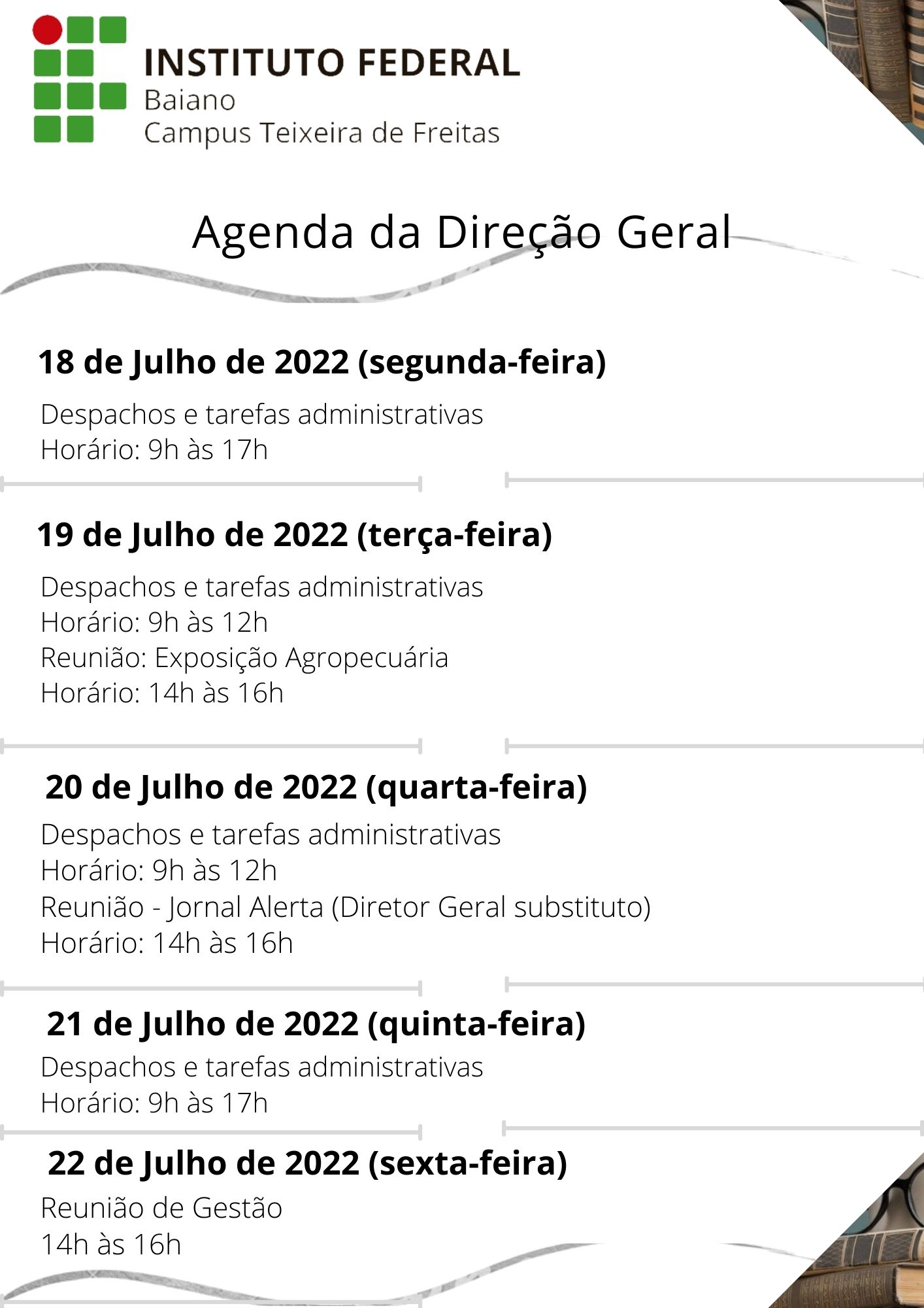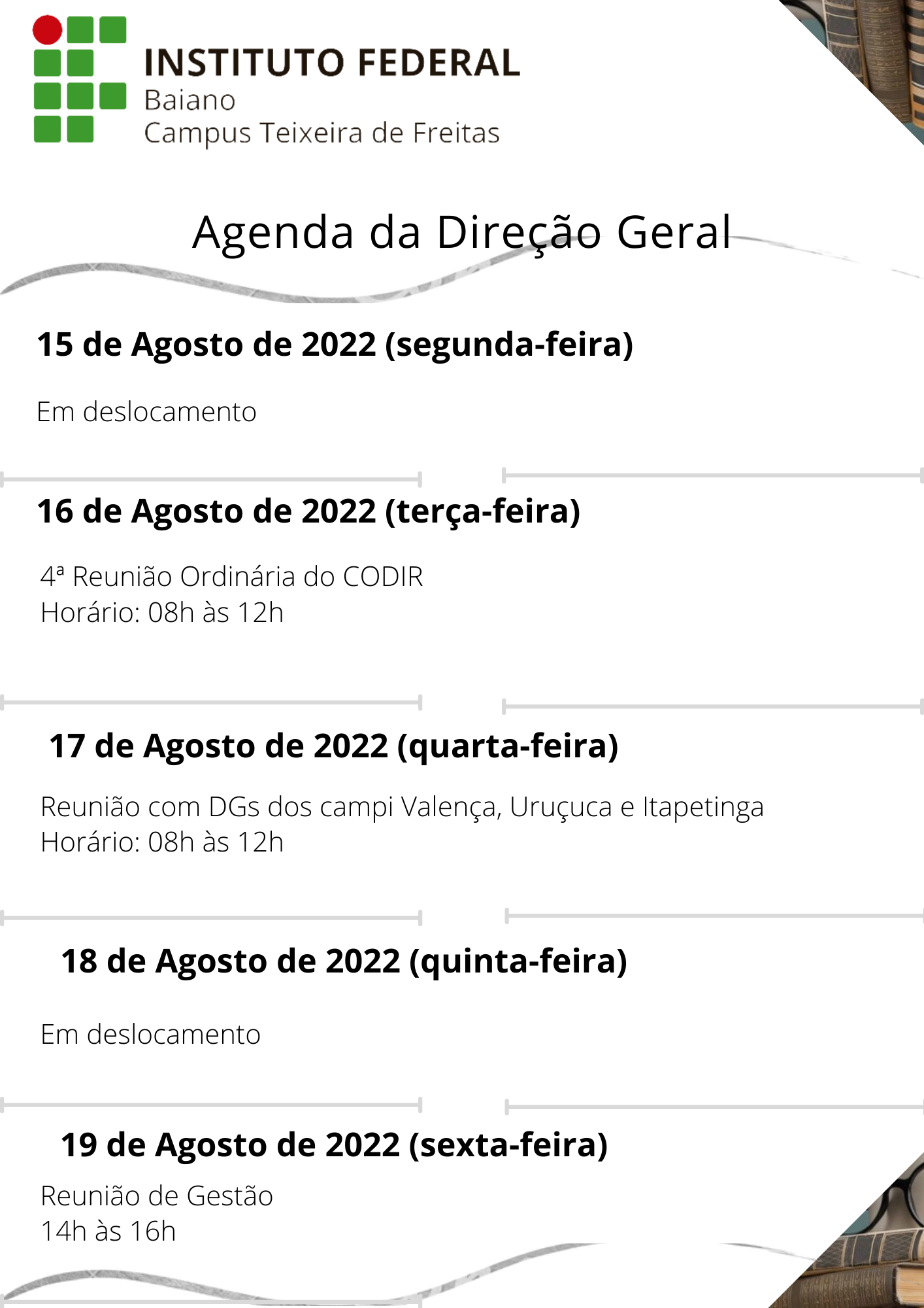 Agenda da Direção Geral – 01 a 05 de Agosto de 2022