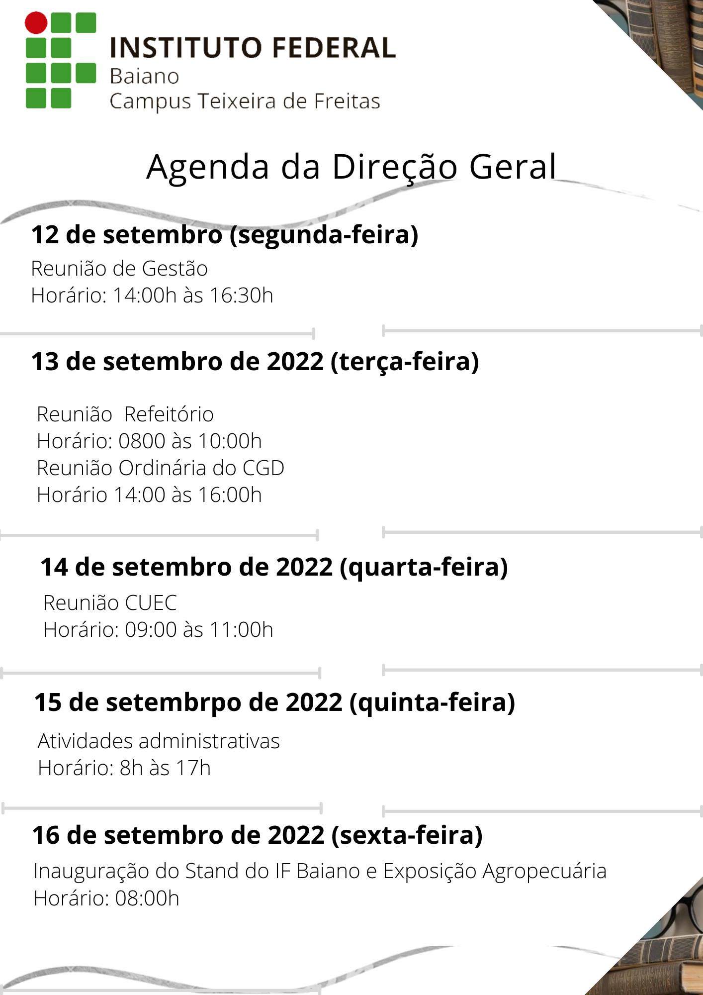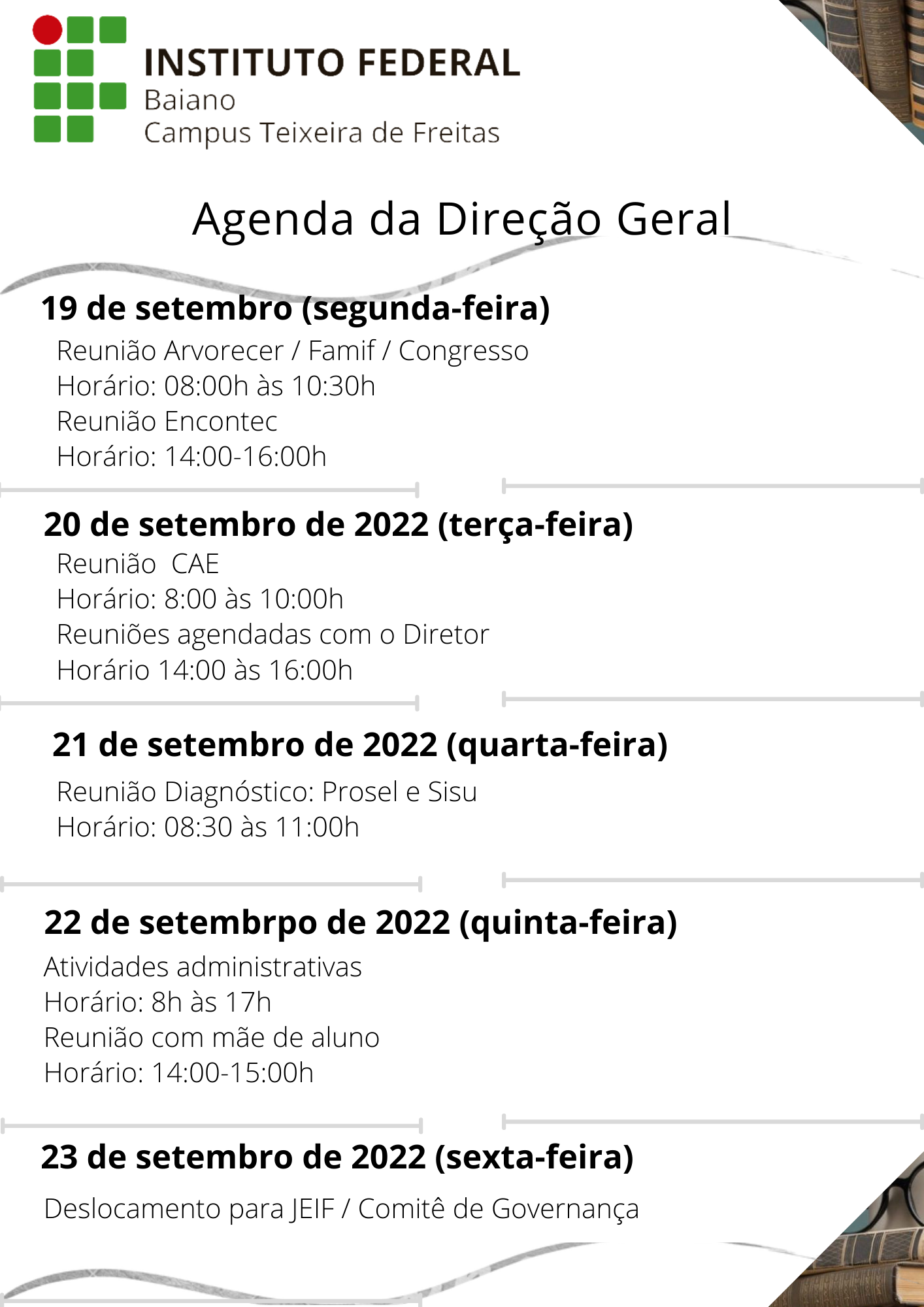 Agenda Direção Geral 19 a 23 de Setembro de 2022