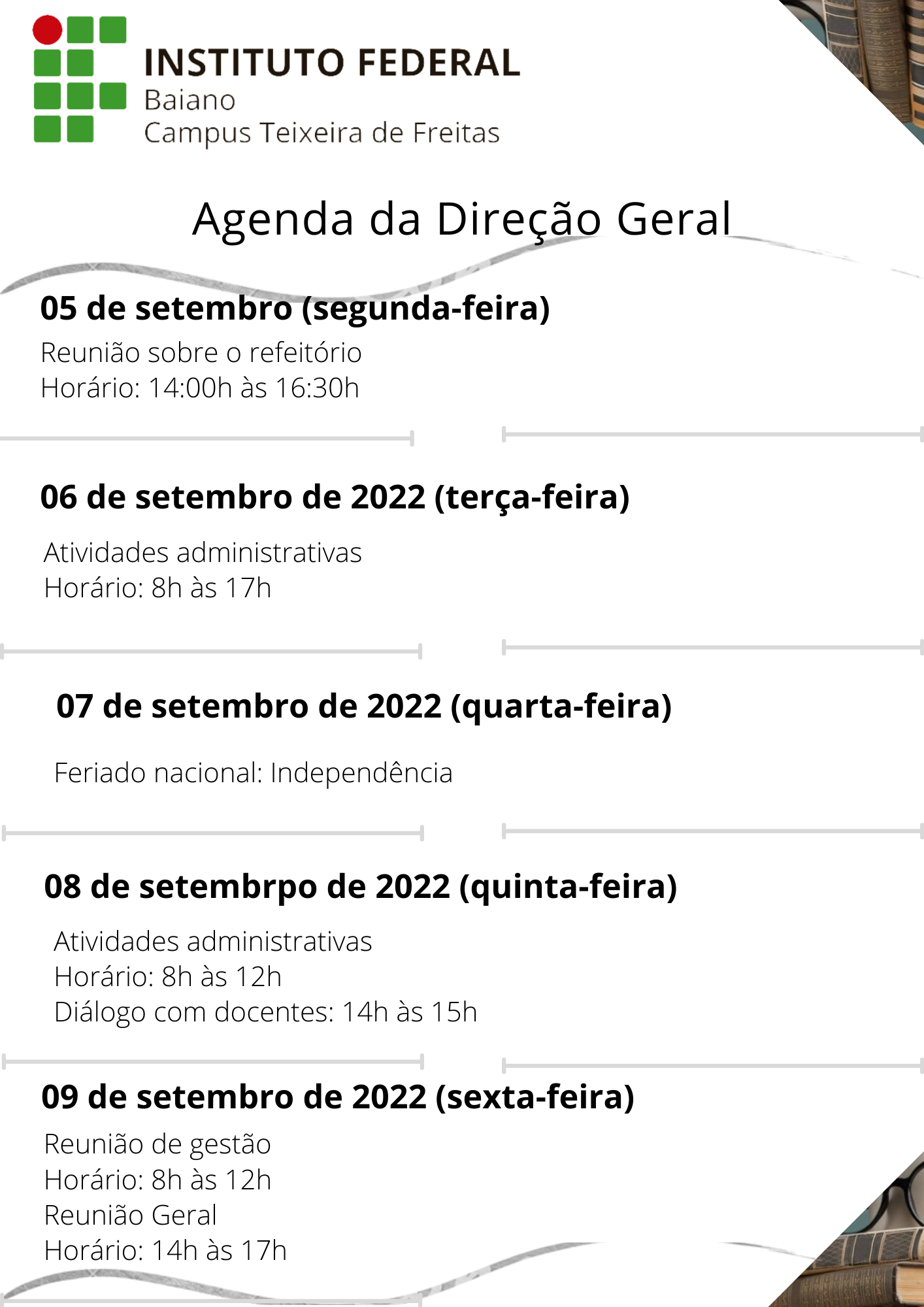Agenda da Direção Geral – 05 a 09 de Setembro de 2022