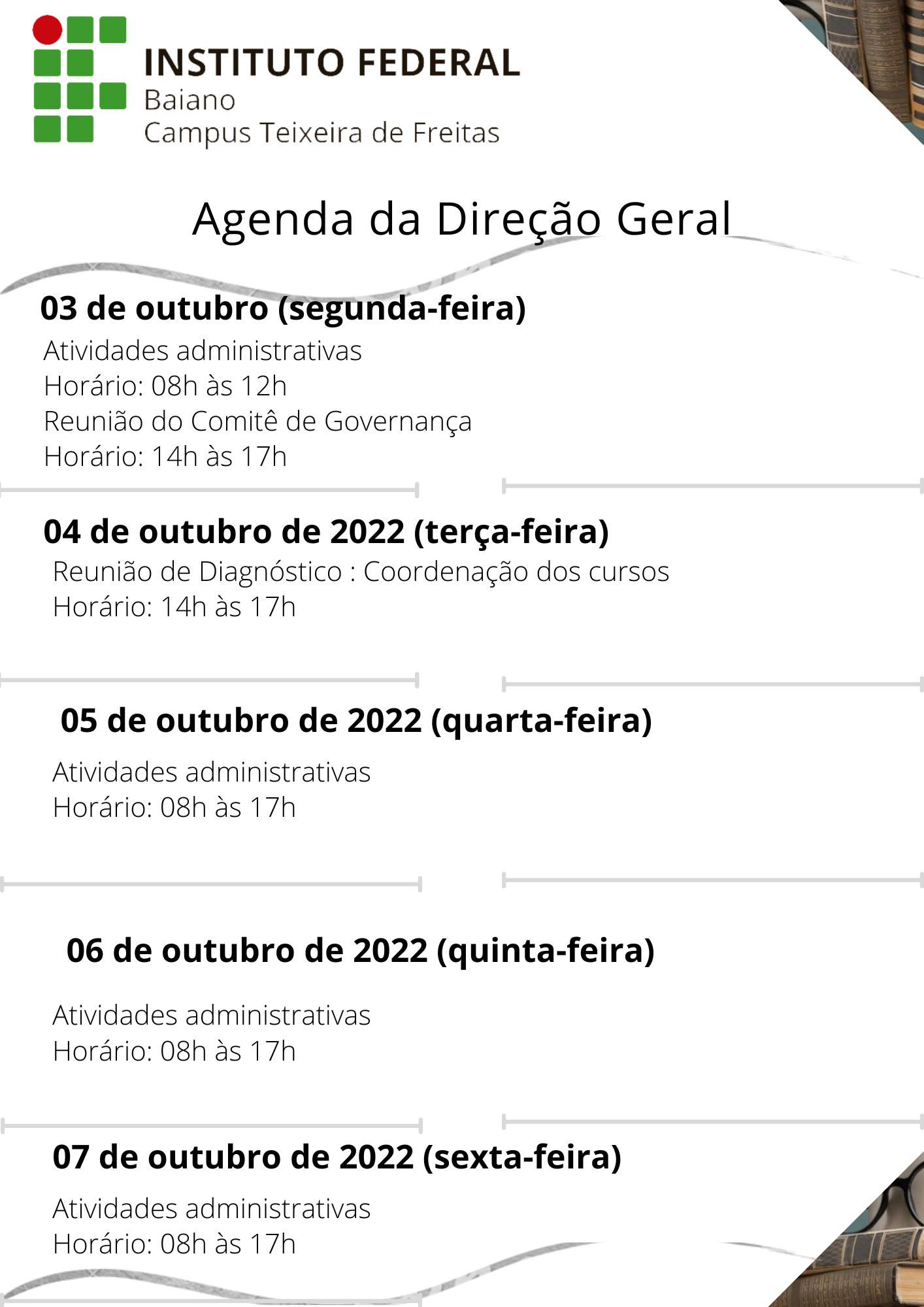 Agenda da Direção Geral 03 a 07 de Outubro de 2022