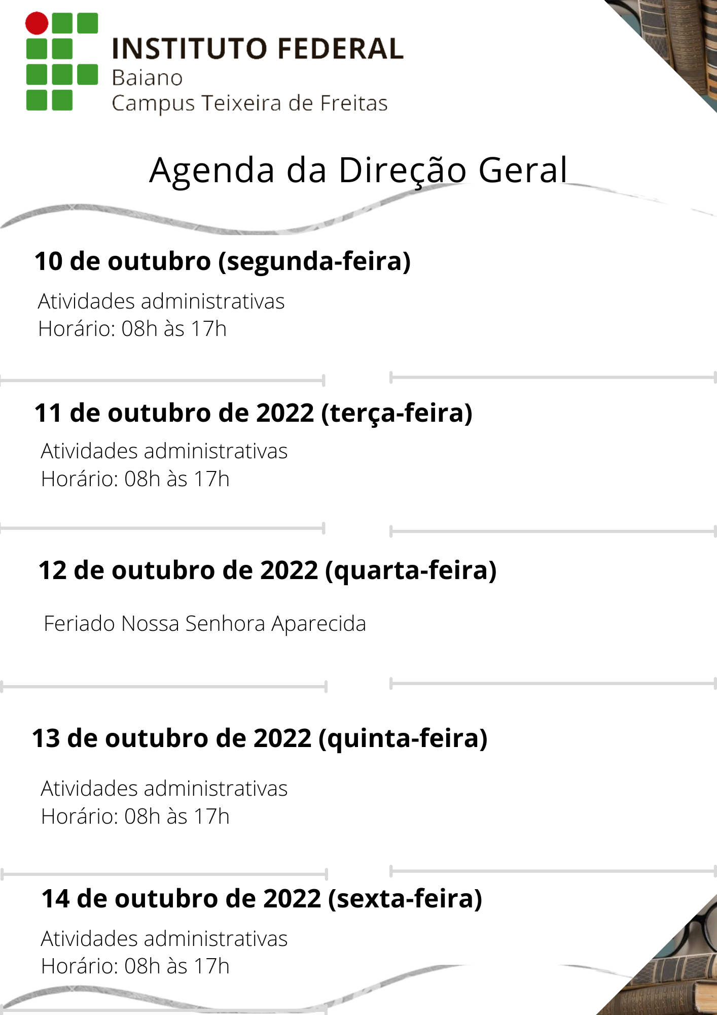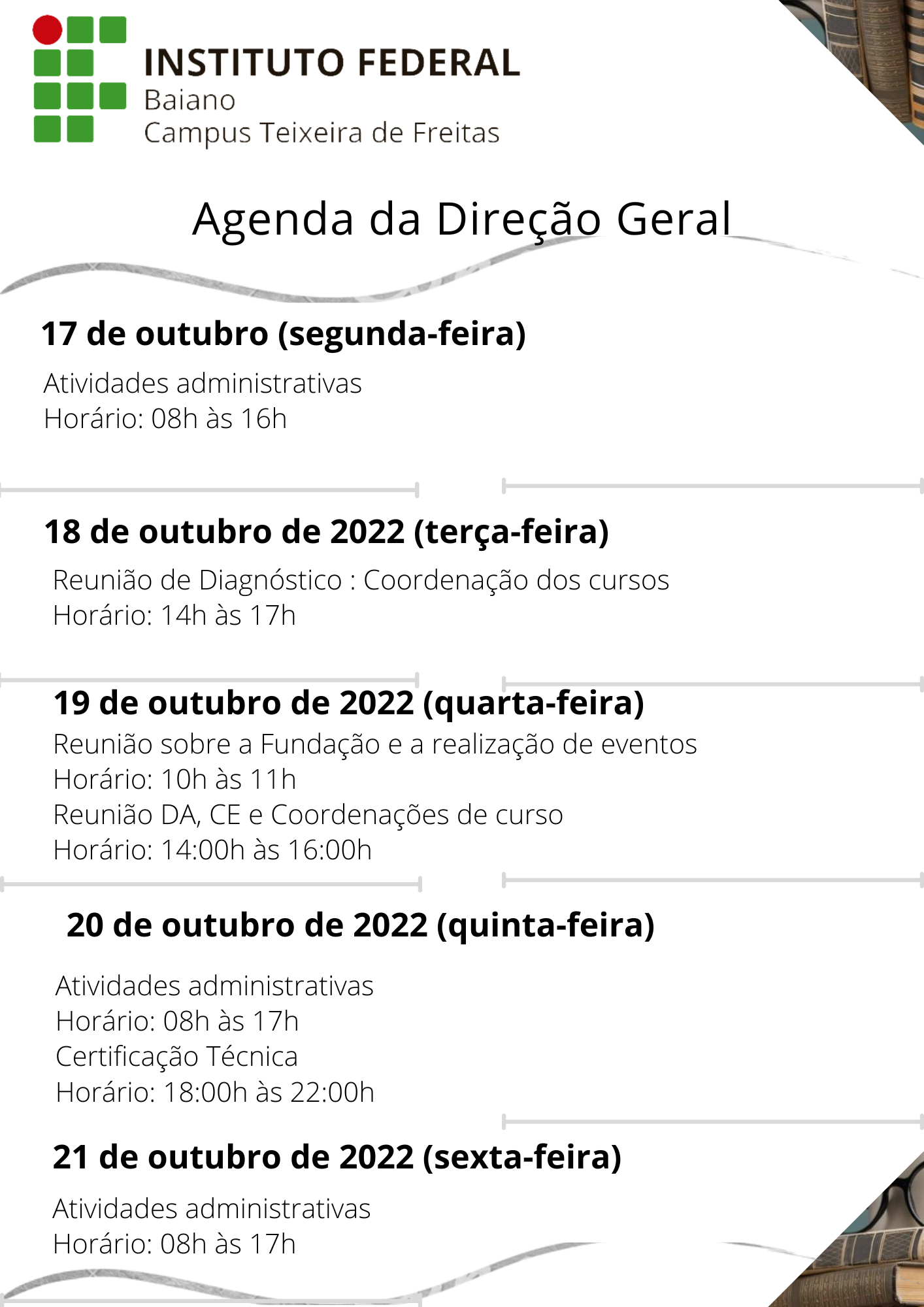 Agenda da Direção Geral 17 a 21 de Outubro de 2022