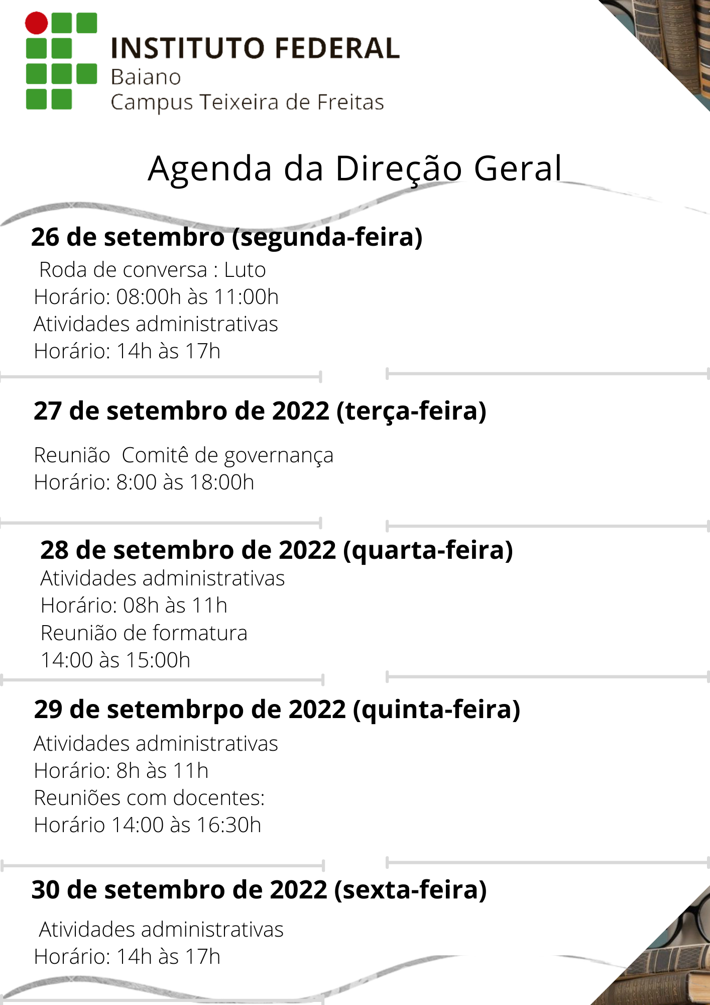 Agenda da Direção Geral 26-30 de Setembro de 2022