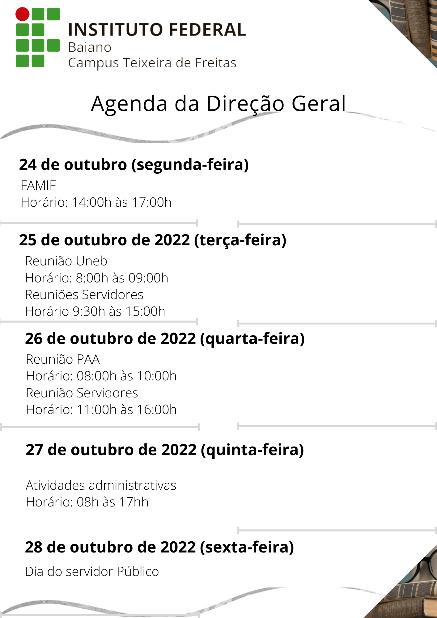 Agenda da Direção Geral 24 a 28 de Outubro de 2022