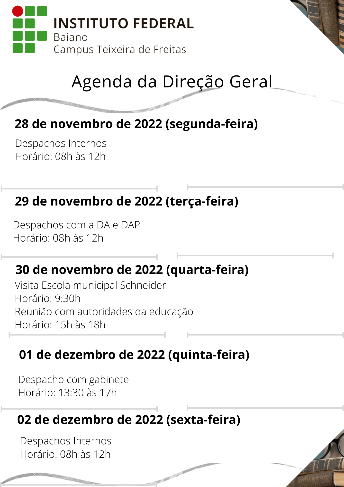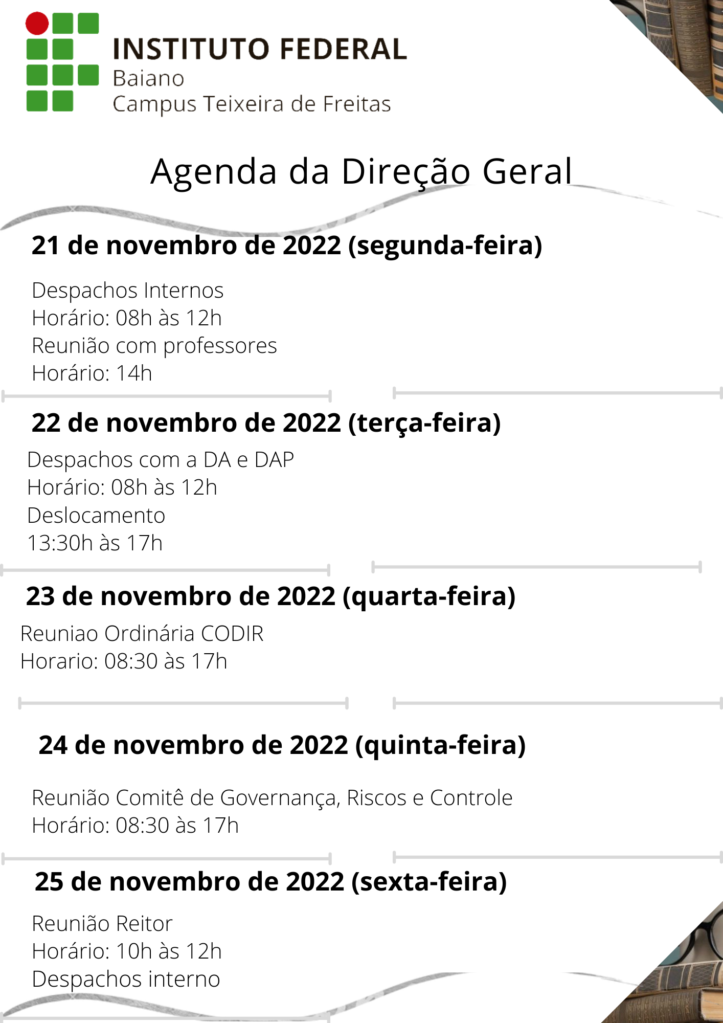 Agenda da Direção Geral de 21 a 25 de Novembro de 2022