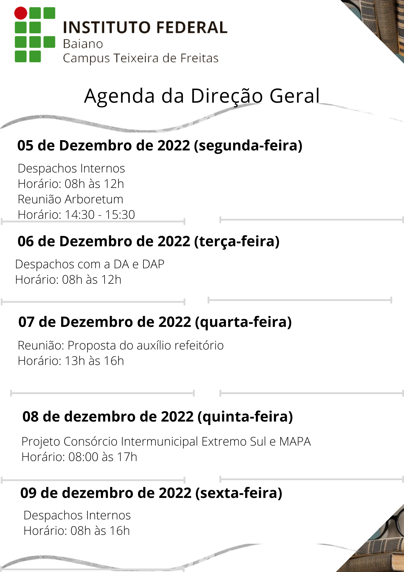 Agenda da Direção Geral de 05 a 09 de Dezembro de 2022