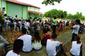 A apresentação da camerata Paz e Bem, no dia 14 março, marcou o encerramento da primeira etapa do Projeto Acordes. Segundo a professora de Artes do IF Baiano – campus Teixeira de Freitas, Flora Ruiz, que coordenou as atividades, o Acordes é um projeto de extensão Pibic Jr. que realiza oficinas musicais como meio de socialização e aprendizagem. A monitoria do projeto foi realizada pelos alunos Alef Santos e Yago Tigre, ambos do curso Técnico em Agropecuária Integrado ao Ensino Médio. As oficinas foram ministradas de segunda a quinta. Segunda e quarta, flauta doce e canto, e terça e quinta, violão, violino e flauta transversal.