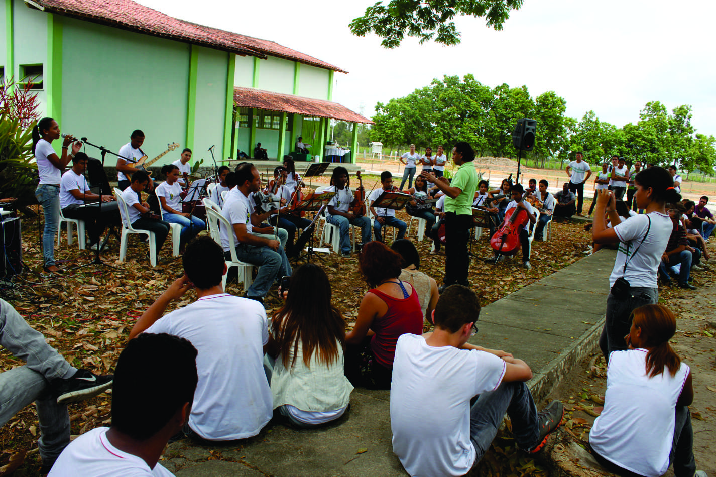 A camerata Paz e Bem tem a regência do maestro Orley da Silva. Estudantes e servidores reuniram-se em frente ao refeitório para apreciar as apresentações musicais. O Educandário Paz e Bem, que coordena a camerata, é uma entidade filantrópica administrada pela Congregação das Irmãs Franciscanas do Senhor. Flora disse ainda que a segunda etapa do Acordes será coordenada pela professora de Língua Portuguesa, Laikui Cardoso, e fará parte da Pró-Extensão. O projeto será realizado até outubro e terá a monitoria das alunas Mariana Rocha (Técnico em Agropecuária Integrado ao Ensino Médio) e Scarllett Almeida (Técnico em Florestas Integrado), além da monitoria voluntária da aluna Camila Melgaço (Técnico em Florestas). “Nesta segunda etapa focaremos mais a interação com a sociedade”, destacou a professora de Artes.
