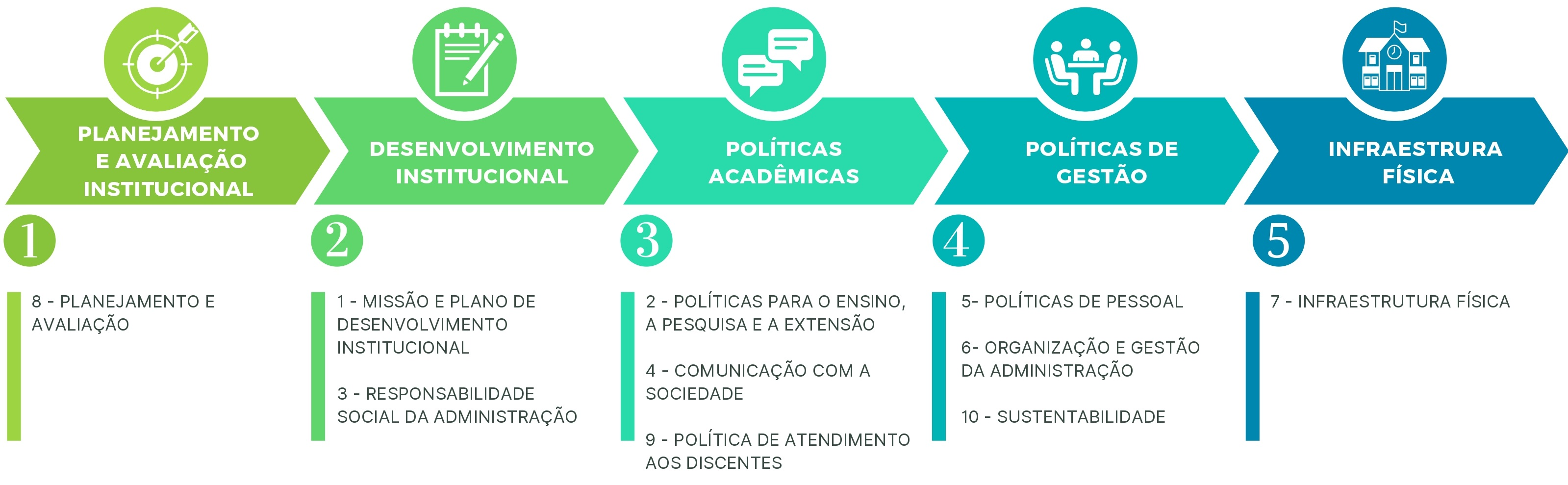 A comissão avalia aspectos estruturados em cinco eixos e dez dimensões, por meio de questionários, rodas de conversa, entrevistas e visitas in loco, destinados a comunidade acadêmica e a comunidade local: