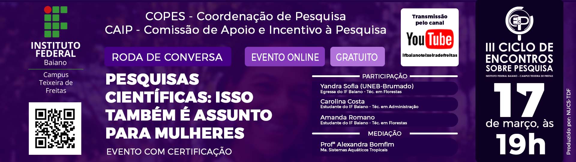 Informação a respeito dos eventos realizados no IF Baiano Campus Teixeira de Freitas. A participação em alguns eventos requer inscrição prévia.