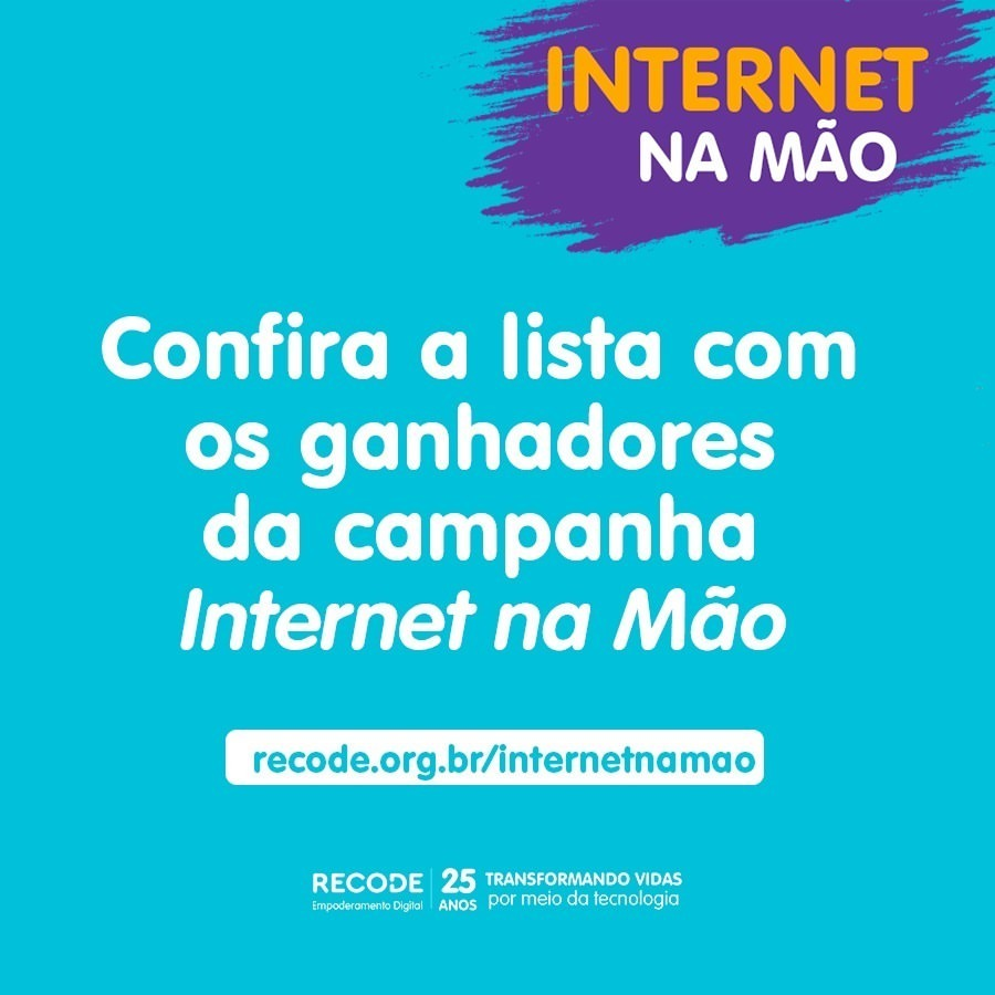 O Desafio Recode solicitou que os times criassem uma ideia de ação virtual para solucionar um problema da comunidade. A Campanha Relâmpago “Internet na Mão” busca incentivar a formação de jovens em cursos oferecidos pela Recode, em sua plataforma de aprendizagem. Os primeiros 500 jovens que concluíram 40 horas de curso receberam como incentivo R$ 15,00 em créditos de internet no celular, para que possam usar como desejarem, inclusive se capacitarem ainda mais nos cursos de tecnologia.