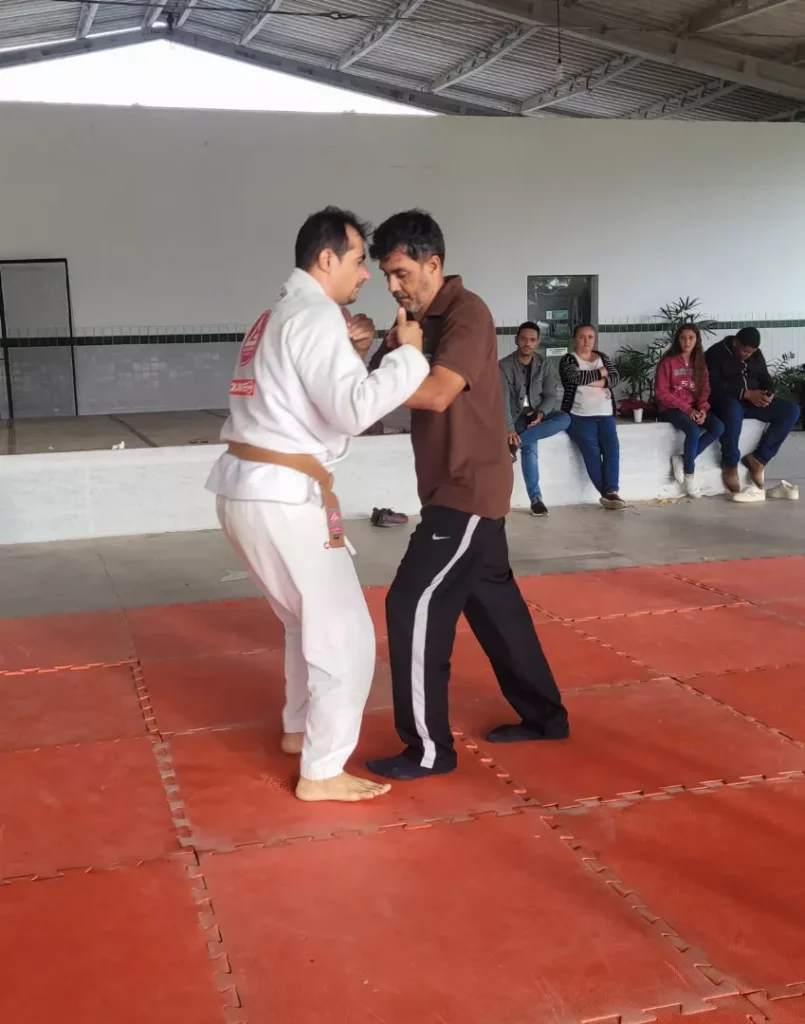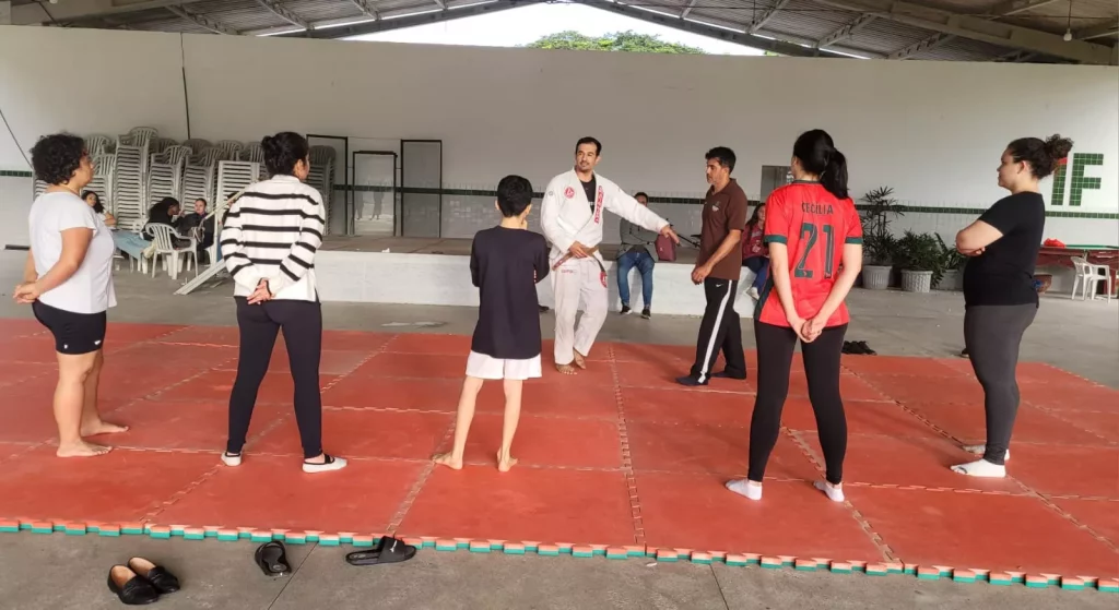 A convite do Núcleo de Cultura, Esporte e Lazer do IF Baiano – Campus Teixeira de Freitas, o professor Gutto Monzelle, faixa marrom de Jiu-jitsu da Gracie Barra, ministrou uma aula demonstrativa de defesa pessoal voltada aos servidores da instituição.