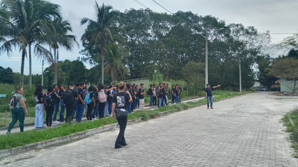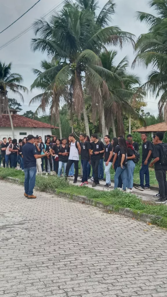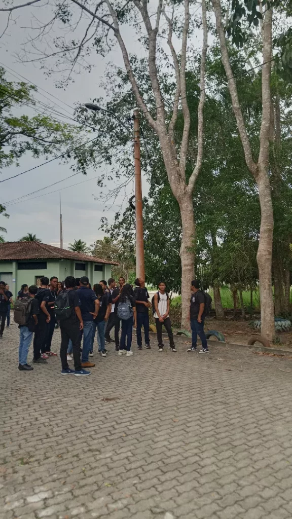 Em seguida, os alunos participaram de um tour guiado pelo campus, visitando espaços como os setores de meio ambiente, laboratórios, salas de aula, refeitório, Coordenação de Assuntos Estudantis, áreas administrativas e locais destinados à convivência e prática de esportes.