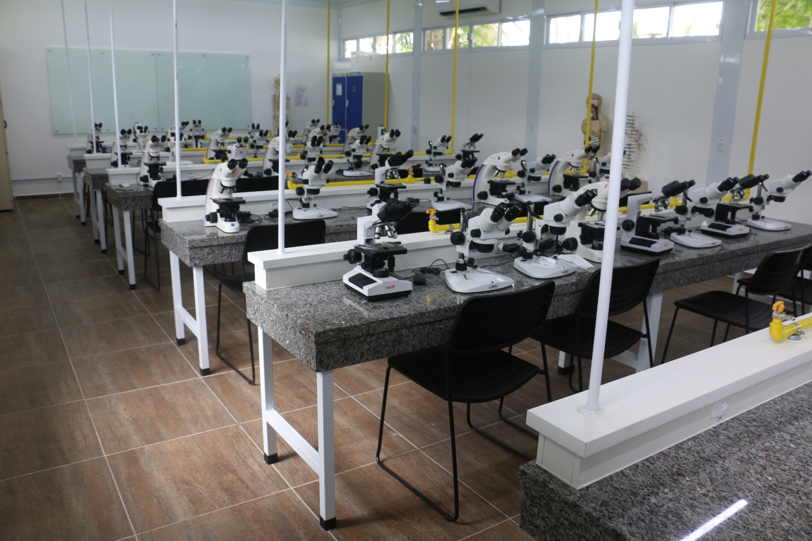 O laboratório de Ciências Biológicas I é um ambiente projetado para estimular o aprendizado e a curiosidade dos estudantes. Equipado com microscópios e estereomicroscópios, o laboratório oferece a oportunidade de explorar estruturas, muitas vezes invisível aos olhos humanos. Durante as aulas práticas, os alunos podem observar células, tecidos, organismos microscópicos ou pequenos e até mesmo microestruturas, permitindo que compreendam melhor a complexidade e a beleza do mundo em escala diminuta. Através de diferentes componentes curriculares, os estudantes aprendem técnicas de preparação de amostras, manuseio correto dos equipamentos e interpretação dos resultados, desenvolvendo habilidades essenciais para o aprendizado e a pesquisa.