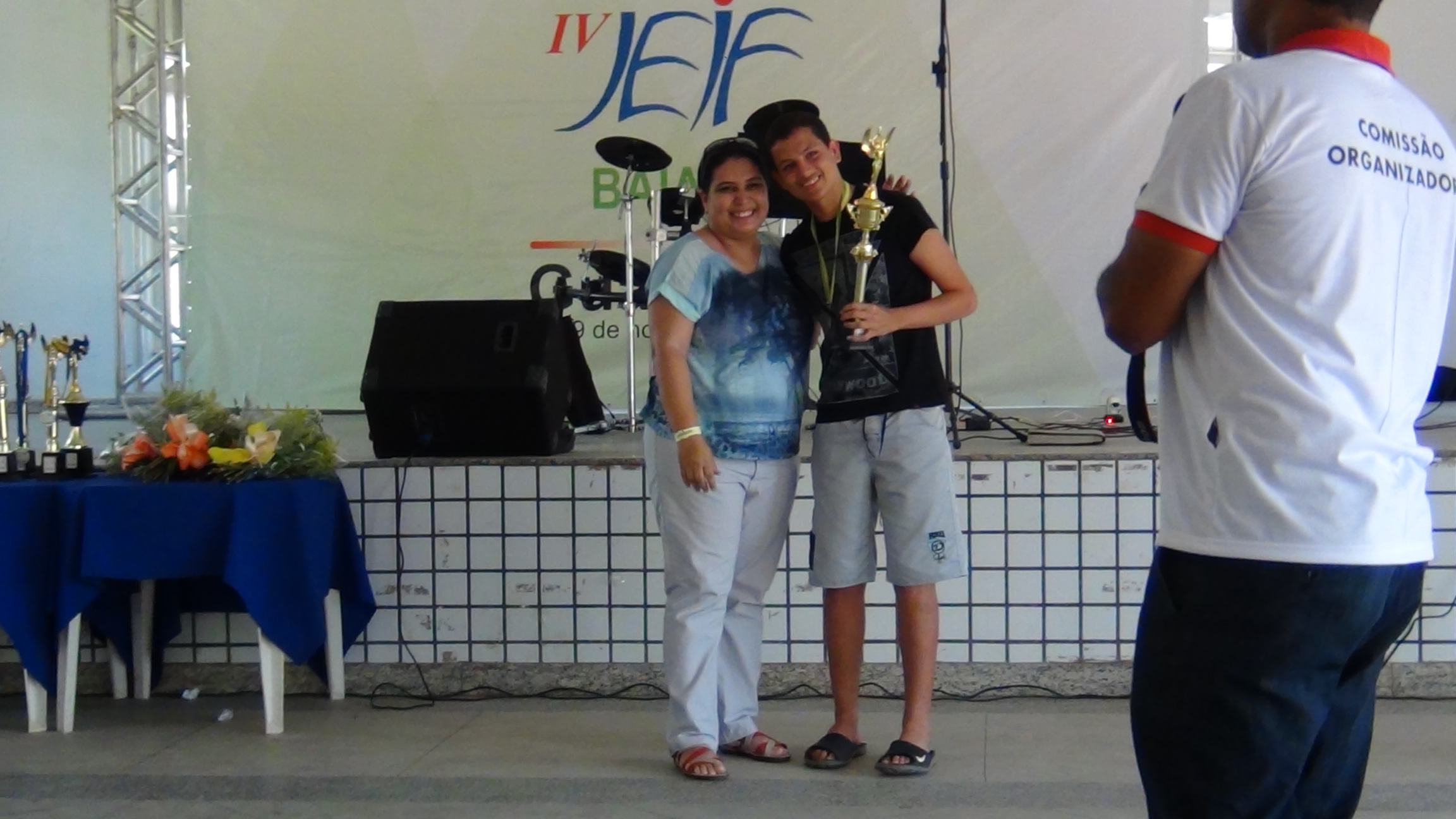 A aluna Danielli Rey e o estudante Marcos Felipe Hermogenes Antunes, do campus Teixeira de Freitas, receberam medalhas de ouro, nas competições de tênis de mesa, nos Jogos Internos do Instituto, que aconteceram entre os dias 4 e 9 de novembro, em Guanambi. Os alunos competiram nas modalidades de futsal, futebol, vôlei e handebol.
