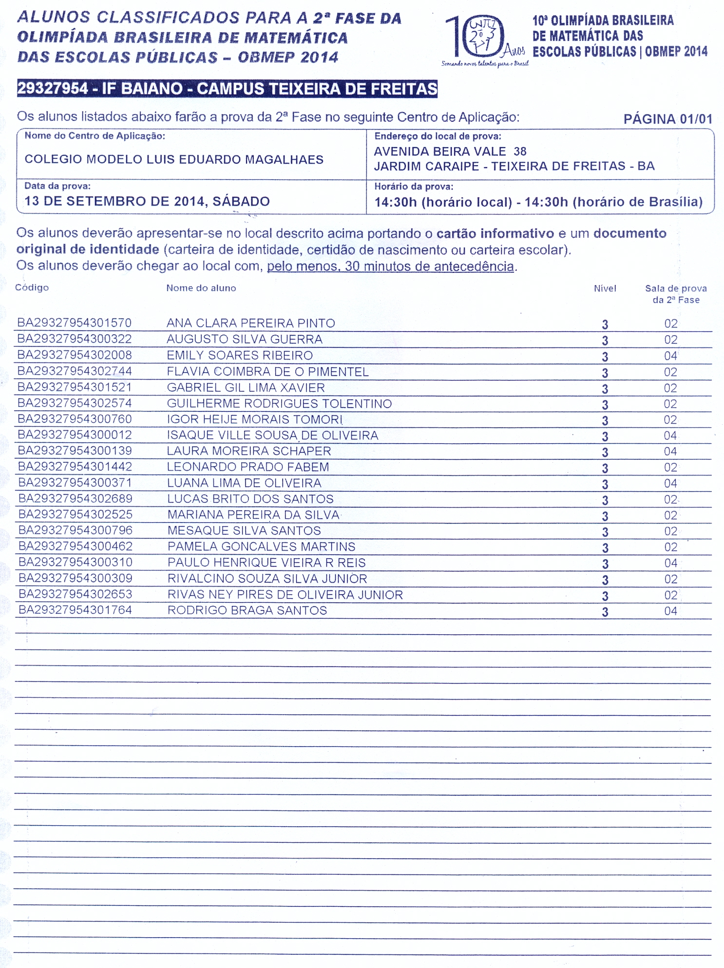 Alunos do IF Baiano – Campus Teixeira de Freitas foram classificados para a segunda fase da Olimpíada Brasileira de Matemática.