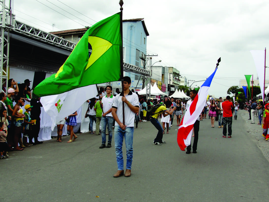 Nem o sol forte ou a chuva que caiu na Cidade no domingo, dia 7 de setembro, desanimaram alunos e servidores do IF Baiano – Campus Teixeira de Freitas, que marcaram presença no desfile cívico. Uniformizados e em pelotões divididos por cursos, os estudantes desfilaram pela Avenida Marechal Castelo Branco, demonstrando o civismo e o orgulho pela Pátria.