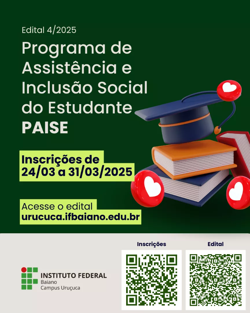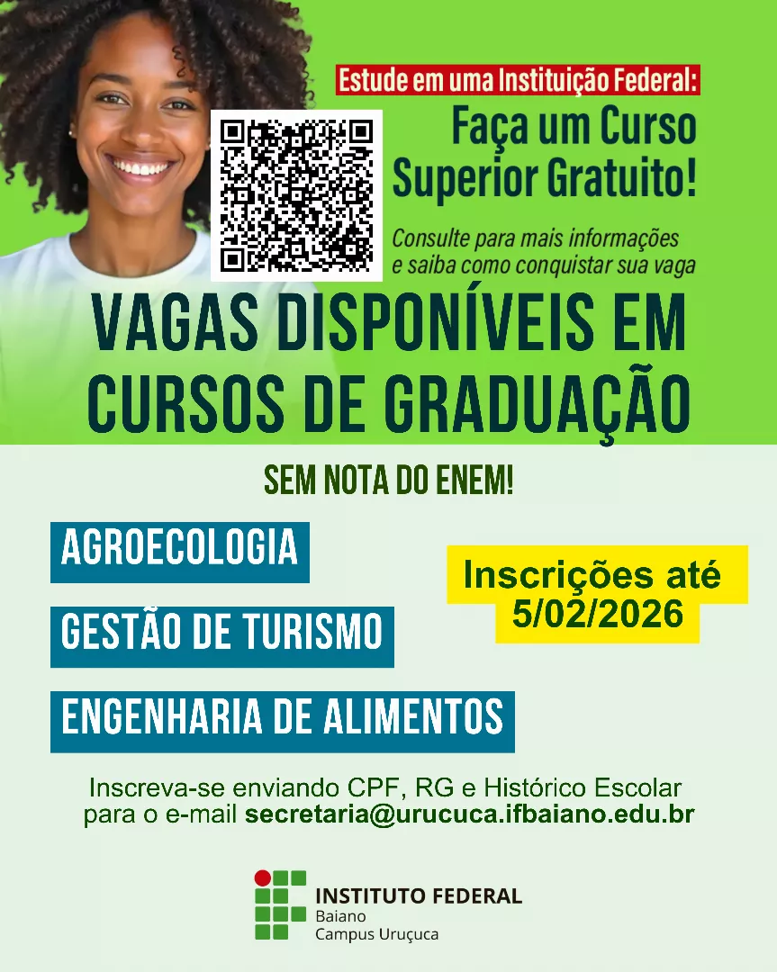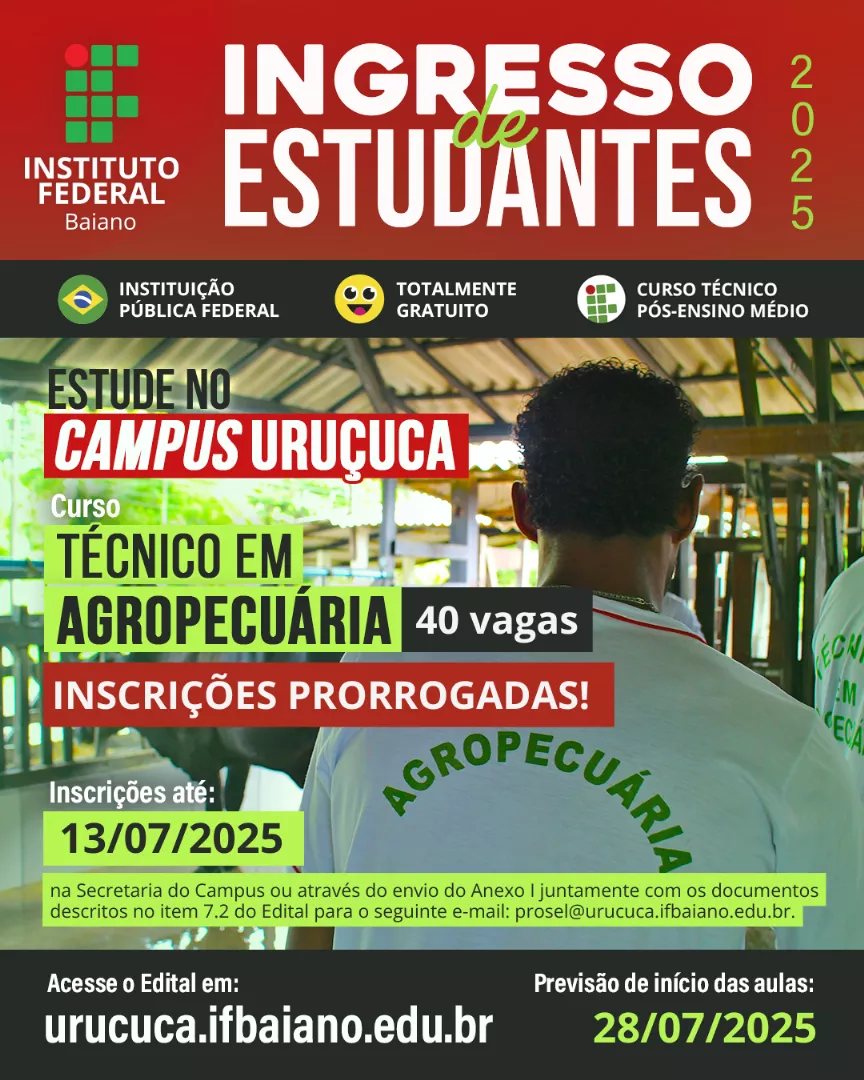 Reitoria: Rua do Rouxinol, nº 115, Imbuí, Salvador-BA. CEP: 41720-052. CNPJ: 10.724.903/0001-79 Telefone: (71) 3186-0001 | E-mail: gabinete@ifbaiano.edu.br