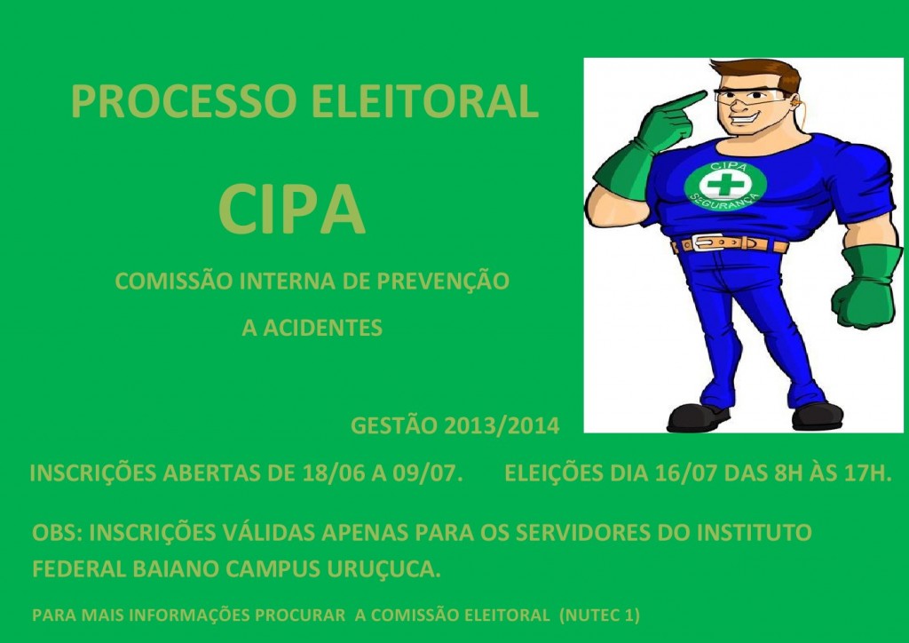 Será realizada, dia 16/07, pelo curso Técnico em Alimentos, a eleição da Comissão Interna de Prevenção a Acidentes.