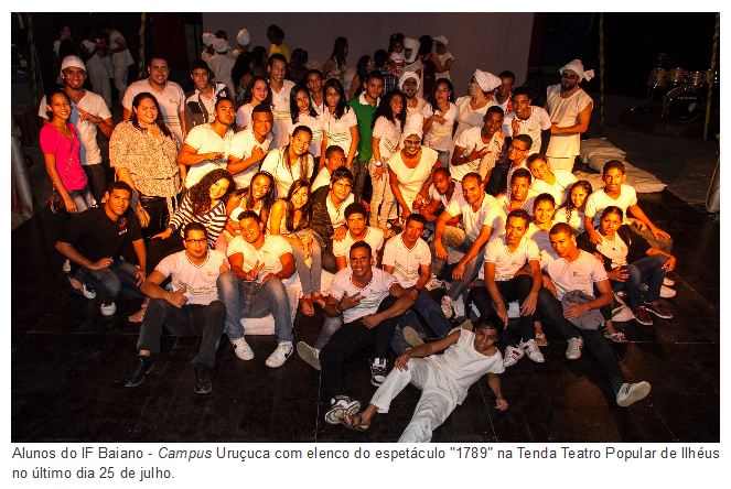 Durante os dias 22 a 25 de julho, mais de 200 alunos do Campus Uruçuca foram a Ilhéus para assistir ao espetáculo “1789”, a mais recente montagem do grupo Teatro Popular de Ilhéus.