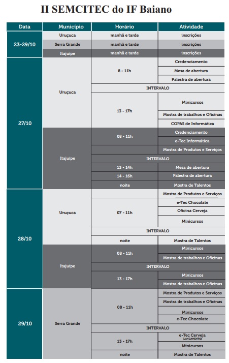 Reitoria: Rua do Rouxinol, nº 115, Imbuí, Salvador-BA. CEP: 41720-052. CNPJ: 10.724.903/0001-79 Telefone: (71) 3186-0001 | E-mail: gabinete@ifbaiano.edu.br