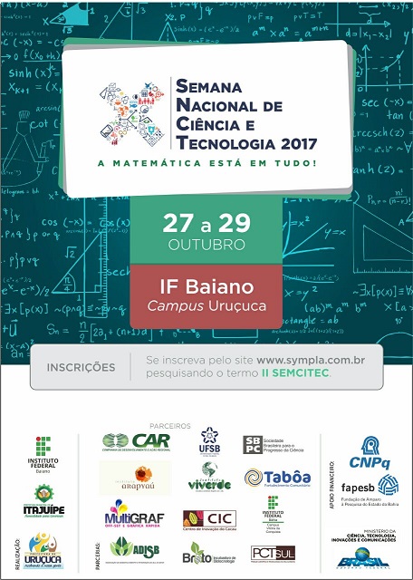 “A Matemática está em tudo” é o tema da II Semana Nacional de Ciência e Tecnologia 2017 do IF Baiano campus Uruçuca,