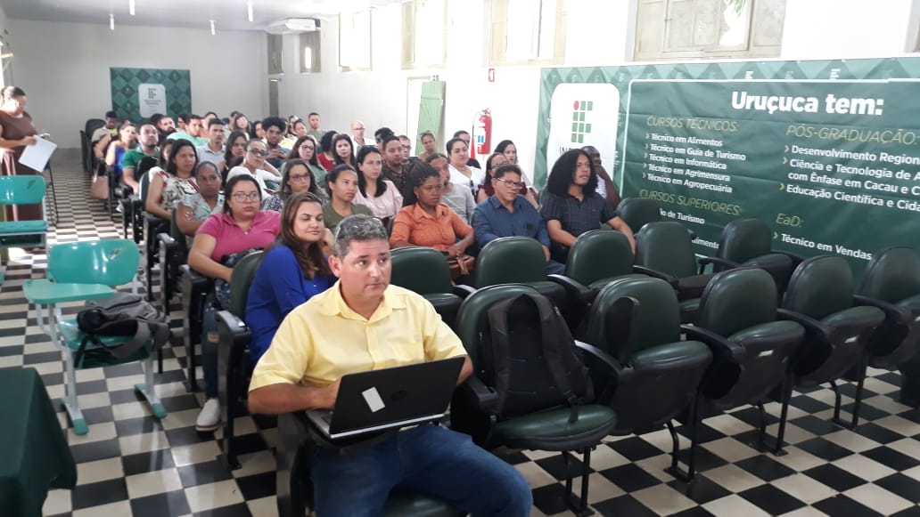 Na manhã do último dia 18/10 foi realizada a aula inaugural das novas turmas dos cursos de Pós-graduação do IF Baiano campus Uruçuca em Desenvolvimento Regional Sustentável e Ciência e Tecnologia de Alimentos com ênfase em Cacau e Chocolate. Estiveram presentes discentes, docentes, técnicos, coordenadores dos cursos e representantes institucionais do campus. Foi ministrante da palestra “A caracterização dos produtos científico-tecnológicos dos Institutos Federais de Educação do Brasil” a servidora do campus Msc. Ayalla Oliveira Chaves. Contamos com quase todos os alunos das duas turmas que terão seu primeiro módulo de aulas nos dias 7 e 8 de novembro.