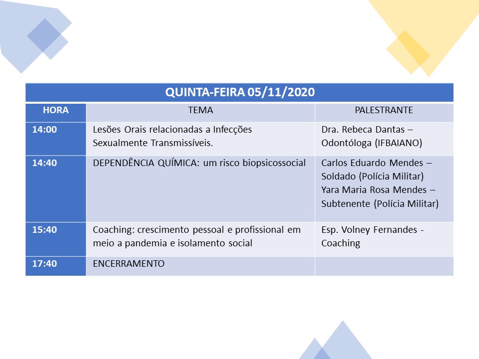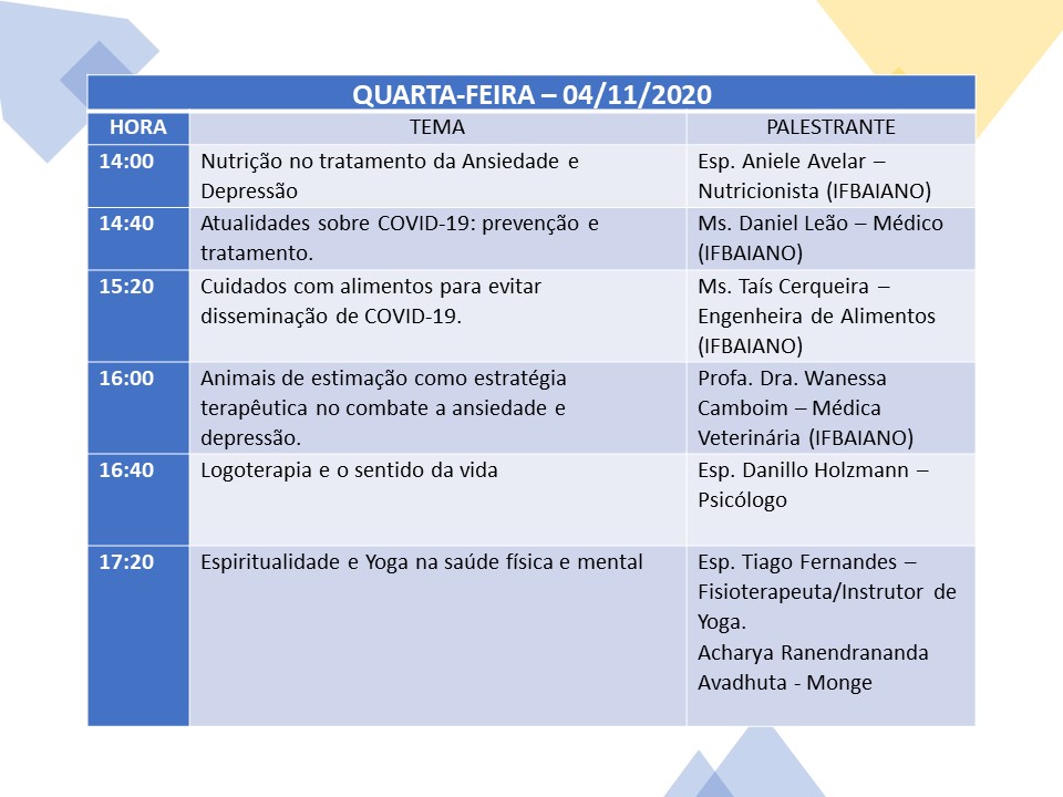 Confira a programação: