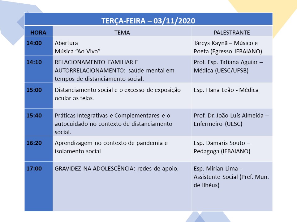 É com imenso prazer que o Instituto Federal Baiano campus Uruçuca traz este ano a 1ª Feira de Saúde e Cidadania Online e você é nosso convidado. Quem pode participar? Todos são bem-vindos. Quando? De 03 a 05 de novembro de 2020. Que horas? 14 às 18 horas. Onde? No nosso canal do YouTube https://www.youtube.com/channel/UCEJJRjIWgbJ2Y1pNVE3m5AQ Onde me inscrevo? https://cutt.ly/ognfKtX
