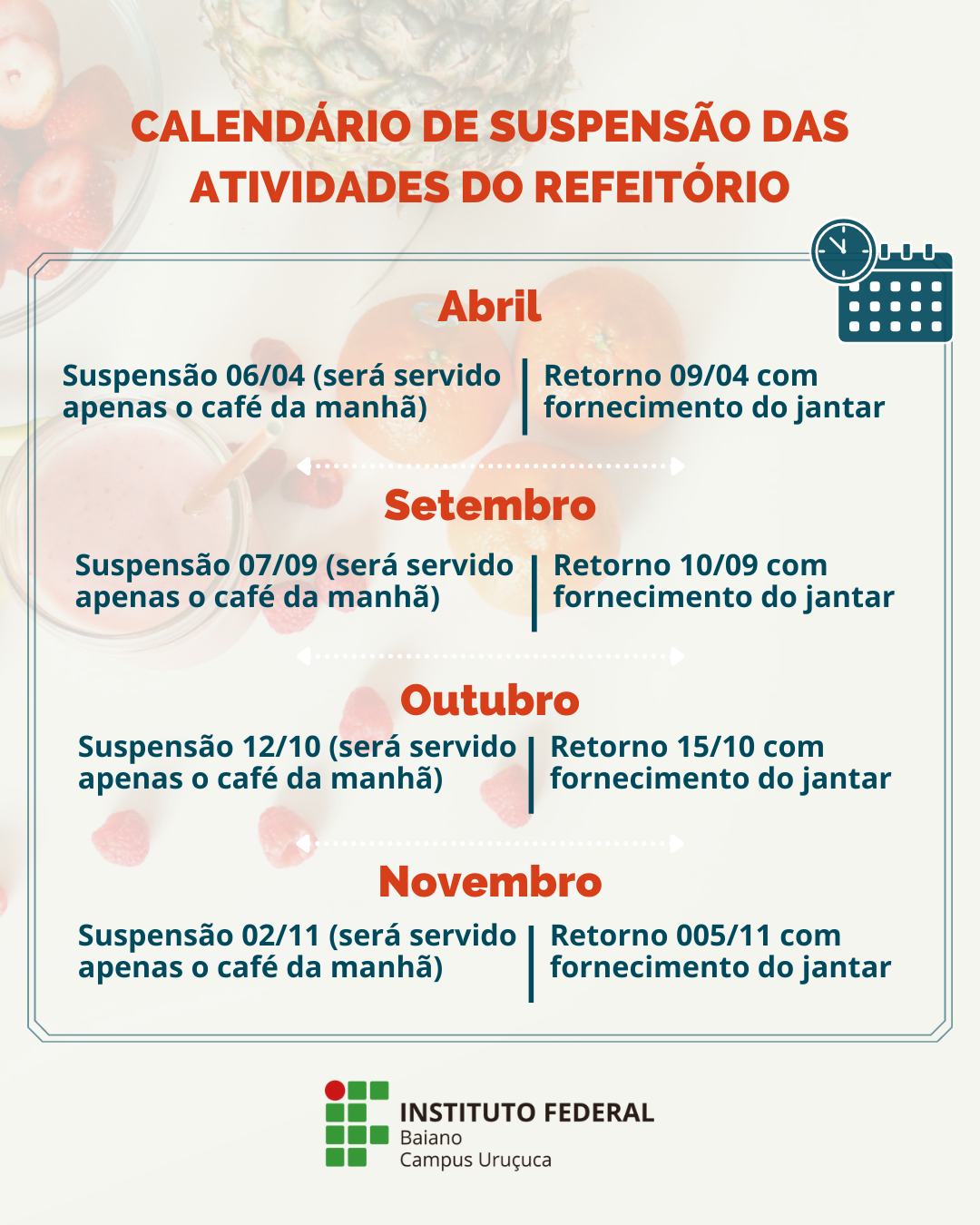 Reitoria: Rua do Rouxinol, nº 115, Imbuí, Salvador-BA. CEP: 41720-052. CNPJ: 10.724.903/0001-79 Telefone: (71) 3186-0001 | E-mail: gabinete@ifbaiano.edu.br