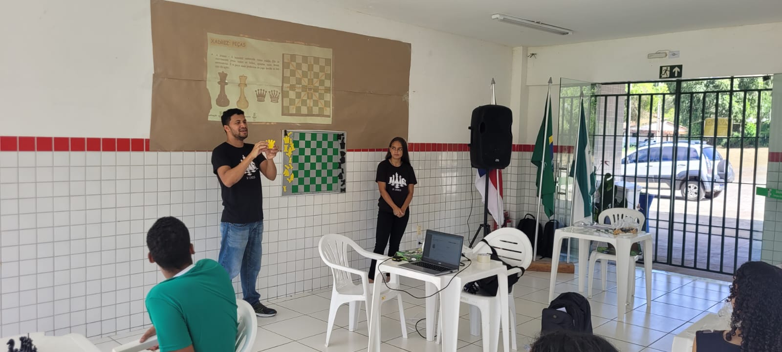 Coordenado pelo prof. Rudhero Monteiro, com a colaboração dos estudantes Felipe, Maria Laura, Nilton, Sara e Sarah, o projeto tem por objetivo democratizar o acesso à prática e à cultura do xadrez na comunidade local, visando o desenvolvimento integral de crianças e adolescentes.