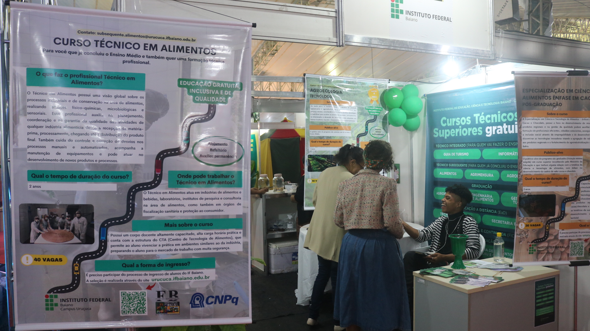 No evento, o nosso campus brilhou com um incrível stand institucional, onde tivemos a oportunidade de divulgar nossos renomados cursos e apresentar ao público as maravilhas que o IF Baiano tem a oferecer.