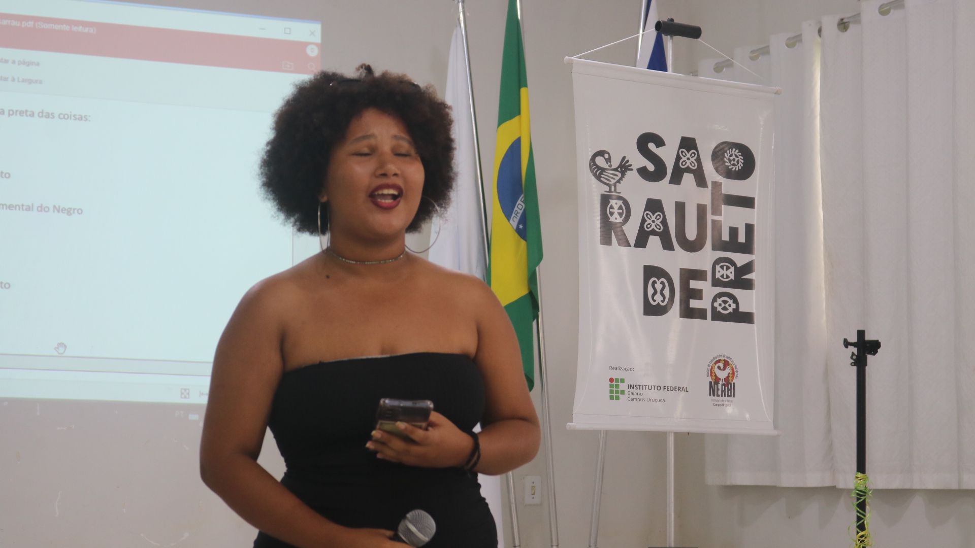 No dia 23 de novembro, o NEABI do Campus Uruçuca realizou a XI edição do Sarau de Preto, com o tema “Tecnologias Africanas e Afrodiaspóricas”. O evento promoveu a valorização e a memória de conhecimentos e tecnologias criadas por povos africanos e seus descendentes, explorando suas contribuições técnico-científicas, artísticas, literárias e estético-corpóreas.
