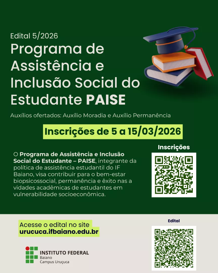 Acesse o Edital completo para acesso a mais informações: https://concurso.ifbaiano.edu.br/portal/selecao-estudantes-partiuif-fevereiro-2026/wp-content/uploads/sites/1300/2026/02/Edital-no-18-de-06-de-fevereiro-de-2026.pdf