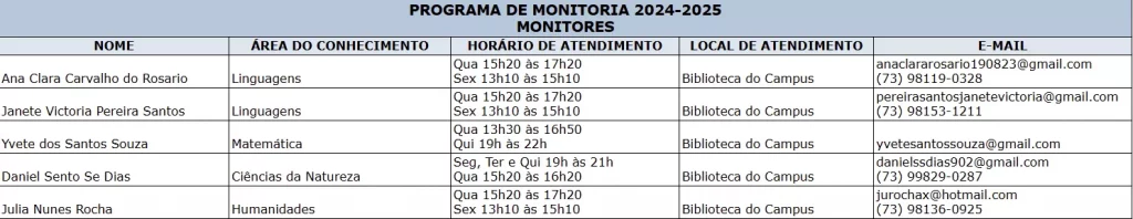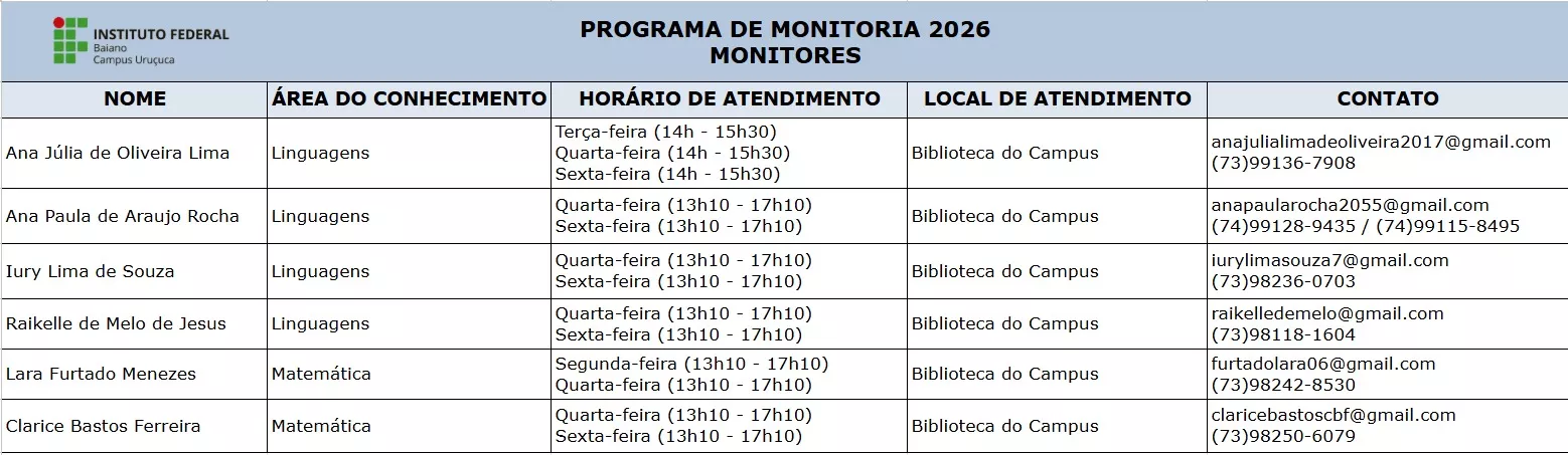O Programa de Monitoria é compreendido como uma atividade acadêmica para a melhoria do ensino dos cursos técnicos de nível médio e dos cursos de graduação, por meio do estabelecimento de novas práticas e experiências educacionais, a articulação entre teoria e prática, bem como a integração curricular em seus diferentes aspectos. Destina-se a estudantes, regularmente matriculados, nos Cursos Técnicos de Nível Médio e em Cursos de Graduação.