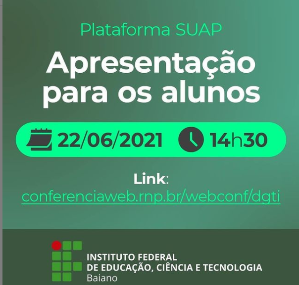 A equipe da DGTI vai fazer uma apresentação da Área do Aluno na Plataforma Suap. É nesse sistema que estão concentradas todas as suas informações, registros acadêmicos, renovação de matrícula, etc.