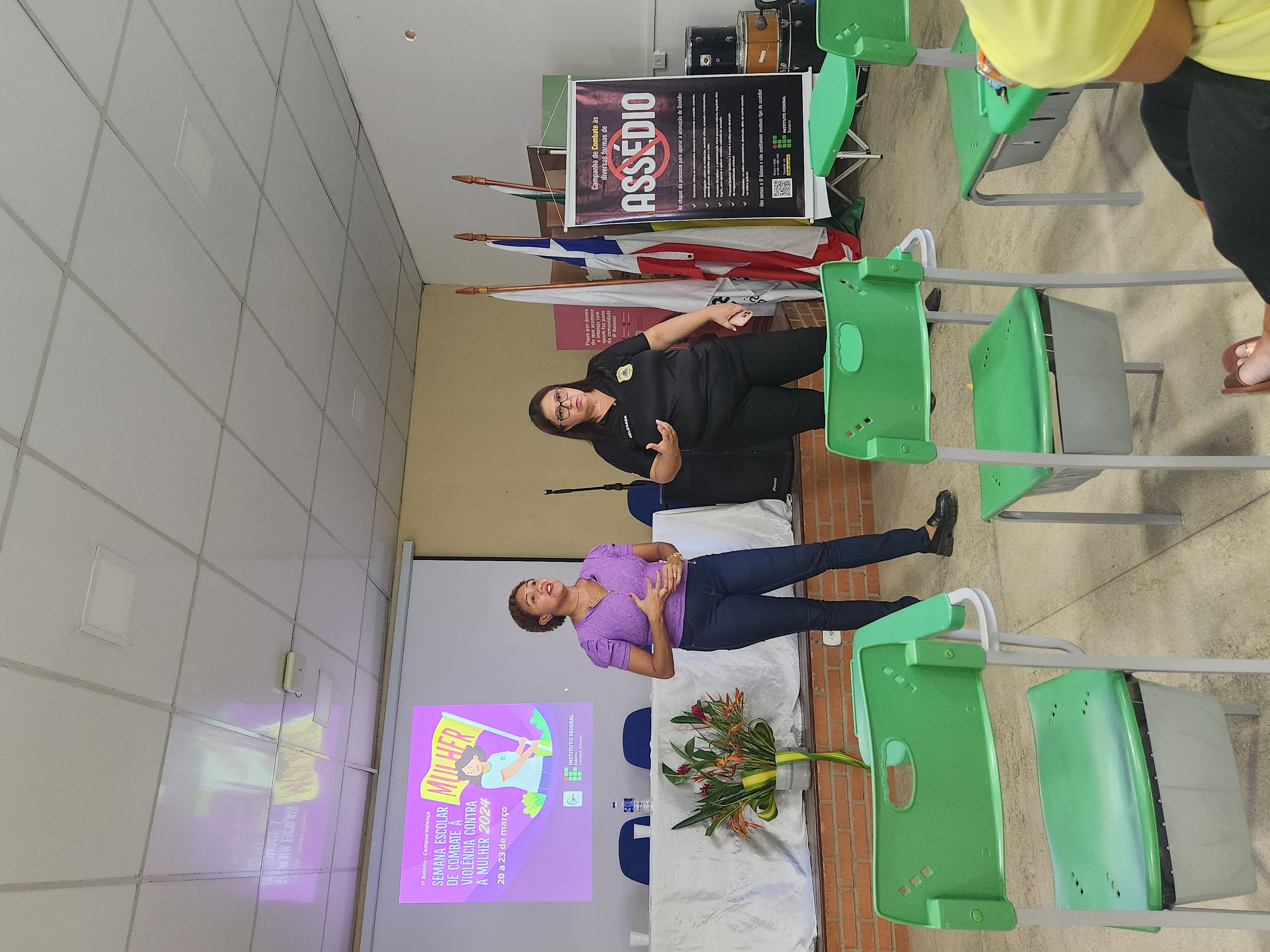 Em 2024, a programação da Semana Escolar de Combate à Violência contra a Mulher contou com uma vasta programação por meio de palestras, formações para servidores, apresentação das salas temáticas e visitas de escolas.