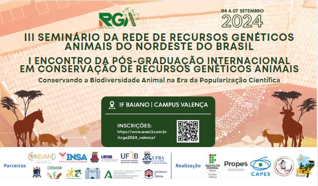 O Instituto Federal Baiano (IF Baiano), Campus Valença, tem o orgulho de sediar dois eventos significativos em setembro de 2024: o III Seminário da Rede de Recursos Genéticos Animais do Nordeste do Brasil e o I Encontro da Pós-Graduação Internacional em Conservação de Recursos Genéticos Animais, que ocorrerão de 04 a 07 de setembro de 2024.